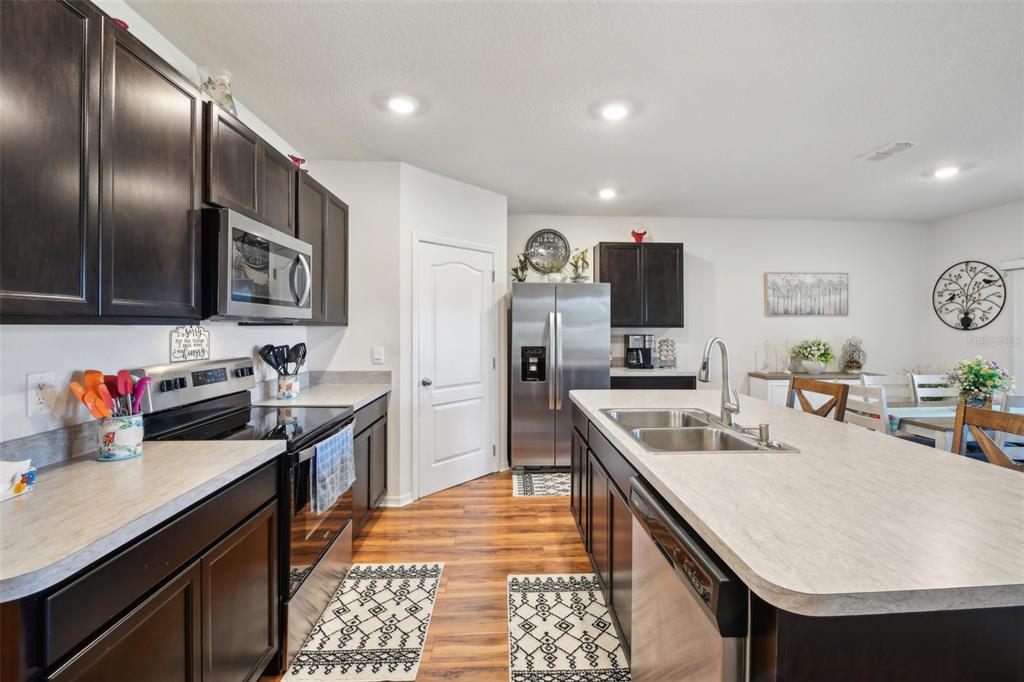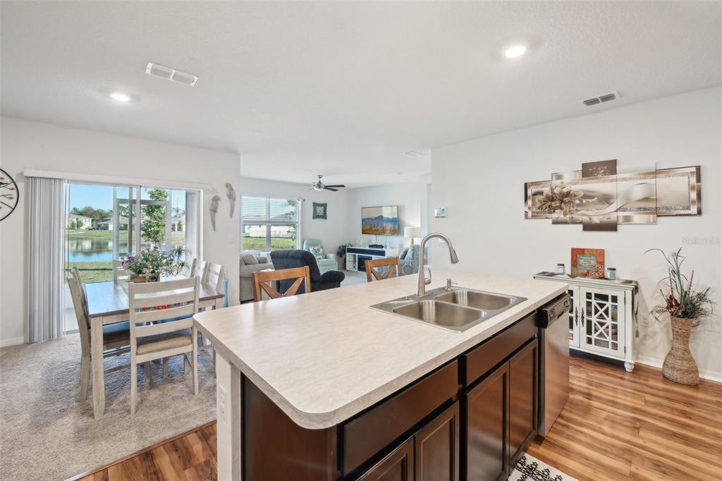 Discover the perfect blend of modern comfort and serene waterfront living in this like-new 4-bedroom, 2-bath home, situated in a peaceful cul-de-sac with breathtaking pond views. built just two and a half years ago by dr horton, this thoughtfully designed residence offers an exceptional open-concept layout, maximizing both space and natural light. from the moment you step inside, you'll be captivated by the picturesque water views that grace the living room, dining area, kitchen, and owner’s suite. the heart of the home—the beautifully appointed kitchen—features a spacious center island, walk-in pantry, recessed lighting, and sleek stainless-steel appliances, making it perfect for both everyday living and entertaining. designed with privacy in mind, the split floor plan places the owner’s suite at the rear of the home, offering a peaceful retreat with stunning water views. the ensuite bath is a luxurious escape, complete with dual vanities, a large walk-in closet, walk-in shower, and private water closet. three additional bedrooms near the front of the home provide ample space for family, guests, or a home office. step outside to the screened-in covered lanai, where you can sip your morning coffee or unwind with a glass of wine while taking in the tranquil pond setting. located just minutes from the vibrant tavares entertainment district, you’ll enjoy easy access to waterfront dining, boating, live music, and exciting community events at wooton park. more than a home—this is a lifestyle. don’t miss your chance to make it yours—schedule your private tour today!2916 CANARY, TAVARES, FL 32778