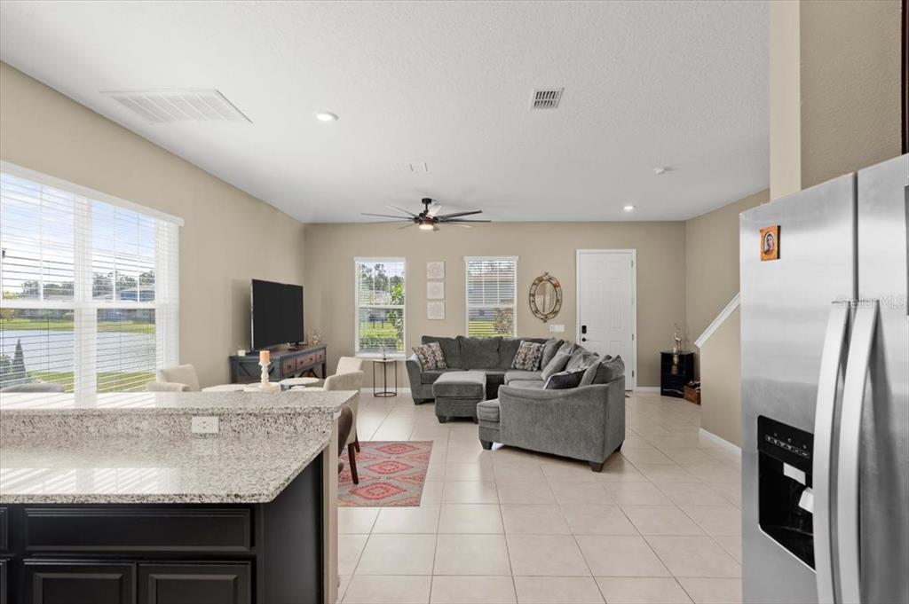 Split BedroomBuilt-in Features Other Walk-In Closet(s)Ceiling Fan(s) Eating Space In Kitchen High Ceilings Living Room/Dining Room Combo Stone Counters Thermostat Open Floorplan Window Treatments Solid Surface Counters Solid Wood Cabinets Kitchen/Family Room Combo PrimaryBedroom Upstairs Tray Ceiling(s) Smart HomeExterior Features: