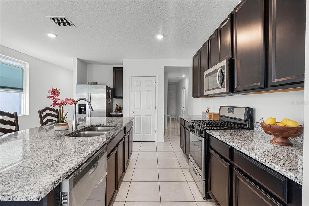 Welcome to this beautiful 4-bedroom, 2-bathroom home in the heart of leesburg, fl! nestled in a peaceful neighborhood, this home boast an inviting open floor plan with a spacious living and dining area, perfect for entertaining. the modern kitchen features sleek granite countertops, stainless steel appliances, dark wood cabinetry, and a large center island with bar seating. the master suite offers a private retreat with a walk-in closet and an en-suite bathroom, while three additional bedrooms provide plenty of space for family or guests. step outside to a backyard with added privacy and serene views. additional features include a two-car garage, tile flooring throughout the main living areas, and energy-efficient windows that bring in abundant natural light. conveniently located near schools, shopping, dining, and major highways. the carpets in the bedrooms show some wear and may need refreshing.29400 CASPIAN, LEESBURG, FL 34748