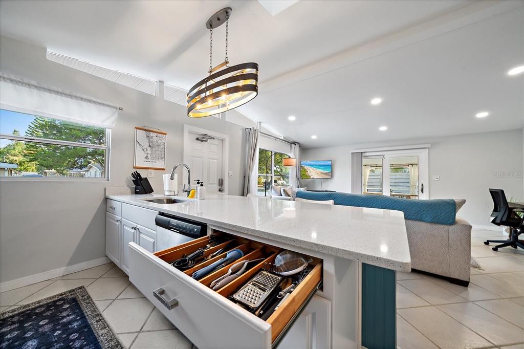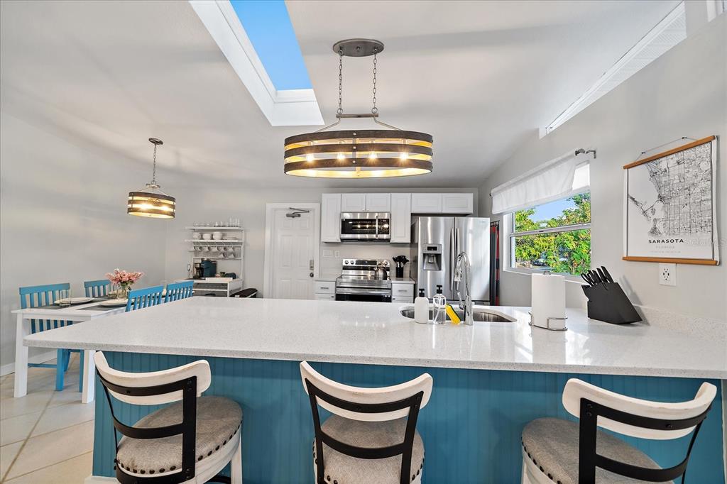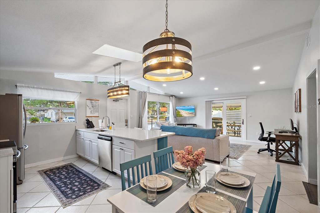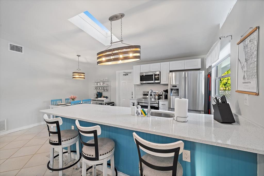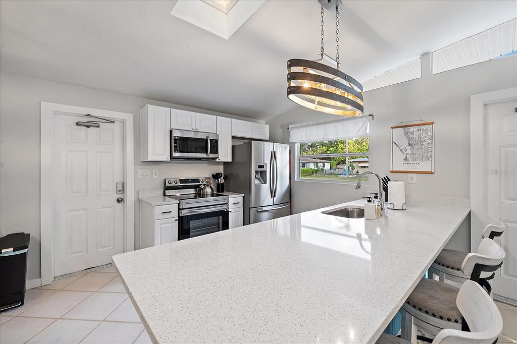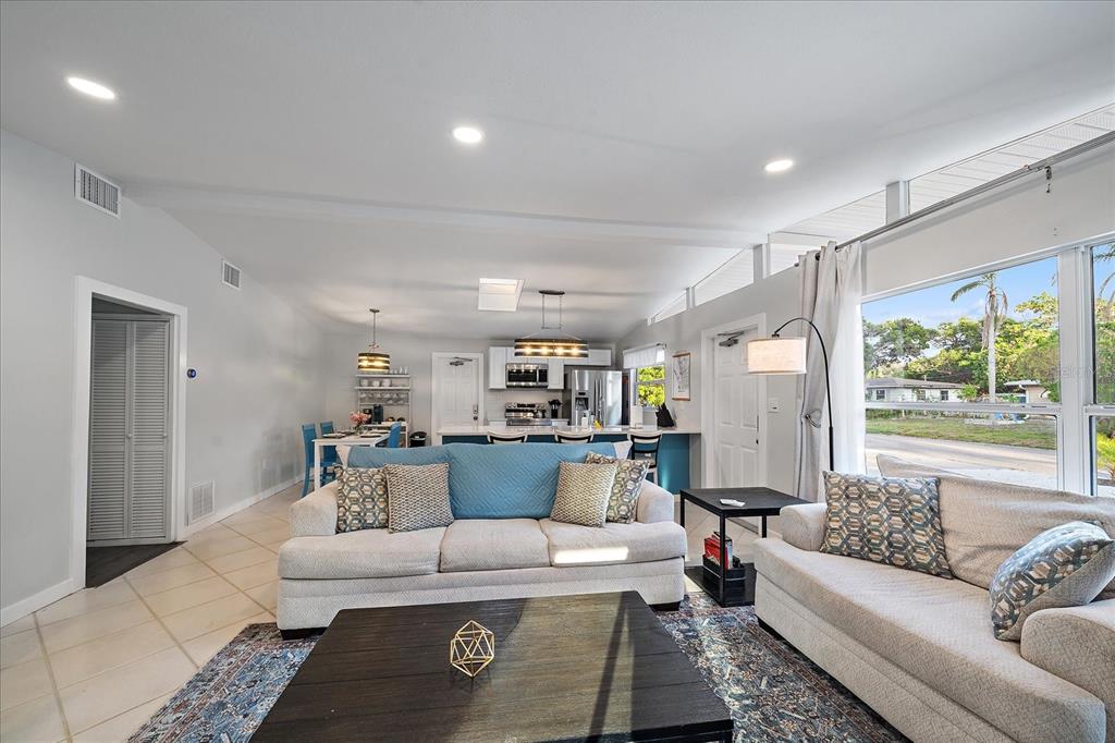 No flooding or storm damage! welcome to your dream oasis- a stunning property that combines modern comfort with easy living. set in a prime location, this turnkey home is spread across a spacious 1211 sqft, boasting 3 beautifully appointed bedrooms and 2 full bathrooms. step inside to discover a bright and open layout, enhanced by soaring vaulted ceilings and an abundance of natural light streaming through skylights. the heart of the home is undoubtedly its kitchen, outfitted with sleek quartz countertops, a convenient breakfast bar, and upgraded lighting fixtures that set the stage for memorable gatherings. sliders open to a lanai with tile flooring, offering a tranquil outdoor retreat for relaxation or entertainment. no flooding or damage from recent storm! notable recent updates include a central hvac system, a freshly coated roof, and a charming, low-maintenance yard with no grass, ensuring hassle-free upkeep. the carport has been creatively transformed into an additional outdoor space, complete with tile flooring, proving that every corner has been thoughtfully considered. currently utilized as a short-term rental, this property offers an exceptional opportunity for investors looking to tap into sarasota's lucrative rental market. with its superb location, modern upgrades, and flexible usage, 2957 michigan st is more than a home - it's a lifestyle waiting to be embraced.2957 MICHIGAN, SARASOTA, FL 34237
