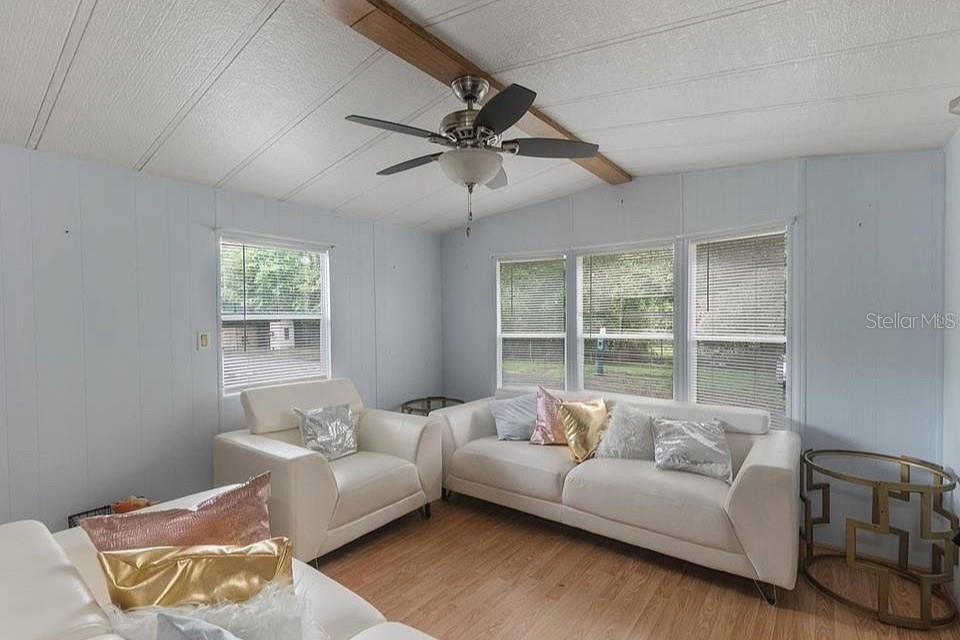This is a beautiful, well-maintained 1-bedroom, 1-bathroom home where you own the land! this corner lot offers privacy, space, and is located in the gated community of clarcona resort. the home features a large enclosed patio for extra living space, laminate and tile floors throughout, and vaulted ceilings. there is on-site management, and by living in this community, you’ll have access to a wide range of amenities, including a pool, mini golf, rec hall, playground, and golf cart-friendly roads. there is also a detached shed that has been converted into a fully equipped laundry room. the hoa covers water, sewer, trash pickup, and 24-hour gated security. your home is centrally located near dining, shopping, and the 429. come see it today!3000 CLARCONA #2715, APOPKA, FL 32703