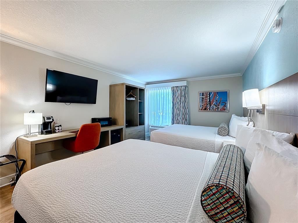 Welcome to galleria palms, a unique investment opportunity less than a mile from the gates of walt disney world®! unlike other condo-hotels where income is determined by how often your particular unit is booked, this community operates on a different strategy. they take the entire income of the hotel and divide it evenly on all units! this helps ensure equity in rental bookings, versus other communities where there isn't as much transparency into the rhyme and reason of your unit being booked. all of the units in the building are also the same floor plan, the only difference is what location in the building they are, and how the beds are set up (the two options are one king bed, or double queen beds, like this unit is). financials will be available, please reach out for additional information. it is not possible to self-manage these units due to the unique set-up of the management company onsite. these are not residential, and you cannot live here. there are also limits on how often an owner can use their unit. all items stay with the home; you will be making income on day one!3000 MAINGATE #205, KISSIMMEE, FL 34747
