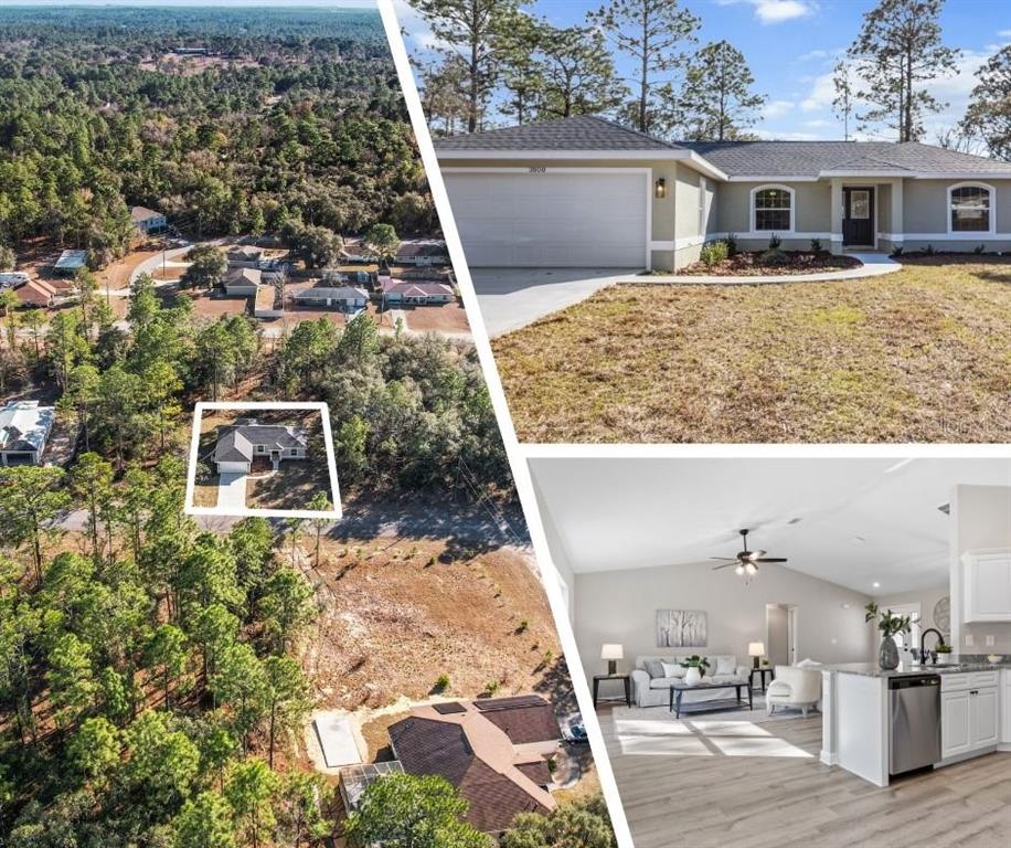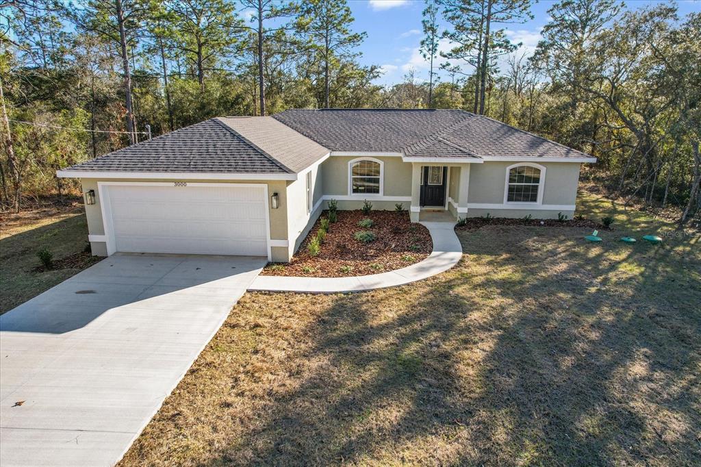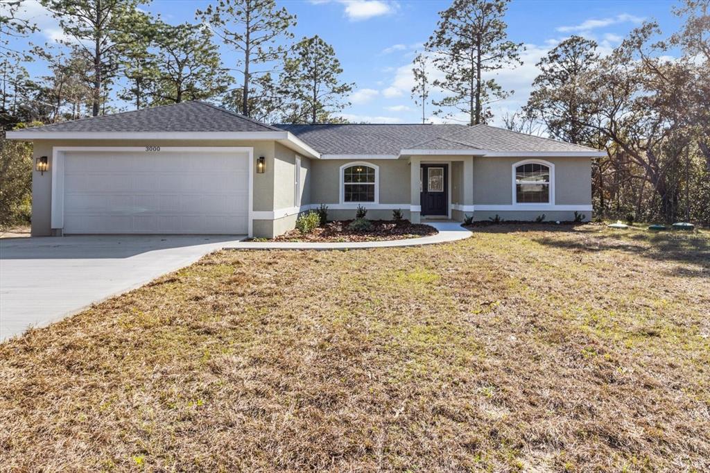 Seller offering closing cost incentives! welcome home! this completed and move-in-ready new construction home in the heart of citrus springs is ready to become your dream home! expertly crafted by a local and reputable builder known for quality craftsmanship, this stunning home offers 1,513 square feet of living space and a total of 2,137 square feet under roof, including inviting front and back porches—perfect for relaxing and enjoying the florida lifestyle. this thoughtfully designed home features a split floor plan with three bedrooms, two bathrooms, a spacious two-car garage, and an indoor laundry room. high-end finishes include granite countertops throughout, luxury vinyl plank flooring, stainless steel appliances, and energy-efficient led lighting. the beautifully landscaped yard with fresh sod enhances the home’s curb appeal. situated on a flat, fully usable lot, this home provides added privacy with no neighbors currently on either side or behind. additionally, an extra 0.25-acre lot next door is available for purchase, offering the opportunity to expand your space or further enhance your privacy. the primary suite includes a master bath with a double vanity sink, combining both style and functionality. for added peace of mind, the home comes with a one-year termite treatment, a one-year builder home warranty, and a 10-year structural warranty. conveniently located less than a mile from pine ridge estates and near the brand-new shoppes of black diamond, residents will enjoy easy access to major retailers such as target, walmart, aldi, and starbucks. outdoor enthusiasts will appreciate the close proximity to rainbow river, the gulf of america, and the withlacoochee paved bike trail. with tampa and orlando just an hour’s drive away, this home perfectly balances quality, convenience, and charm. this is a rare opportunity to own a high-quality, newly built home in a fantastic location. don’t miss out—schedule your showing today!3000 W HIGGINS, CITRUS SPRINGS, FL 34433