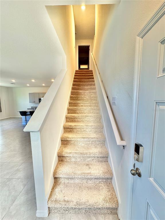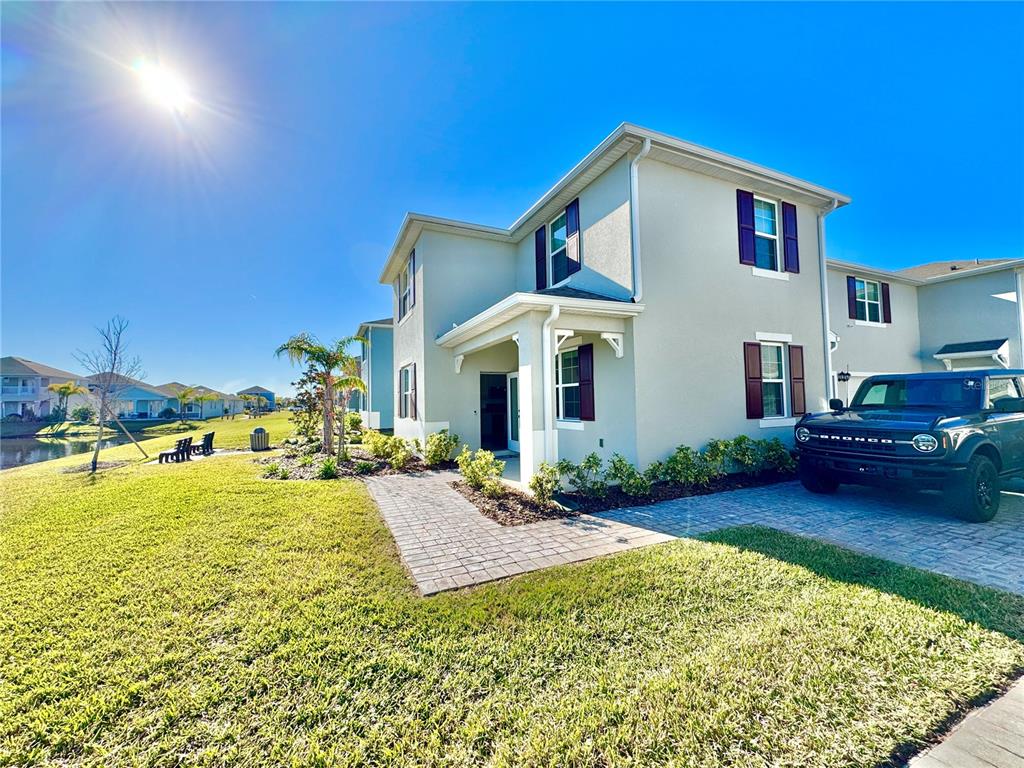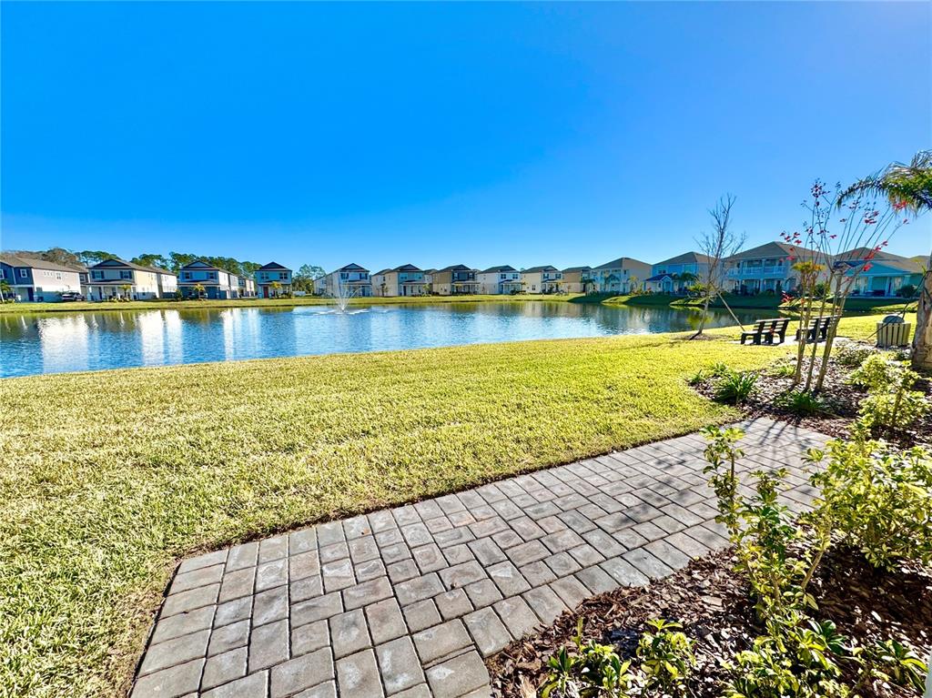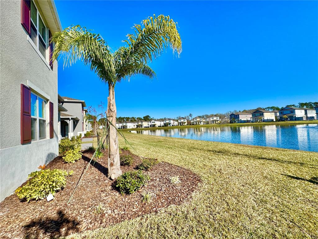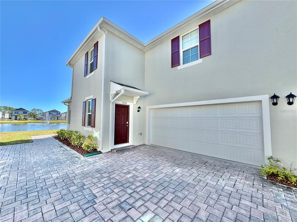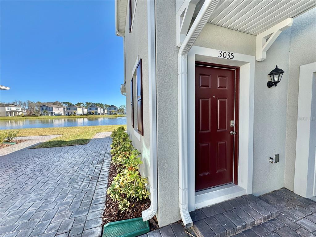 This townhome has direct waterfront views from your kitchen, dinning area, living room, master bedroom, & bathroom! it sits on one of the most desirable lots in the community. upon entry lies a well lit, open living room, kitchen, dinning room, half bath and 2 car garage on the first floor. the luxurious kitchen features upgraded stainless appliances, choice granite countertops, pantry, and ample cabinet storage. upstairs features 3 bedrooms, 2 full bathrooms and a designated laundry room with full size washer & dryer. a stunning waterfront view from the spacious master bedroom overlooks a serene fountain that makes for a peaceful nights sleep and a tranquil nest to open your eyes to in the morning. the connected master bathroom includes a walk in shower, dual vanity, and oversized walk in closet. this smart home is also connected to voice control smart speaker, video doorbell, smart front door dead bolt, and touch screen thermostat. built in 2022 this home is under builder’s warranty. venetian bay offers an 18 hole golf course, gym, spa, and restaurants. located approximately 15 mins to beach, 5 mins to i95, and 15 minute to i-4.3035 MELETO, NEW SMYRNA BEACH, FL 32168