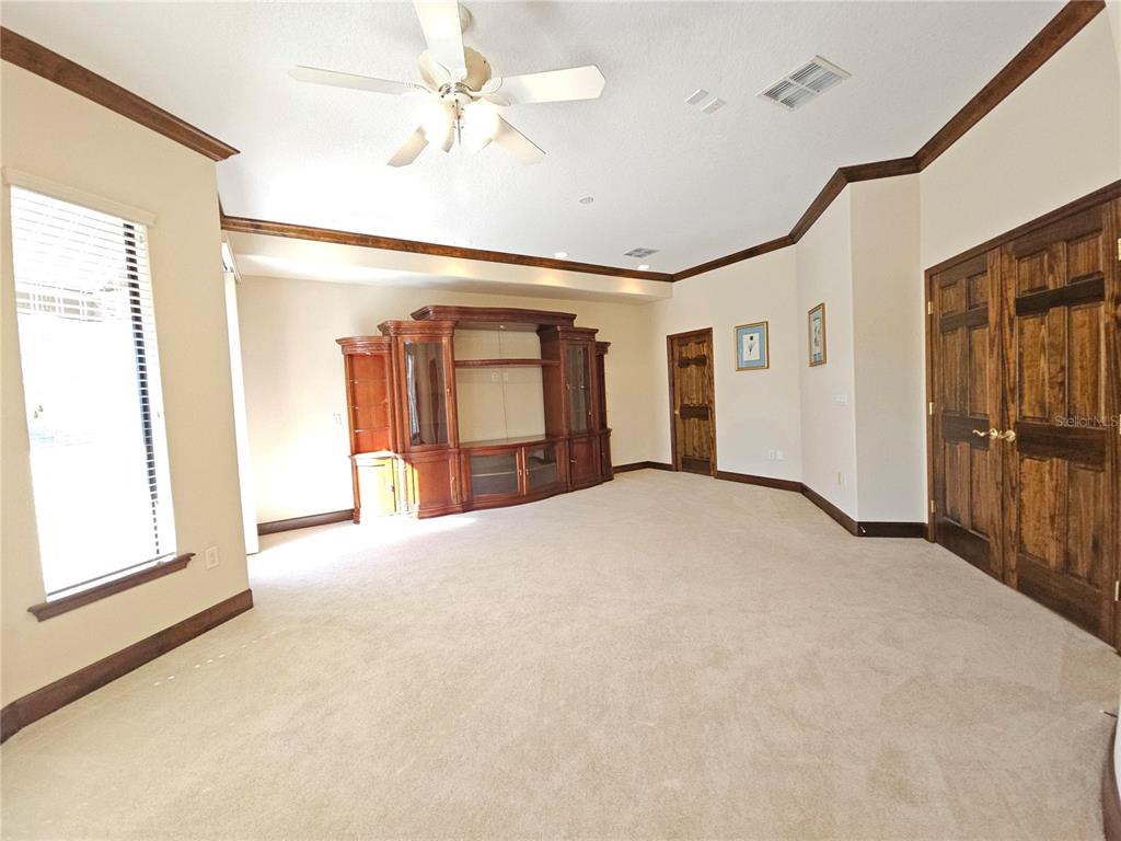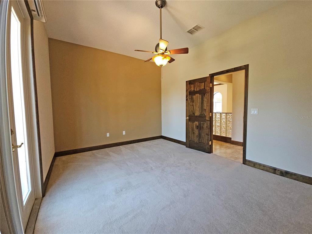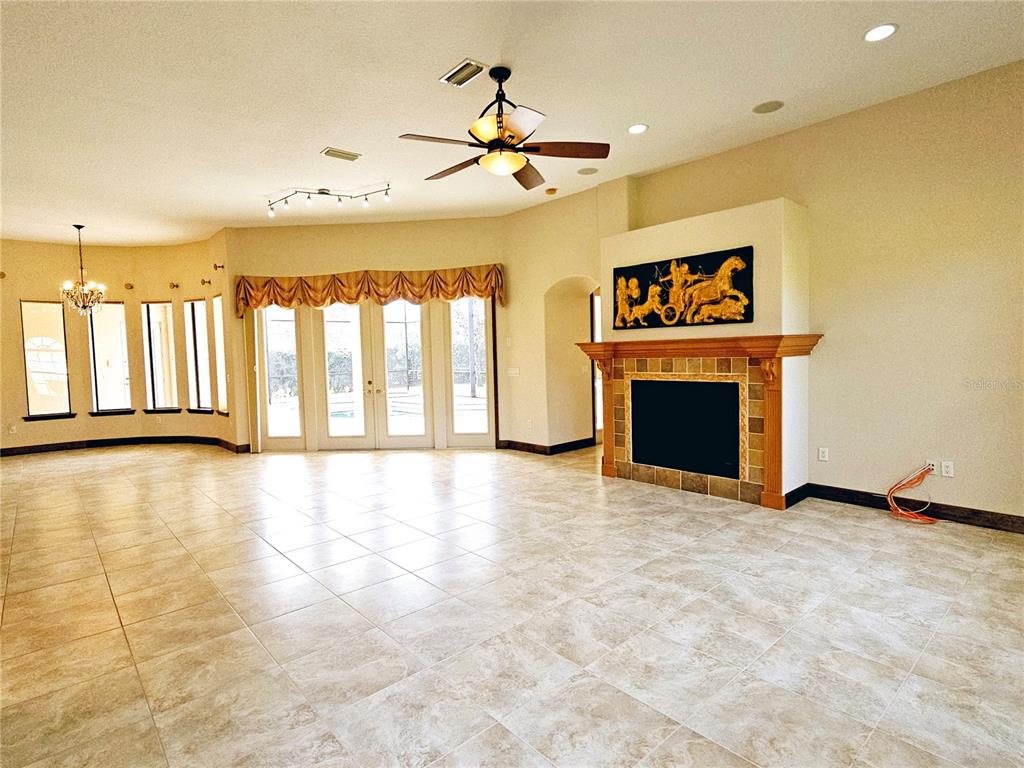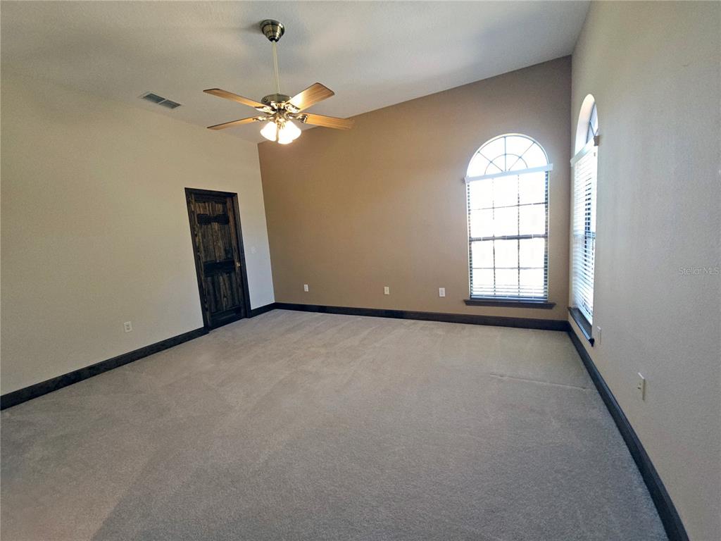 Split Bedroom Walk-In Closet(s)Ceiling Fan(s) High Ceilings Stone Counters Thermostat Open Floorplan Window Treatments Solid Wood CabinetsCrown Molding Primary Bedroom Main Floor Kitchen/Family Room ComboCathedral Ceiling(s)Exterior Features: