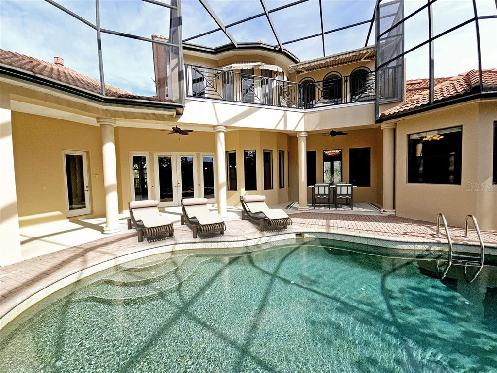 One or more photo(s) has been virtually staged. discover unparalleled luxury in this custom-built estate home by mark marconi, nestled in the exclusive, 24/7, guard-gated wentworth golf & country club community. located in a non-flood zone, this impressive 4,648 sq. ft. residence features 4 bedrooms, an office/study, 3.5 bathrooms, and a second-floor bonus room with an expansive balcony overlooking the soaring two-story screened lanai, sparkling heated pool & spa, capturing breathtaking views of the 18-hole golf course. oversized paver driveway with a side-entry 3 car garage & a formal circular driveway. step into the grand entrance, showcasing 23 ft ceilings in the formal living rm, beautiful crystal chandelier & massive triple windows high & low, framing stunning views of the outdoor oasis. formal dining rm, living rm & office accented w/rich dark wood crown molding matching all the baseboards, doors & windowsills throughout home. office/study w/built-in shelving & drawers. magnificent open kitchen designed for entertaining, complete w/6-burner gas stove, stainless steel appliances, gourmet island w/prep sink, granite counters, double wall ovens, expansive breakfast bar w/pendent lighting & large walk-in pantry. the kitchen dining nook, featuring a unique five-window bump-out offering never-ending views of the lanai. light & bright family rm w/gas fireplace & french doors to lanai. a convenient 1st floor guest bedroom w/private full bath/pool bath. family rm opens to a fabulous 2 story screened lanai w/pavers, heated pool & spa, outdoor kitchen equipped w/gas grill & sink, a storage closet & multiple spacious under-roof areas for entertaining family & friends. mature landscaping w/tall manicured bushes for optimal privacy. 1st floor primary suite is a retreat unto itself, featuring a sitting area, double-sided gas fireplace, a french door opening to a private porch & another leading out to the lanai/pool area. spa-inspired primary bath is accented by elegant pillars, jetted spa/tub, separate shower, dual vanities & water closet. a spacious walk-in closet w/built-in cabinetry & center island completes this luxurious suite. a custom-designed grand staircase accented w/wood & glass railings takes you to the 2nd story retreat, complete w/2 bedrms,1 full bath & a large multi-purpose bonus rm w/storage closet & french door to the expansive balcony overlooking the lanai & pool & providing you w/spectacular views of the golf course. both upstairs bedrooms feature walk-in closets w/built-ins & 1 bedroom has the added feature of double french doors leading to walk-out front balcony overlooking the pond/golf course across the street. surround sound throughout home & lanai. recent updates include: exterior paint, 2-story lanai screening & new balcony railing (2024): hot water tank (2021). enjoy the exclusivity of wentworth golf & country club w/a beautiful clubhouse offering an on-site restaurant & lounge for socializing as well as a top-rated golf course w/optional memberships available. perfectly located in the tarpon springs/east lake area, this home offers peace of mind being in a non-flood zone, convenient access to excellent area schools, shopping, dining, pinellas trail, john chestnut park, lake tarpon & approximately 30 minutes to world-class beaches & tampa international airport. this is your chance to own a luxurious home in one of florida’s most desirable golf communities. schedule your private showing today!3050 WENTWORTH, TARPON SPRINGS, FL 34688