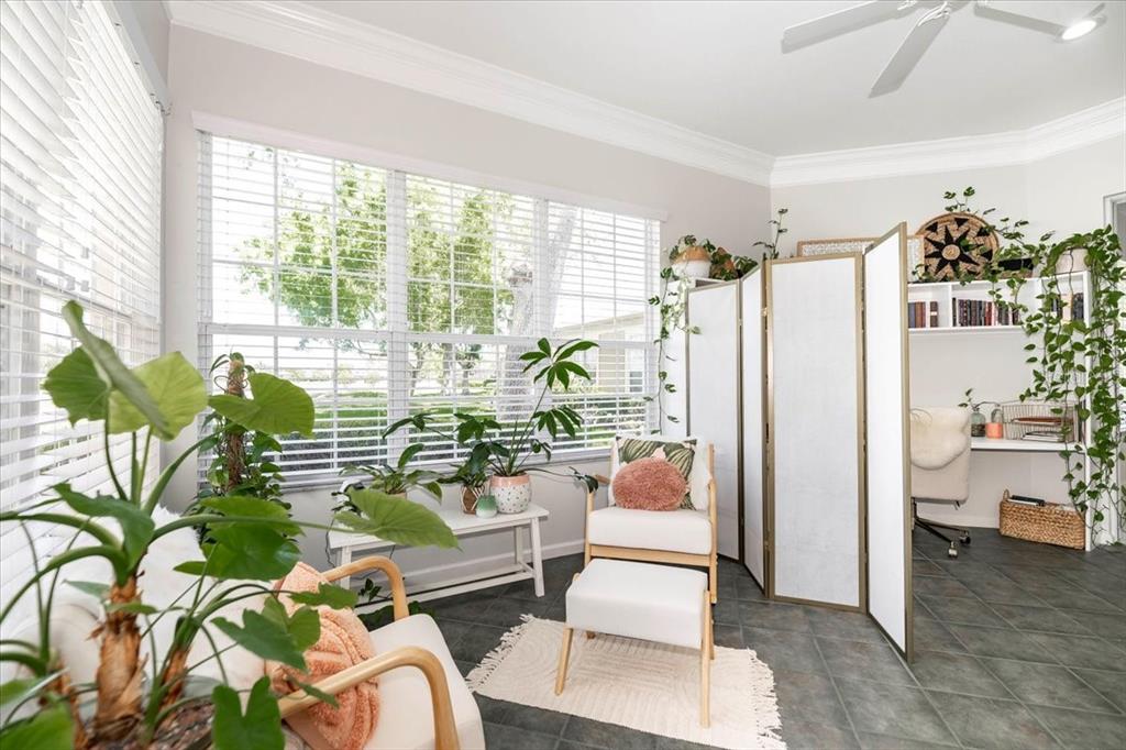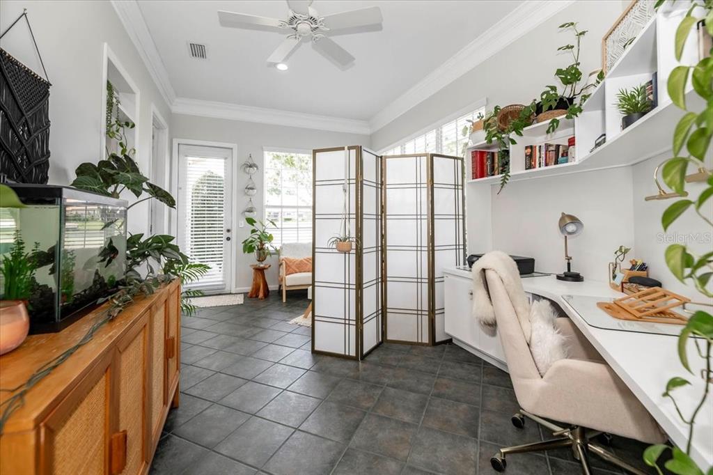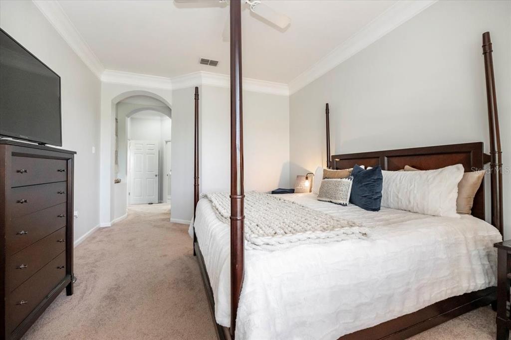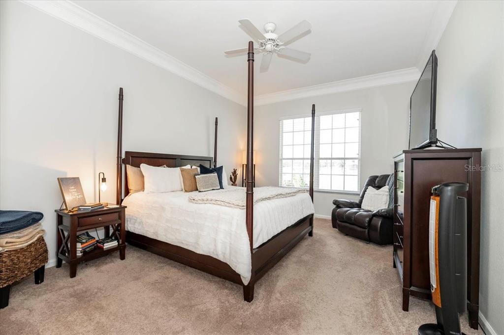 Split Bedroom Walk-In Closet(s)Ceiling Fan(s) High Ceilings Stone CountersCrown MoldingExterior Features: