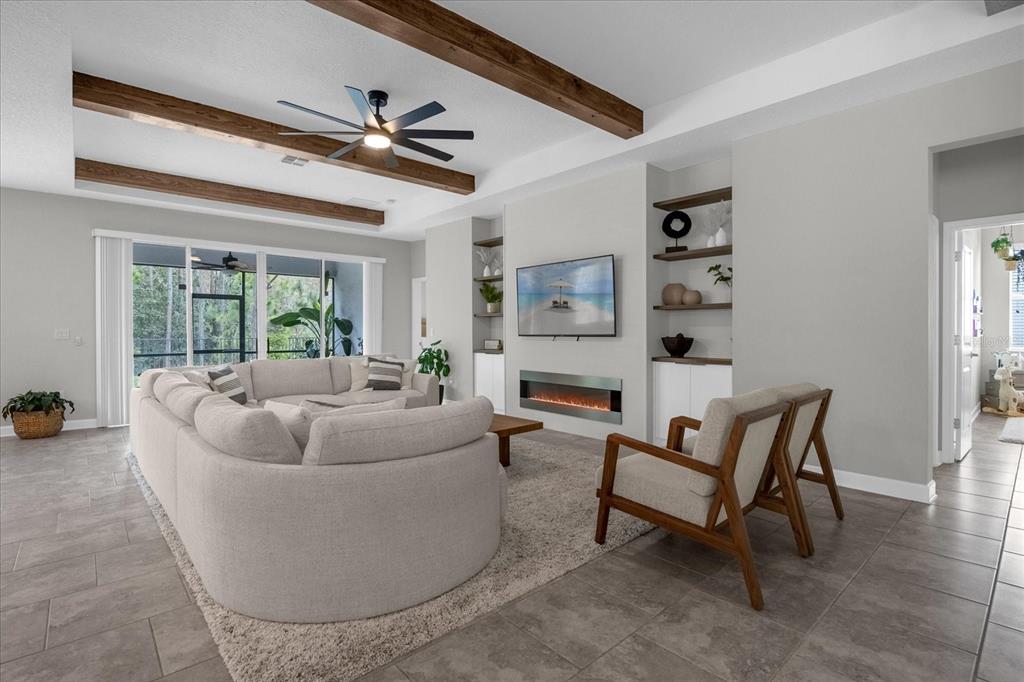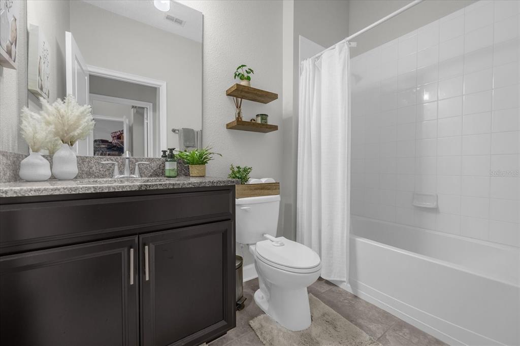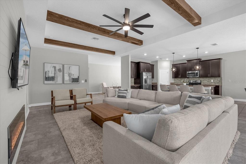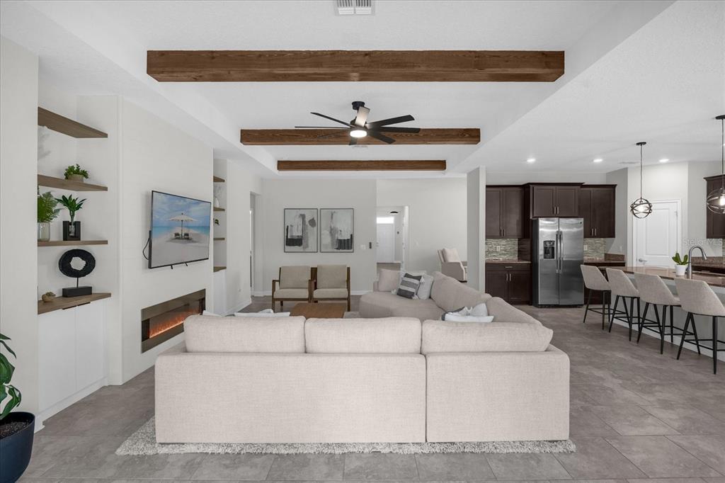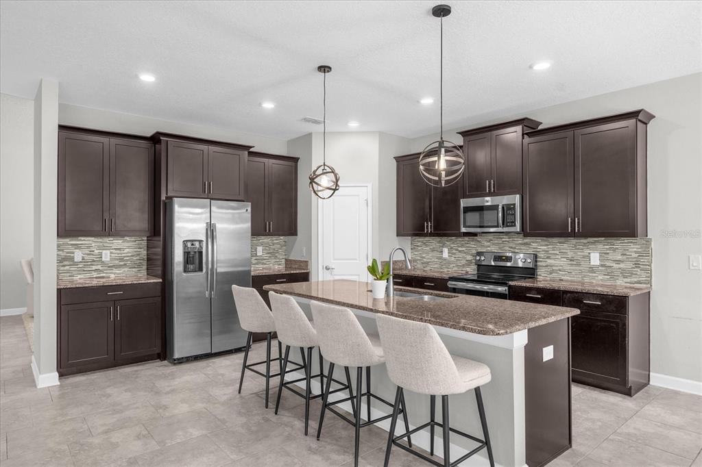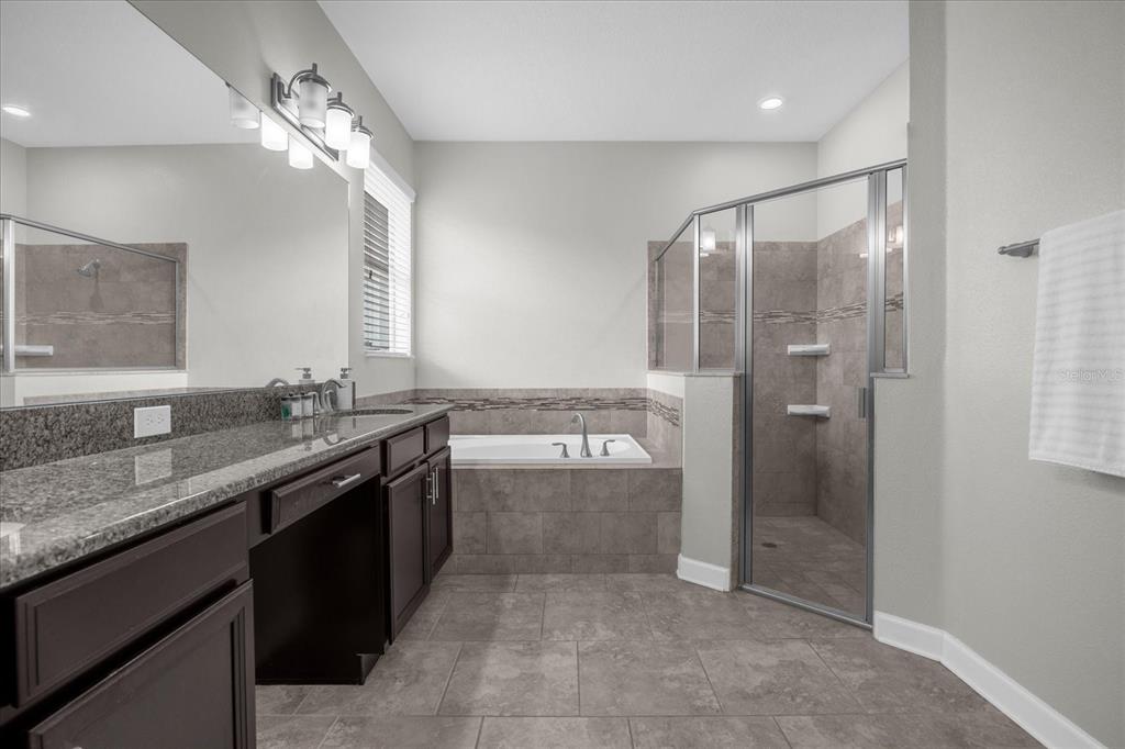Welcome to this single-story home, the prestigious marina model by lennar homes, consisting of *4 bedrooms and 3 full bathrooms and 3 car garage* nestled in a *premium lot*, *back to conservation area*, in the sought after gated residential community *reflections at storey lake*. upon entering this filled with natural light home, you are greeted by a spacious foyer that seamlessly flows into the home's main living areas. the 2nd and 3rd bedrooms are located on the left side and share a jack and jill bathroom featuring granite double vanity, and a private area for the toilet and shower. moving into the main living areas, the dinning room will be on your left and spacious open kitchen and family room with *fireplace* flows into the breathtaking views of the *fully fenced* backyard, with a *screened lanai*, which faces the shingle creek conservation area, nature at its best, offering a perfect backdrop for relaxation or entertainment. the home has *ceramic floorings* throughout all common living spaces, wet areas, primary bedroom and the 4th bedroom. at the heart of the home, the kitchen boasts high-quality *stainless steel appliances*, including microwave, range, side-by-side refrigerator, and dishwasher. the kitchen's *granite countertops* and 42-inch upper cabinetry reflect a perfect balance of style and functionality. the large primary bedroom is located at the right end of the family room and offers two windows to the backyard facing the woods. the primary bathroom, designed with an eye for sophistication and practicality is equipped with granite double vanity, bathtub and separate shower with glass enclosure. the oversized closet gives access to the conveniently located laundry. the 4th bedroom is served by the 3rd bathroom. conveniently positioned *right across from the clubhouse*, that offers a beautiful pool, fully equipped gym, conference room and kids play area, this home is impeccably well maintained and ready to move-in. off of osceola parkway, this property offers a strategic location near disney parks, publix, walmart, target and a wide selection of grocery stores, shopping, and restaurants. land3075 BEAVER CRK, KISSIMMEE, FL 34746