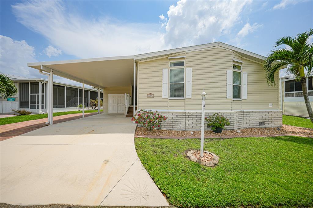 Discover the charm and comfort of this delightful 1,521 sq. ft. home located in the friendly, resident-owned 55+ gated community of windmill village in punta gorda. this inviting, well-maintained “homes of merit” property boasts 2 spacious bedrooms and 2 bathrooms. nestled in a picturesque setting, this property has successfully weathered the storms of life, including heavy rain, strong winds, and flooding from recent hurricanes, showcasing its remarkable resilience and providing peace of mind. as you step inside, you’ll be greeted by a beautifully updated interior, highlighted by waterproof vinyl flooring installed in 2020. the kitchen is a culinary enthusiast's dream, showcasing ample wood cabinetry, a convenient pantry, and brand-new appliances including a refrigerator and dishwasher (both 2023). enjoy your morning coffee in the charming breakfast nook, which opens to a serene 18 x 14 lanai complete with tiled flooring and a new mini-split a/c for year-round comfort. the heart of this home is its expansive great room, seamlessly blending dining and living areas—perfect for entertaining friends and family. recent upgrades enhance your comfort and security, including new windows in lanai area (2023), a new shingle roof (2022), and a 3-ton air temp air conditioner unit (2021). the kitchen countertops and both bathrooms have been resurfaced by epoxy resin designs llc, complemented by a new stainless steel kitchen sink with new garbage disposal and moen faucets (2022). additional improvements include updated electrical outlets, styrofoam insulation, and a new mini-split system. the outdoor space features a new 6x6 deck (2021), an extended shed (2020), and a newly paved walkway leading from the front door to the lanai. the primary bedroom offers an extra-deep, full-wall closet and a private bath, while the second bedroom is generously sized with a large closet and is conveniently located near the guest bath. a laundry closet is situated off the dinette, and the covered parking accommodates 2 cars, with additional parking available on the side. windmill village provides an active lifestyle with amenities such as two private marinas, a boat ramp, free boat slips offered upon availability, trailer storage, horseshoe pits, shuffleboard, bocce ball, billiards, indoor pickleball, and a large community center. the newly built pavilion by the heated pool is perfect for social gatherings and events. this home is spotless and beautifully landscaped—schedule your showing today and embrace the windmill village lifestyle!31 FREEMAN, PUNTA GORDA, FL 33950