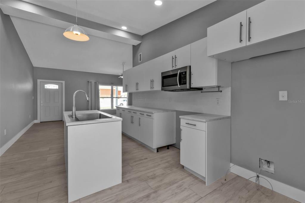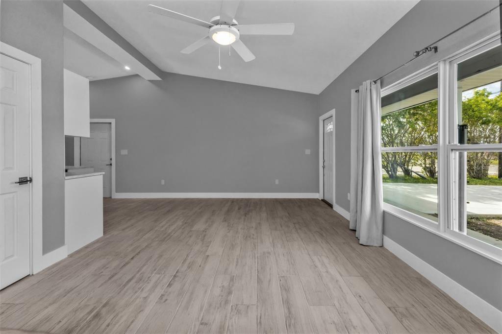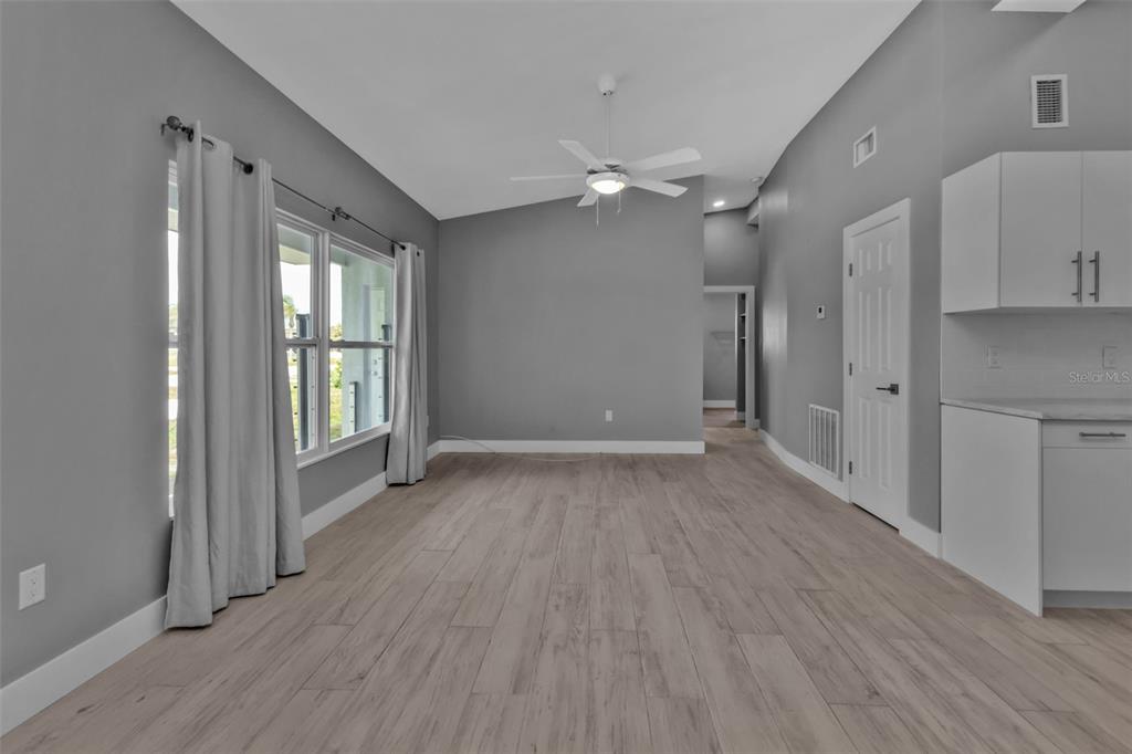 Split Bedroom Walk-In Closet(s)Ceiling Fan(s) High Ceilings Open Floorplan Solid Surface Counters Solid Wood Cabinets Kitchen/Family Room ComboCathedral Ceiling(s)Exterior Features: