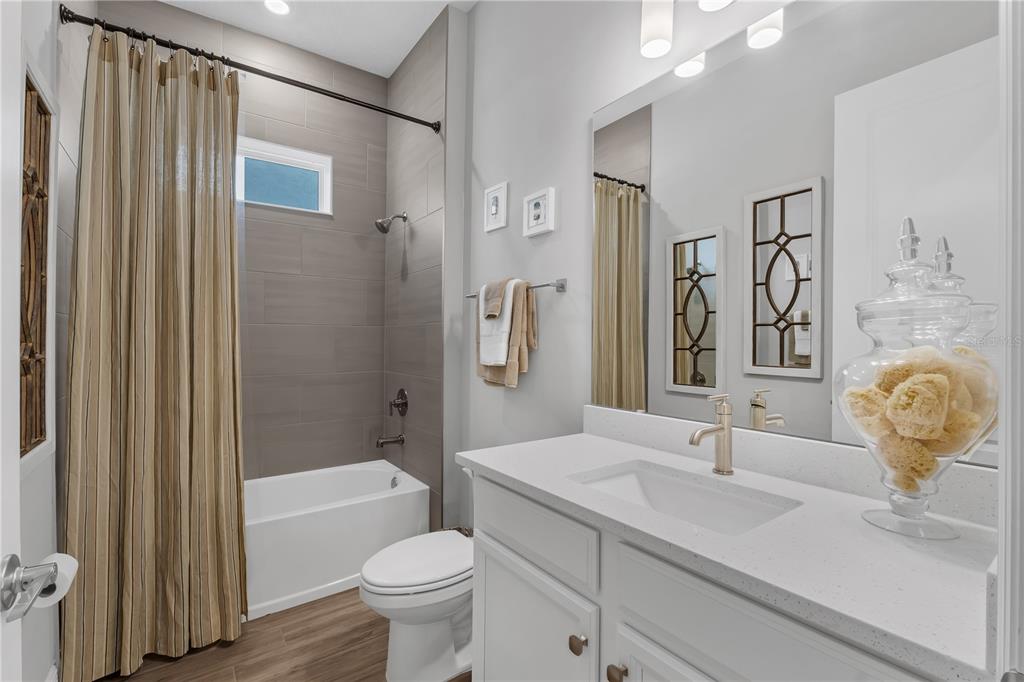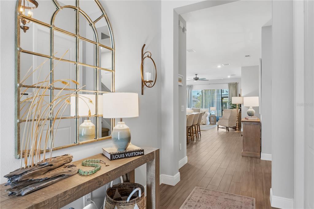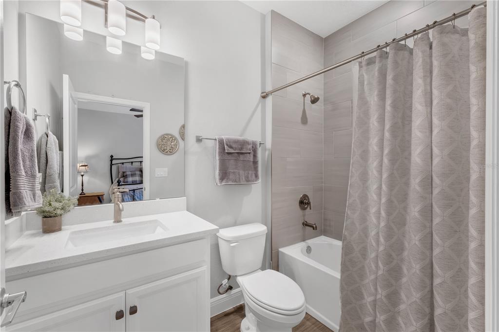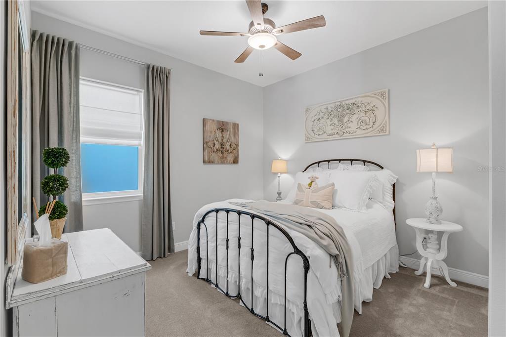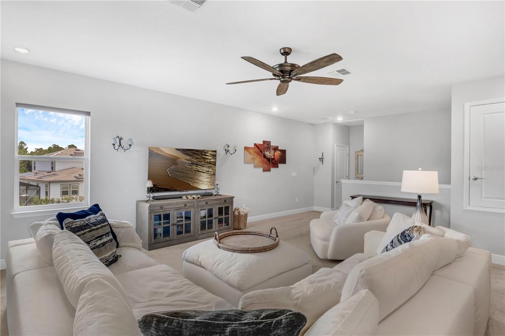 ***offering thoughtful upgrades and custom touches you won’t find in current builder inventory, at a price point below what new construction is offering today, this home is a standout in both quality and value!!! *** welcome to 3112 ranger road, a beautifully enhanced home offering just under 3,000 square feet, featuring, four bedrooms, three and a half baths, a two-car garage, and paid-off solar panels, all situated on a peaceful, green-space-adjacent lot in the sought-after community of weslyn park at sunbridge. as you step inside, you're greeted by a spacious foyer and a calming neutral color palette that provides the perfect canvas for any design style. just off the entry to the left, two well-appointed secondary bedrooms share a full bathroom, ideally positioned for guests or family. continue down the wide hallway and the home opens into a bright, beautifully designed living space. the main living areas feature wood-look tile flooring, offering warmth and elegance with the durability of tile, perfect for florida living. at the heart of the home, the open-concept kitchen, dining, and great room seamlessly connect for effortless everyday living and entertaining. the gourmet kitchen includes an oversized quartz island with bar seating, soft-close cabinetry, stainless steel appliances, custom backsplash, and a pantry with built-in shelving for smart storage. the dining and living areas flow effortlessly to the screened-in lanai, extending your living space outdoors and overlooking the lush, fenced-in backyard with upgraded sod and landscaping. the primary suite, tucked privately at the rear of the home, offers a luxurious retreat with a freestanding soaking tub, an oversized walk-in shower, dual vanities, and a walk-in custom closet. just off a small hallway near the staircase, a versatile flex room provides the ideal spot for a home office, study, or creative space. upstairs, a spacious bonus room provides additional living flexibility, while a generous fourth bedroom with its own en suite bath makes for a perfect guest suite or secondary primary retreat. the sellers have added thoughtful custom upgrades throughout the home, including electric window treatments, designer pottery barn shades, and custom closet systems in every room. the laundry room has been fully built out with upper and lower cabinetry, solid surface countertops, and a farmhouse sink, creating a stylish and functional space. other highlights include paid-off solar panels, a modern glass front door that brings in natural light, gutters, and black metal fencing to enclose the beautifully landscaped backyard. located in sunbridge, a nature-rich, master-planned community spanning over 28,000 acres, residents enjoy scenic trails, a neighborhood k–8 school, regular community events, and the soon-to-open marina village with waterfront dining, shopping, and a resort-style pool complex. this home is a rare combination of elegance, thoughtful upgrades, and community living, schedule your private showing today and see everything this stunning home has to offer.3112 RANGER, ST CLOUD, FL 34771