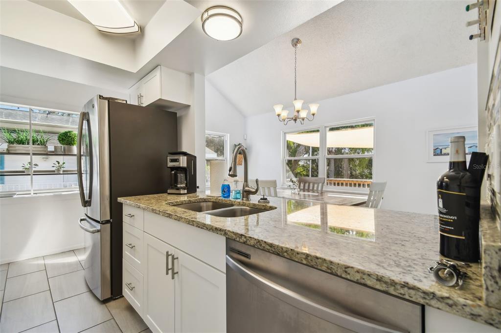 Vaulted Ceiling(s) High Ceilings Stone Counters Open Floorplan Solid Wood CabinetsExterior Features: