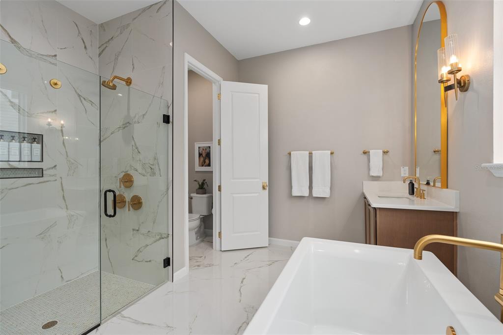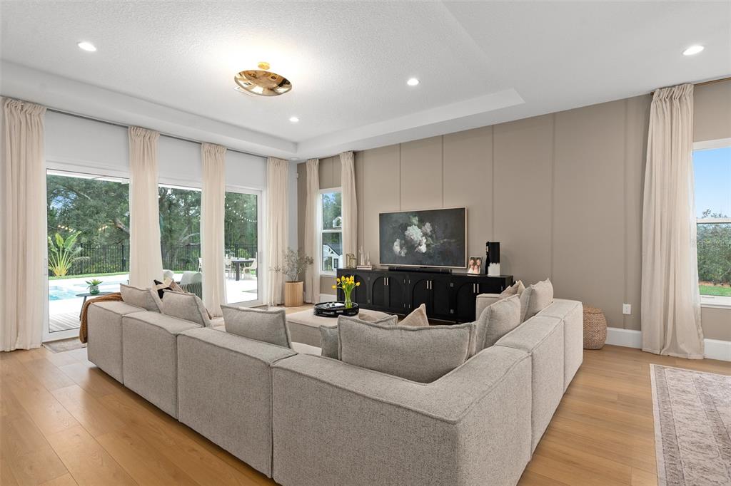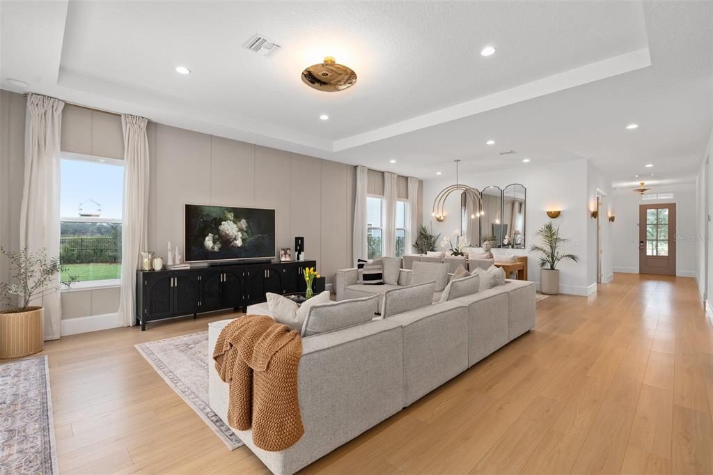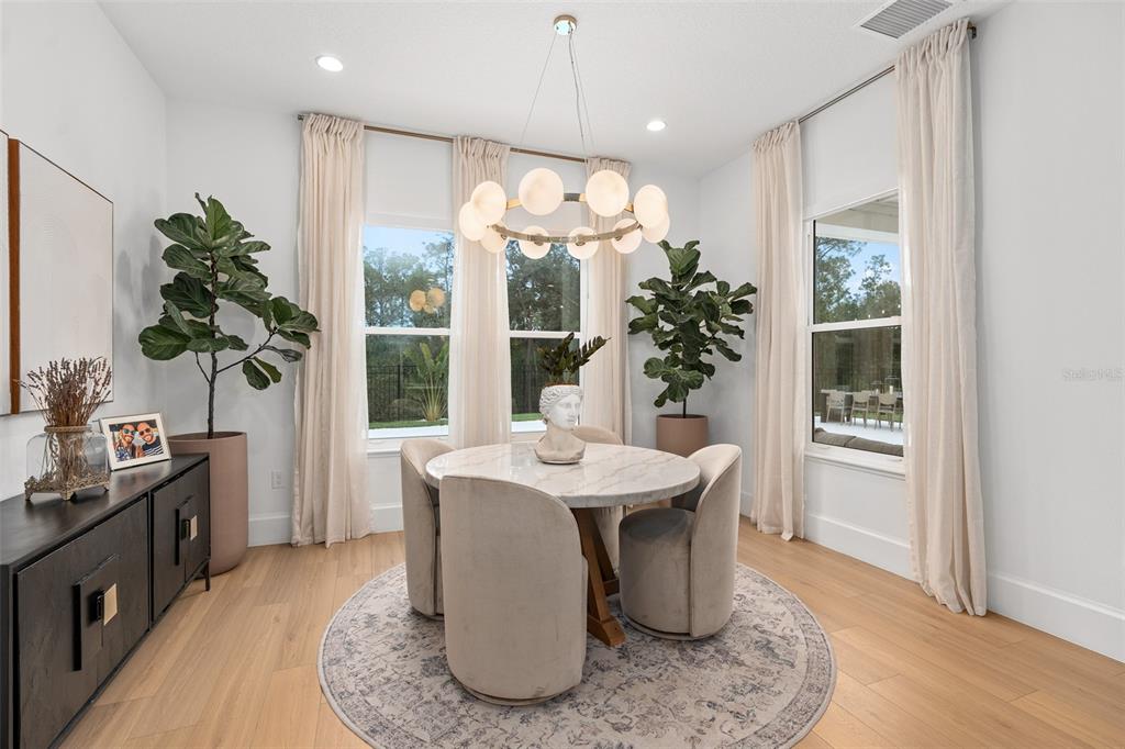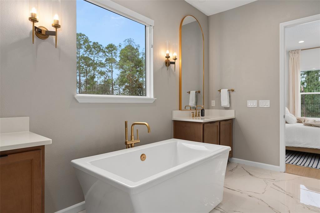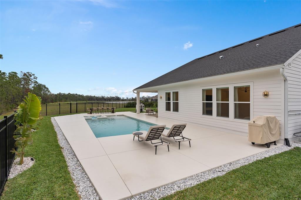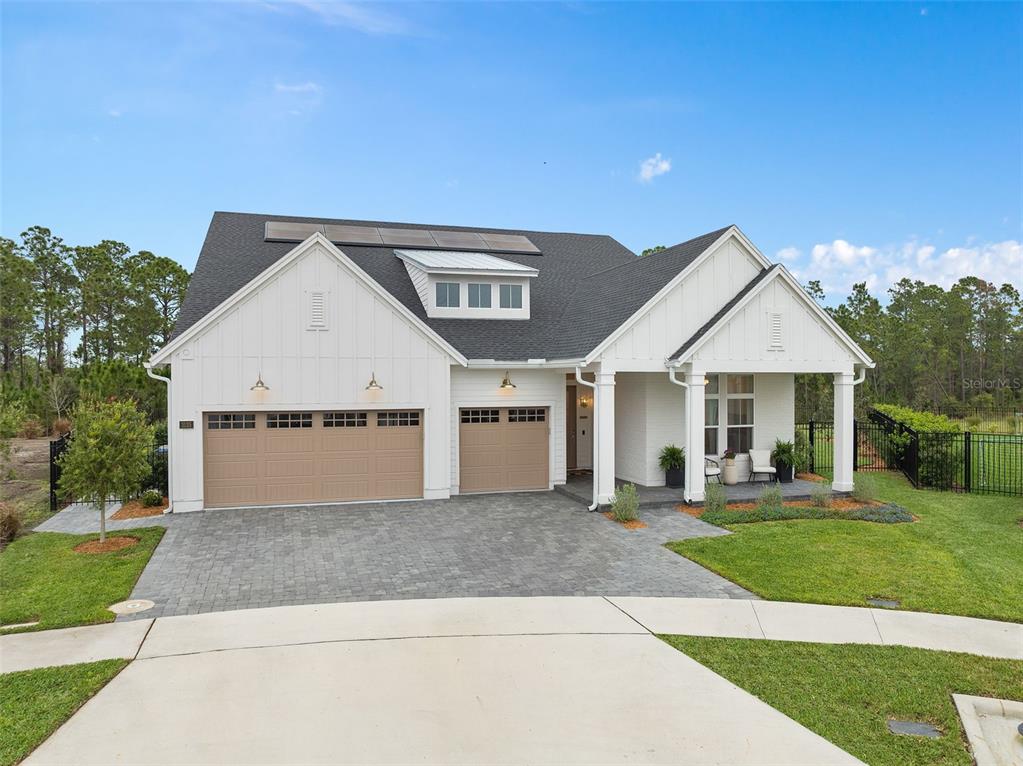 Welcome to the naturehood. discover the perfect blend of luxury and nature in this exquisite toll brothers home, nestled in the highly sought-after weslyn park community inside sunbridge—a place where modern living meets the beauty of the outdoors. this 4-bedroom + office (5th bedroom), 3.5-bathroom home is situated on one of the largest cul-de-sac lots, backing up to the serene split oak forest for ultimate privacy and breathtaking views. designed for both elegance and functionality, the home offers a spacious 3-car garage with a drop zone, an oversized saltwater pool and spa with a sun shelf, and a fenced backyard with extended patio, upgraded landscaping, irrigation, and gutters. modern conveniences include a water softener, solar panels, ev charger, automated blinds and smart appliances. the home boasts with seamless flooring throughout, with no transitions between rooms, 7-inch baseboards, 8-foot doors, and upgraded brass door handles that add a refined touch. designer chandeliers and additional recessed lighting elevate the ambiance, while all bathrooms have been tastefully upgraded. the primary suite is a true retreat, featuring dual shower heads and a freestanding tub. step into a home where luxury meets sustainability, and nature is at your doorstep. experience naturehood in the heart of sunbridge.3135 VANGUARD, ST CLOUD, FL 34771