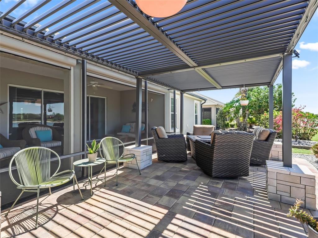 Welcome to this immaculate iris model home, nestled in the desirable village of sanibel! situated in a serene park-like setting, this home offers breathtaking sunsets and expansive water views, making it the perfect retreat. enjoy the beauty of the villages from the comfort of your own brick paver patio under a custom-designed pergola—ideal for soaking in the incredible scenery! as you arrive, you'll be greeted by exceptional curb appeal, featuring an expanded 2-plus garage and a beautiful brick paver driveway. step inside to discover an open floor plan that flows seamlessly throughout, with expansive sliding pocket doors that lead out to the screened-in lanai and patio area, where you can relax and unwind. with motorized sun blocking shades, the lanai area stays comfortable all day long. the kitchen is a chef’s dream, featuring stunning maple cabinetry, sleek quartz countertops, and stainless steel appliances. the large primary bedroom offers a luxurious en-suite with a roman shower, dual vanity, and walk-in closet. the 3rd bedroom is equipped with a murphy bed, making it the perfect space for guests or a home office. this home is located just minutes from the captiva pool & recreation center, colony plaza with great shopping and dining options, and the bonifay championship golf course, along with 3 executive courses. whether you’re an avid golfer, enjoy leisurely strolls, or simply love the beauty of this incredible home, this is the perfect place for you! don’t miss your chance to own this stunning piece of paradise. schedule your private showing today!3156 VANDENBERG, THE VILLAGES, FL 32163