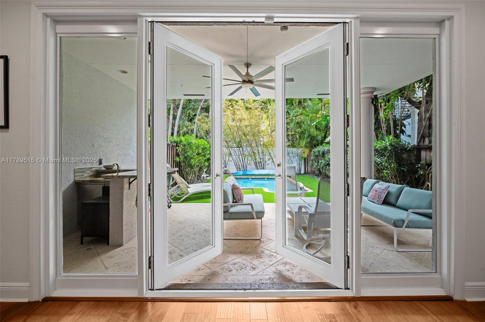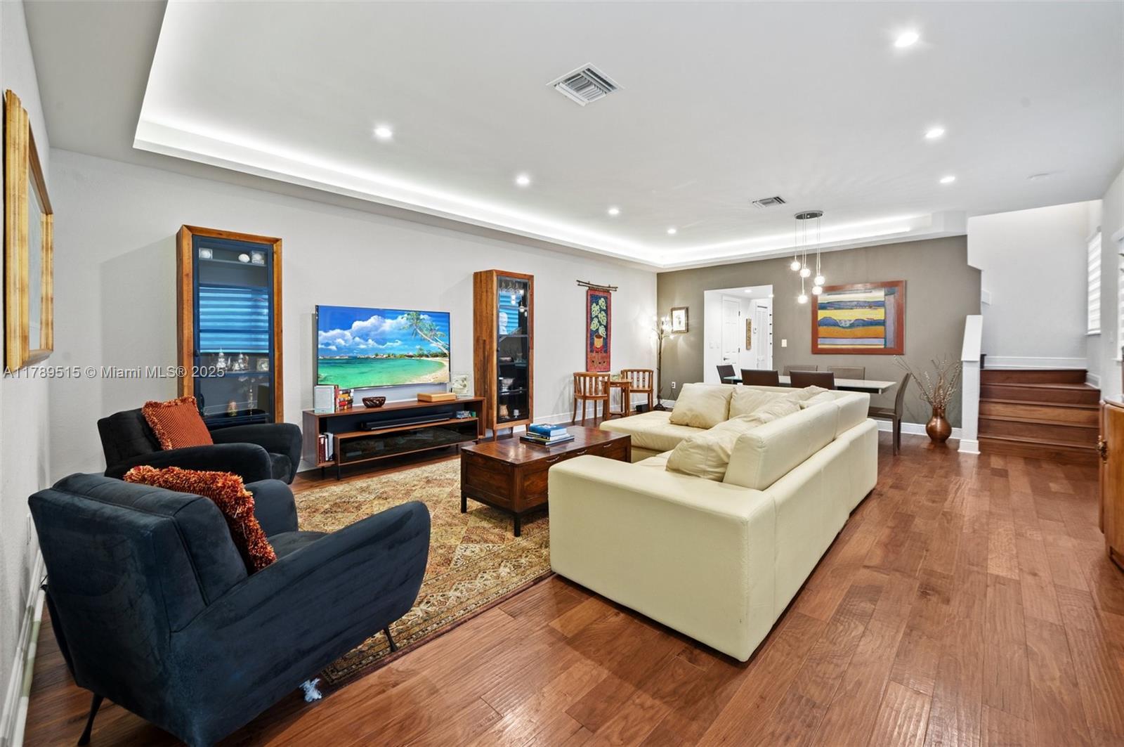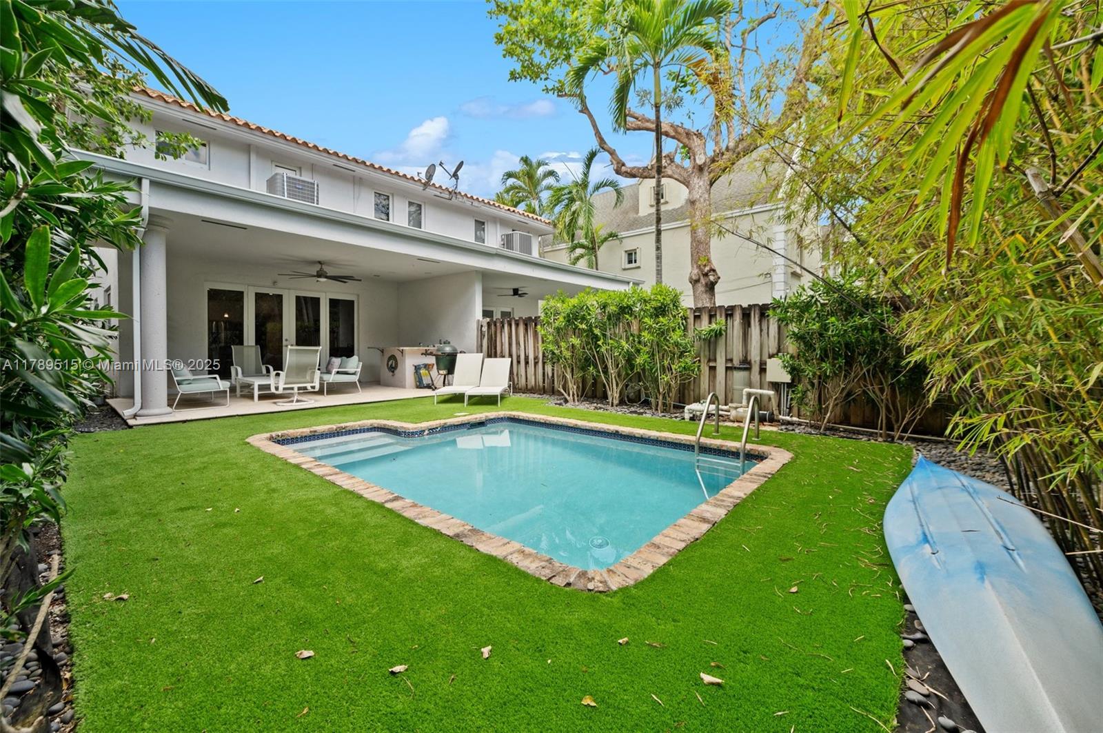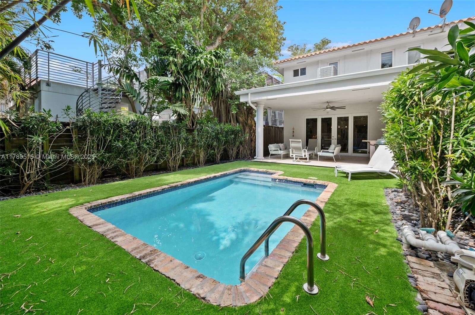 Live in center coconut grove steps from coconut grove elementary in this beautifully renovated, gated two story 3/2.5 townhome located on the ridge. walk to restaurants, gyms, stores, parks, and marinas. step inside to see the open living/dining room with beautiful soffit uplighting, powder room, a beautiful renovated open kitchen with a large island and airy family room. wood/bamboo floors and zebra blinds throughout. ceiling high french doors lead to a covered patio, wet bar and resurfaced pool with a turf deck. serene landscaping. upstairs find three bedrooms: a large primary bedroom and ensuite bathroom and two bedrooms with ensuite bathroom. updates include impact doors & windows; security system; gate; new hvac, washer/dryer; gutter; tankless water heater; and so much more.3169 MARY ST #2, COCONUT GROVE, FL 33133