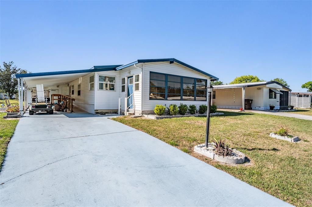 Welcome to your beautifully maintained and move-in ready home in the sought-after 55+ community of martin estates! this spacious 2-bedroom, 2-bathroom residence offers a rare blend of comfort, functionality, and versatility. the bright and updated kitchen features crisp white cabinets, generous counter space, and modern appliances—perfect for home chefs or casual entertaining. the open-concept dining and living areas flow seamlessly and are flooded with natural light. the primary suite includes a private bathroom with dual vanities, a large walk-in shower, and a dedicated makeup area. both bathrooms have been tastefully updated. additional features include a large laundry room with ample cabinetry and workspace, plus a charming florida room ideal for morning coffee or evening relaxation. outside, enjoy the expansive lot with multiple sheds and workshop spaces—including a powered woodshop ideal for hobbyists, diyers, or additional storage needs. a covered carport with a ramp adds accessibility and convenience, and the manicured landscaping with concrete curbing gives this home serious curb appeal. martin estates is a well-kept, resident-owned community with a low hoa and no lot rent. this home is not in a flood zone. whether you’re a snowbird or year-round resident, this one checks all the boxes. call today for your private tour—homes in this condition don’t last!317 MONROE, LAKELAND, FL 33809