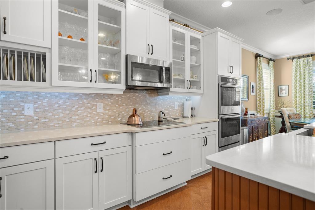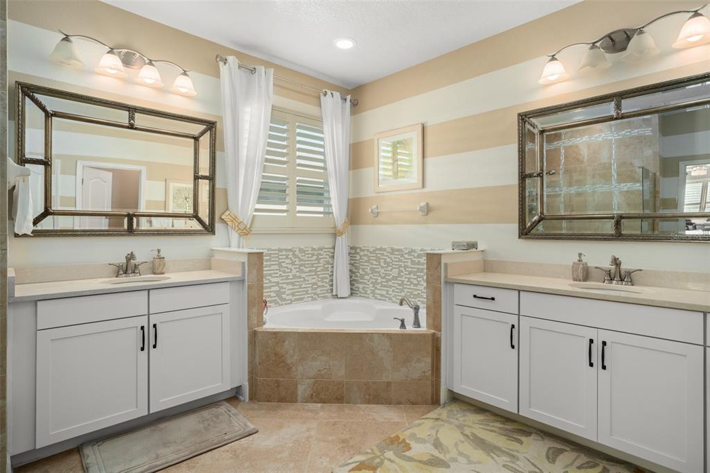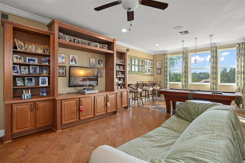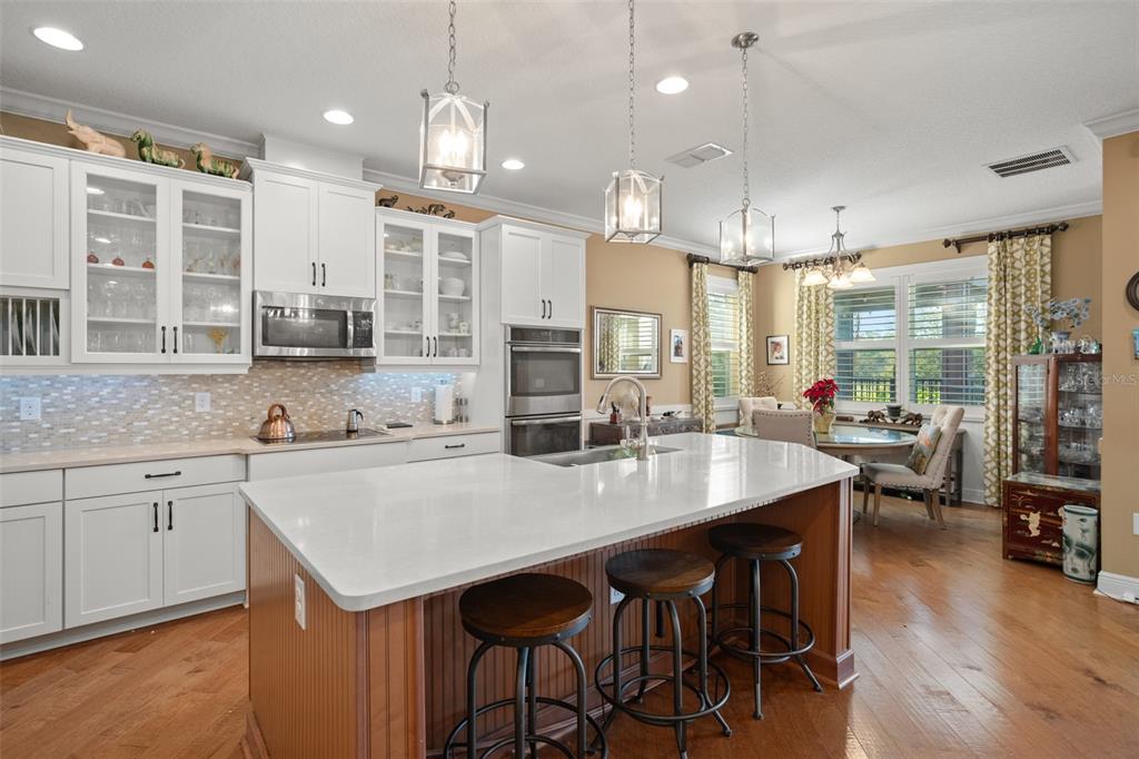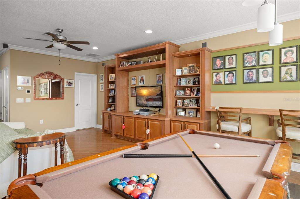 Lovely golf front home in the exclusive serenity at redtail community. this home features model home custom upgrades and provides the wow factor at every turn. it starts with great curb appeal – meticulously landscaped front, and paver driveway with split 3 car garage with charming stone detail. layout boasts an open common living space in the heart of the home, split bedroom plan and upstairs bonus room complete with pool table and full bath. you’ll find engineered hardwood flooring, wainscoting, detailed ceilings and walls and built in shelving throughout the common living areas and plantation shutters throughout the first floor. gourmet style kitchen in stylish white with glass highlights features silestone counters (quartz mixed with polyester resins, color pigments and antibacterial ingredients), a large island w/breakfast bar, farm style sink, double built-in oven, walk-in pantry and sizeable dining space that overlooks the golf course. all appliances included. the spacious master suite on one side of the home-ideal for privacy, overlooks the golf course as well. the ensuite master bath is beautifully appointed, and includes split vanities, a free-standing tub and an impressive walk-in shower. work from home in your formal sitting room/den/office with beautiful barn doors to provide privacy. the second bedroom is spacious with its own en-suite - perfect for guests. another reason to love this home is all that you have out back – extended paver lanai, in ground hot tub, and a view of the golf course. great location - redtail is a secured, gated community. you may want to consider membership in the red tail golf club. you’re only a short drive from all the great shopping/dining venues in mount dora and minutes from sr 429 that will help whisk you to anywhere you need to go in short order! this home shines, both inside and out. come see all that it has to offer.31921 REDTAIL RESERVE, SORRENTO, FL 32776