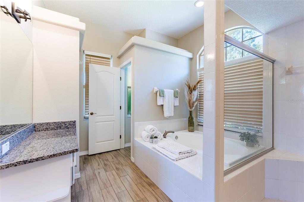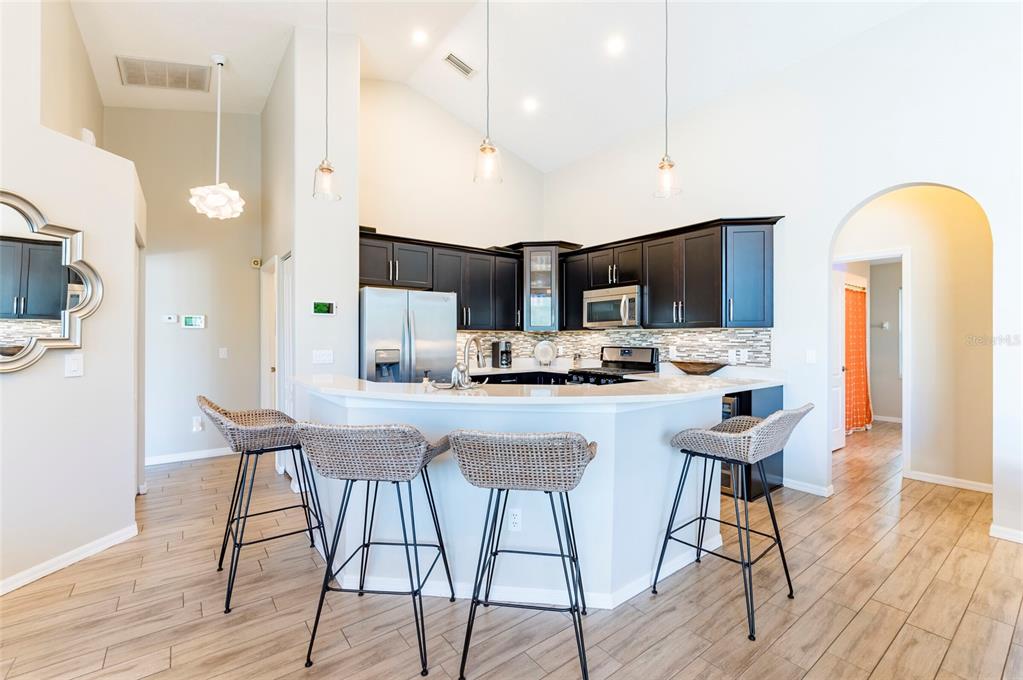 Split Bedroom Walk-In Closet(s) Eating Space In Kitchen High Ceilings Open Floorplan Window Treatments Solid Surface Counters Primary Bedroom Main Floor Kitchen/Family Room ComboExterior Features: