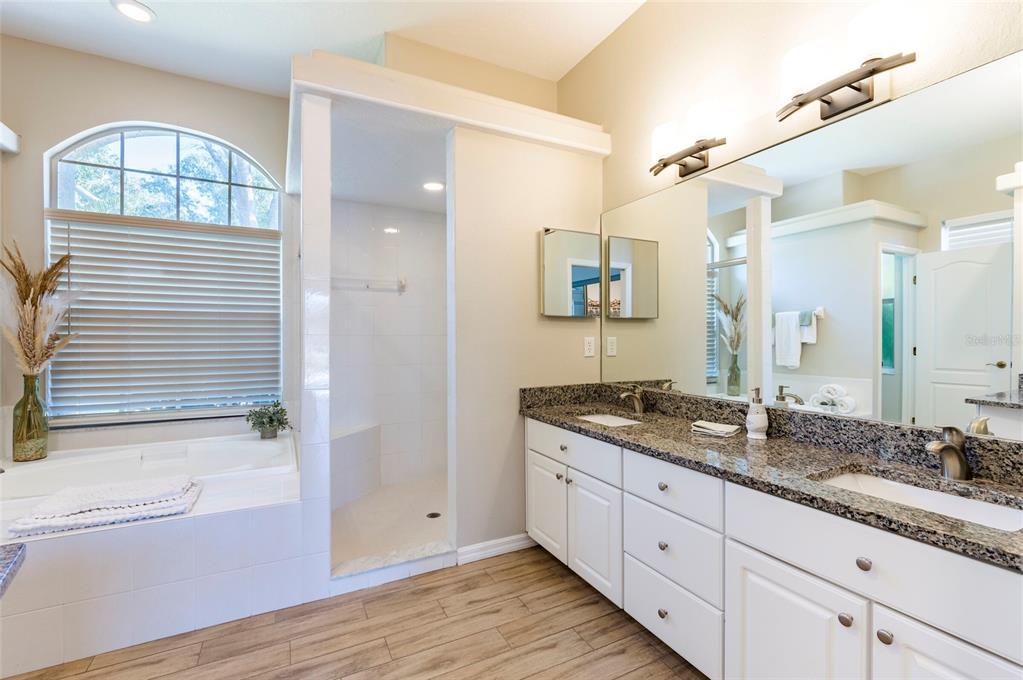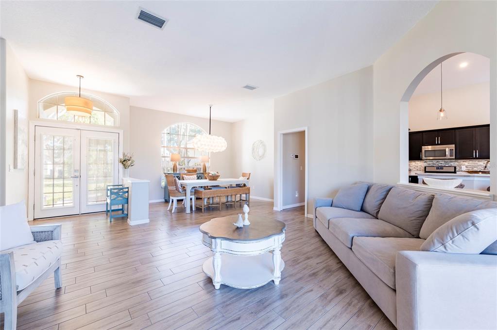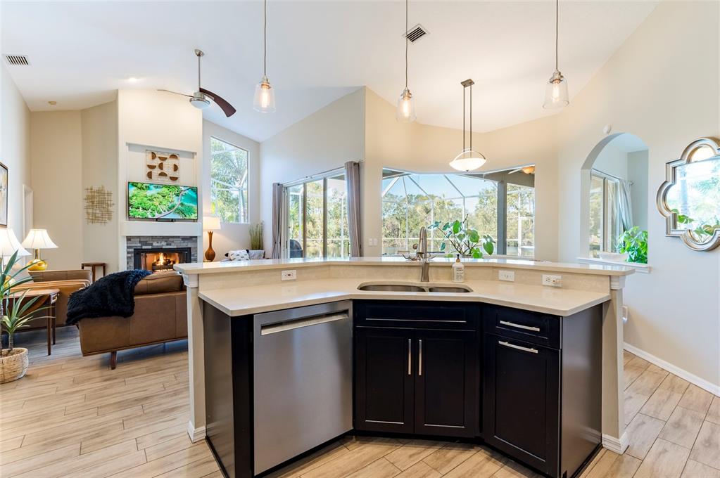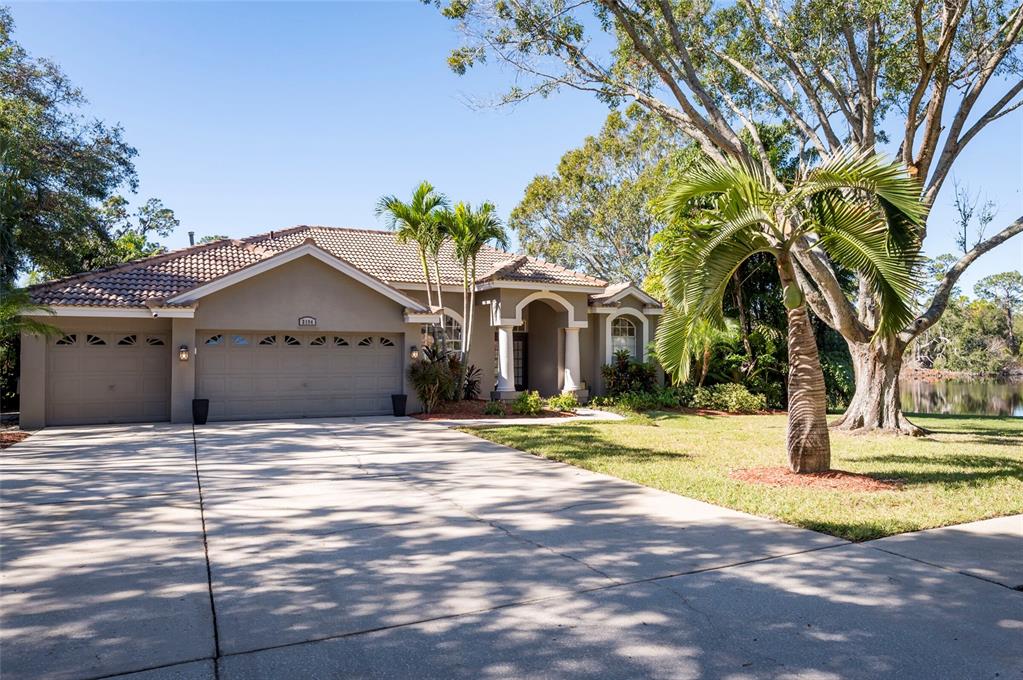 Want a house surrounded by water that didn't flood during the hurricanes? look no further! this fabulous home sits 26 feet above sea level with almost ¾ of an acre lot. no flood insurance is required for this property. the private lot has water behind it, to the side, and stays completely dry! discover this architectural masterpiece nestled within autumn woods, a single family community, situated on top of palm harbor's rolling hills in northern pinellas county. amenities include basketball court, recently updated dog park, playground, picnic areas and tennis/pickle ball courts along with a variety of community events throughout the year. this home gives you so much privacy with no immediate neighbors. everything has been thought of here. you will fall in love with the water view while soaking in your salt-chlorinated electric heated pool with led lighting, beautiful paver deck, interior and exterior entertainment system and bathroom access directly from the pool. enjoy the view of your lush, well-maintained floridian landscape which provides extra seclusion, and a tasteful vinyl fenced enclosure for pets. new led blue-tooth enabled landscape lighting was professionally installed in the fall of 2023. the lawn with irrigation filtered from the lake remains green throughout the year. too cold to swim? warm up in front of the cozy gas fireplace in the family/living room with 24-foot vaulted ceilings or make a gourmet meal in your state-of-the-art kitchen with high end quartz countertops, stainless steel 5 burner gas range, refrigerator, dishwasher and wine fridge. all the appliances stay! additional upgrades include 24k generac whole home natural gas generator, 18 inches of new pest preventative boric acid treated insulation, new gfci weather protected outside outlets, google home cameras and adt security, new garage door opener with blue tooth and epoxy garage flooring. this home boasts an architecturally pleasing and durable tile roof. located approximately 7 miles from honeymoon island state park beach, the caladesi island beach ferry and ½ mile from the 54-mile pinellas trail which offers access to many surrounding parks, springs and activities. clearwater beach, a world-renowned vacation destination, is under 13 miles away. the st.pete-clearwater international airport is conveniently located17 miles away with tampa international airport under 22 miles away. enjoy easy access to the gulf of mexico beaches. this island like oasis offers the perfect blend of convenience, luxury and resort-style living.3194 MEADOW VW, PALM HARBOR, FL 34683