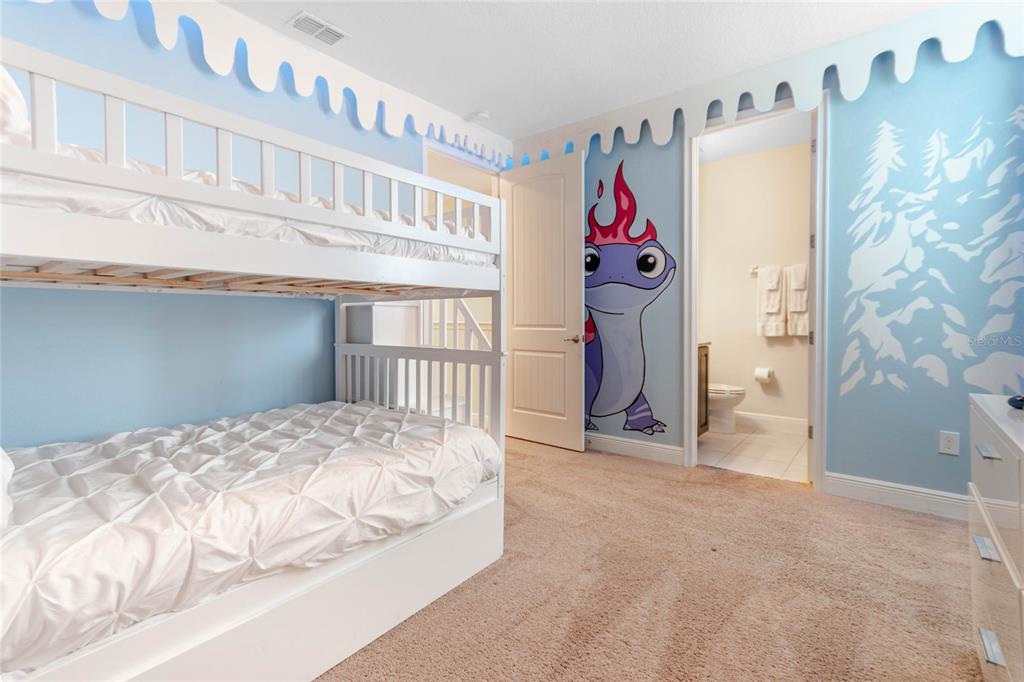 Located in the highly sought-after, guard-gated encore resort, just minutes from walt disney world and other world-class attractions, this luxurious two-story home offers the perfect combination of comfort, style, and functionality. meticulously designed and maintained by the current owners, this home is a true vacation paradise, providing a serene escape and an unforgettable getaway experience. the home features dual master bedrooms, ideal for large families or multiple guests, ensuring ultimate privacy and comfort. with high-end décor and quality furniture throughout, all included in the list price, this fully furnished home is move-in or rental-ready. it boasts six bedrooms and six and a half bathrooms, with a ground-floor bedroom offering an ensuite bath and five additional bedrooms upstairs, each with adiacent bathrooms. all ages will delight in the imaginative themed rooms. the snow castle room is a winter wonderland, complete with snow-covered trees and icicle canopies, while the star wars-themed media room, equipped with comfortable movie chairs, offers a unique space for family movie nights. the home comfortably sleeps up to 14, making it perfect for large groups or multi-family stays. step outside to your sparkling private pool and spa, where you can relax under the florida sun or unwind in the evening. the covered outdoor dining area and beautifully landscaped lawn create an ideal setting for outdoor entertaining. additionally, the garage has been converted into a character-themed games room, ensuring endless fun for guests of all ages. encore resort is packed with outstanding amenities. the clubhouse, just a short walk away, includes a swimming pool, spa, fitness center, restaurant, and an on-site concierge service. for those who enjoy sports and recreation, the resort offers tennis courts, basketball courts, volleyball courts, and water slides. a convenient shuttle bus service to the theme parks and shopping areas, along with 24-hour concierge service, make this home the perfect destination for both personal vacations and short-term rentals. this property presents an exceptional opportunity for anyone looking for a vacation home or an investment property. with a proven rental history and its prime location near orlando's top attractions, you can start earning rental income immediately. whether you're looking for a family retreat or an income-generating property, this home offers everything you need for a luxurious and memorable experience. don't miss out-schedule your showing today!321 FLS, KISSIMMEE, FL 34747