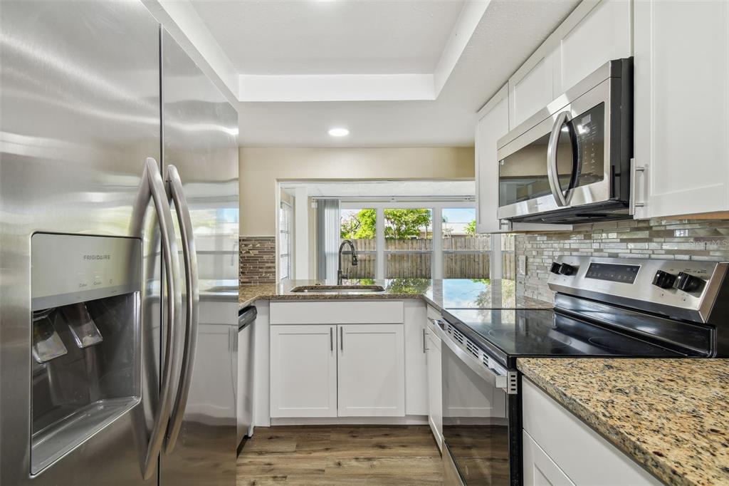 Nicely updated two bedroom, two bathroom home in beacon square is move-in ready! new roof installed july 2024. the kitchen features new shaker style cabinets, granite countertops & four piece stainless steel appliance set. an open floor plan creates a seamless flow from the living room, florida room and kitchen which makes entertaining guests enjoyable and easy. excellent natural lighting. the master bedroom offers an en-suite bathroom and access to the screen enclosed porch from the bedroom or bathroom. enjoy the beautiful florida weather from either of the two screen enclosed porches in your privacy fenced backyard.3221 SANFORD, HOLIDAY, FL 34691