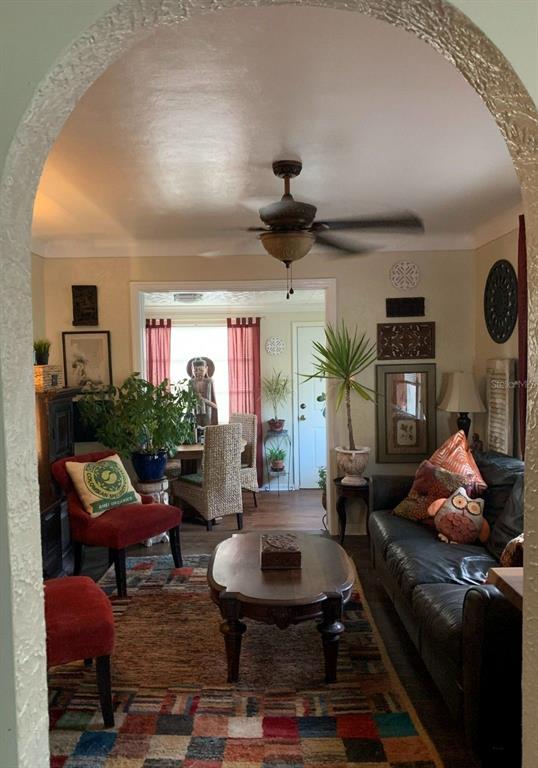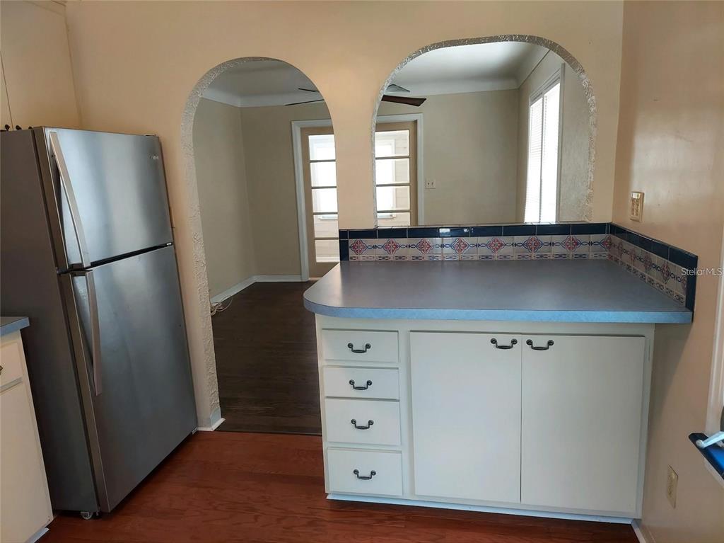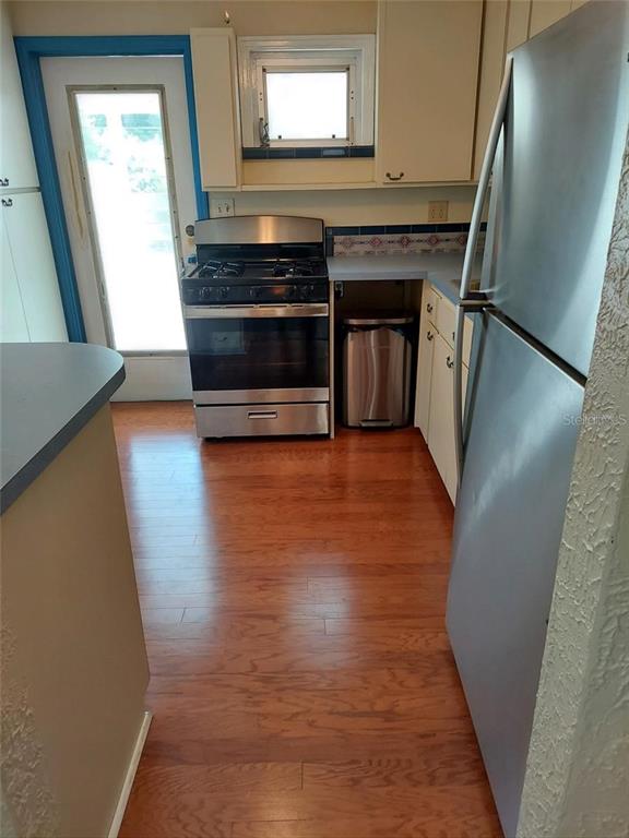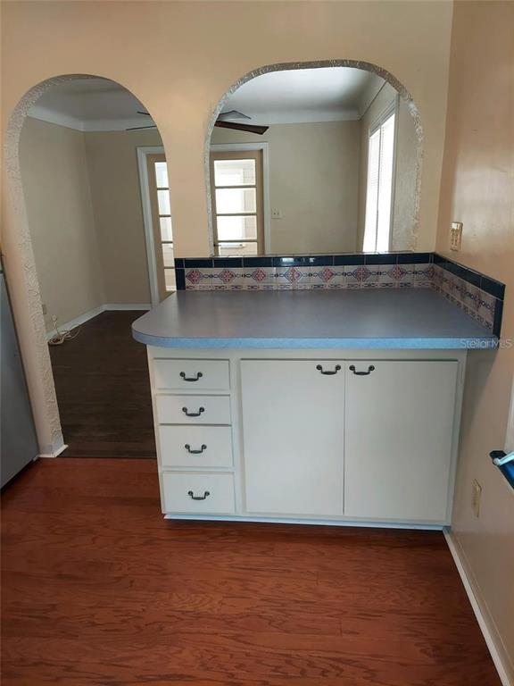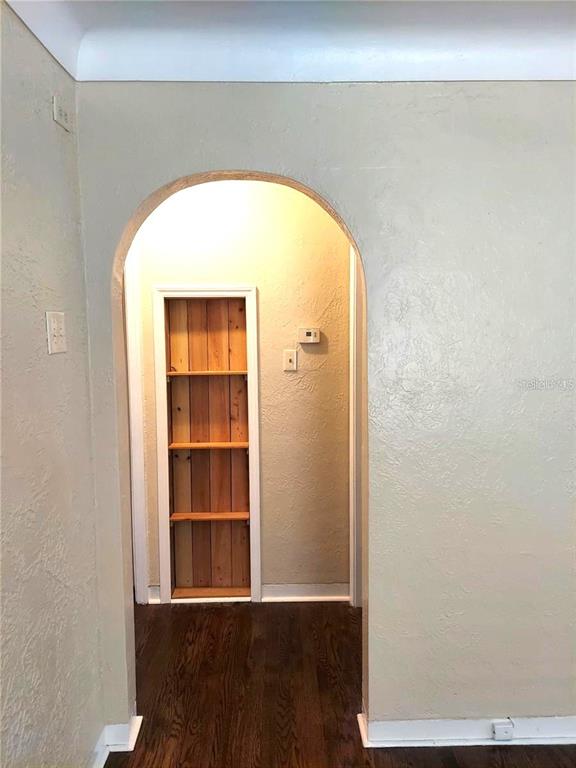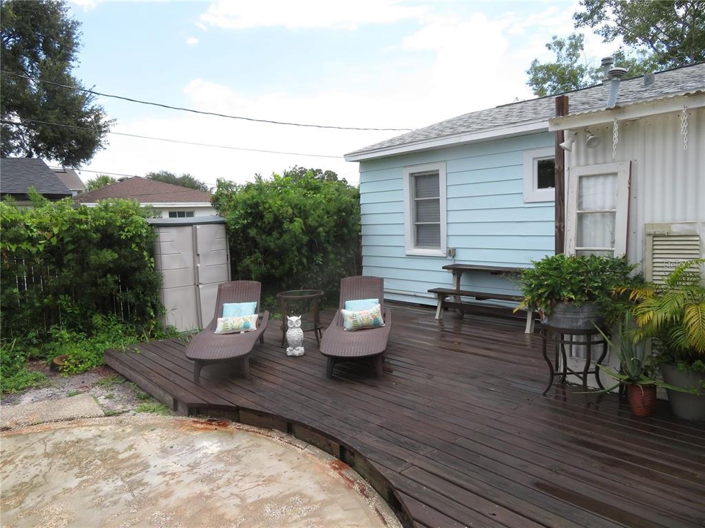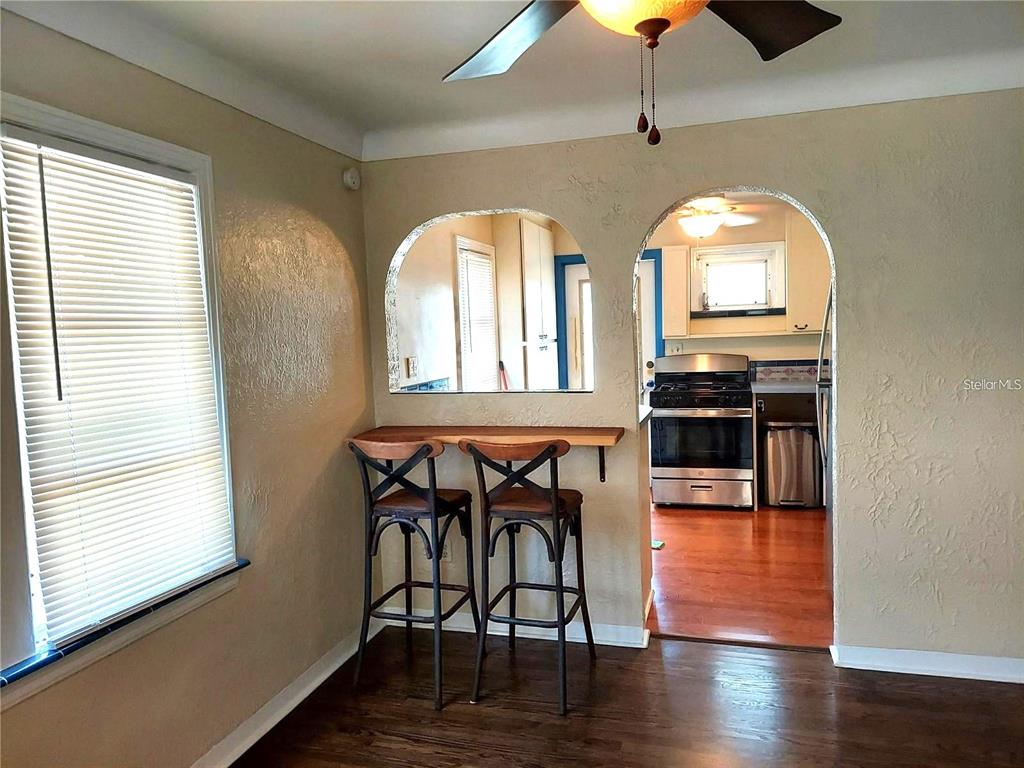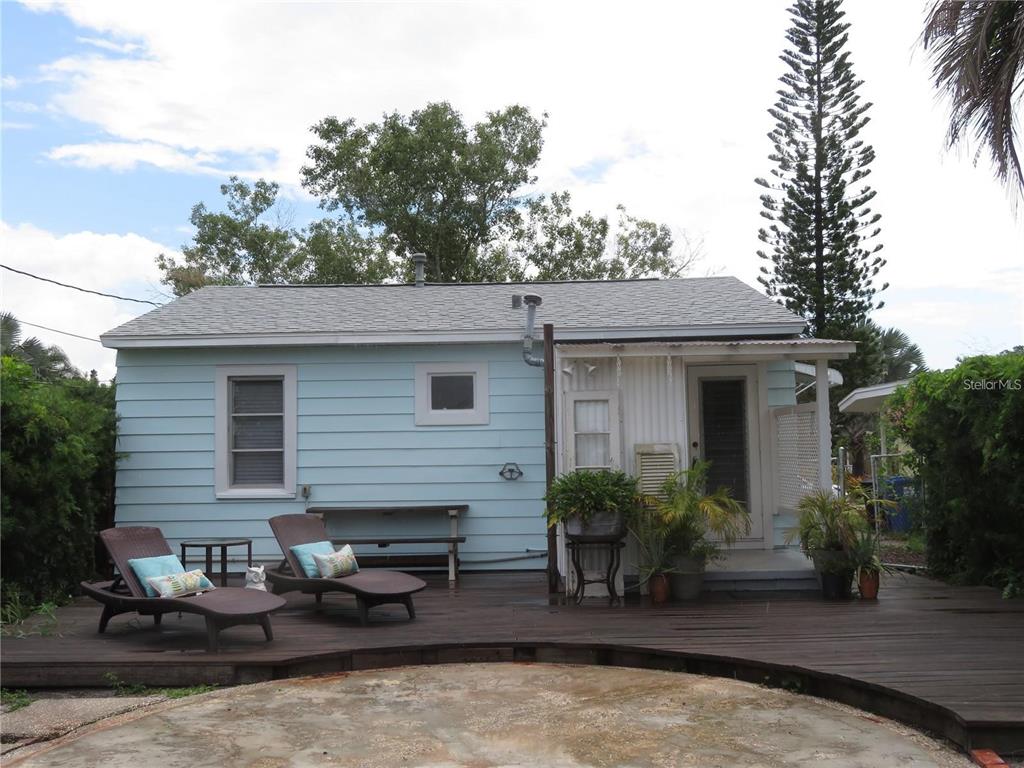 Charm galore in this 1950's vintage cottage offering two bedrooms, 1 bath, plus a front bonus room that would make a great office. original refinished hardwood floors, cove ceilings, and arches. bonus room has shiplap and french doors leading to the living room. kitchen includes an eat-in breakfast bar and pass-through to living room. roof 2021, gas hot water heater 2021. stainless steel refrigerator and gas stove 2022. reglazed tub and tile in vintage bathroom. termite warranty in place. exterior painted in 2023. backyard has a newer deck and a shed and could easily be transformed into a tropical oasis. great location--only 20 blocks to crescent lake or coffee pot bayou! just minutes to the interstate and downtown st. pete! no flood insurance required. this neighborhood has many newly constructed 2-story homes. no damage from helene or milton. check it out today! possible owner financing!3246 PRESCOTT N, ST PETERSBURG, FL 33713