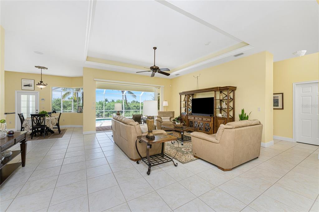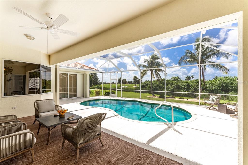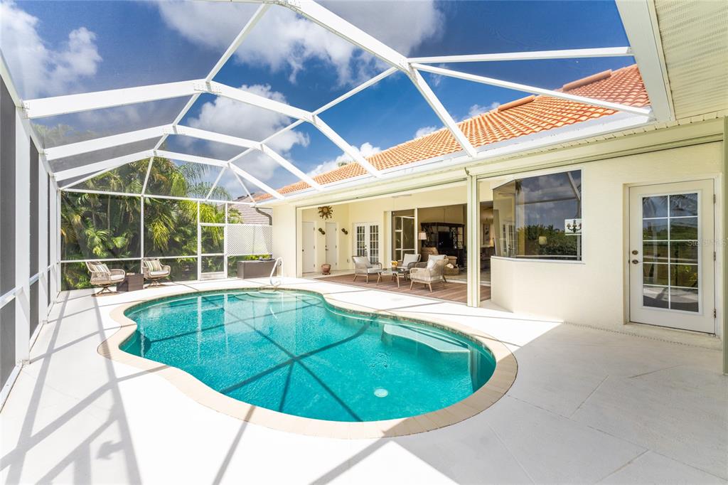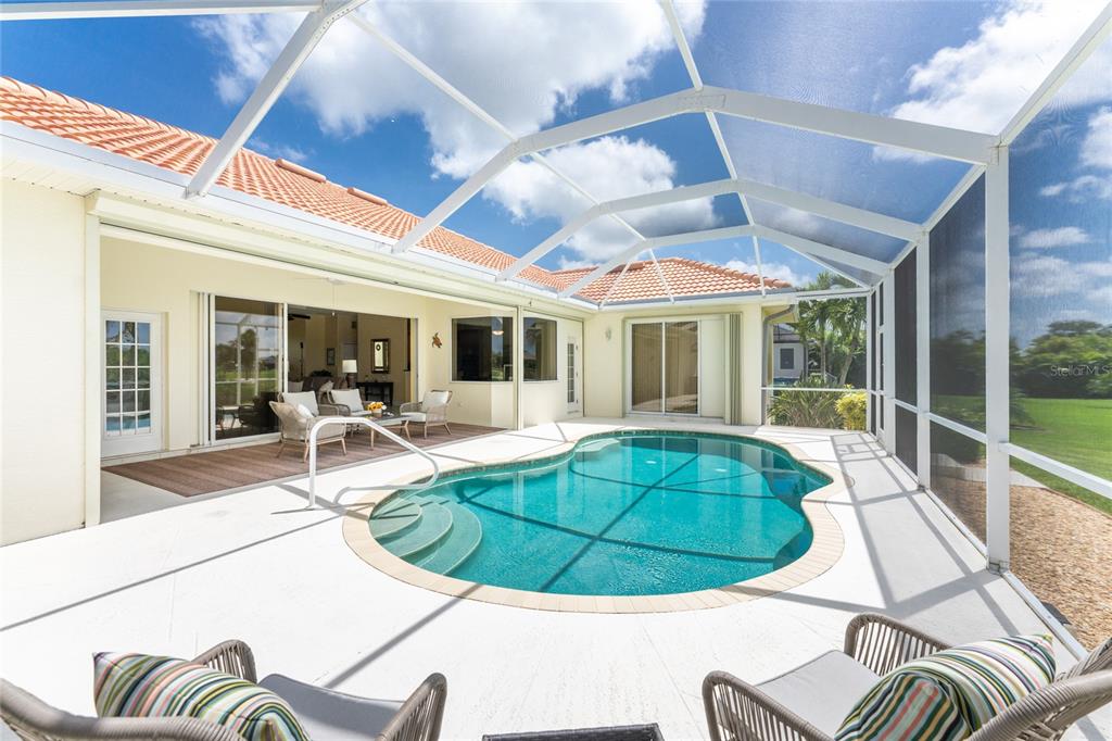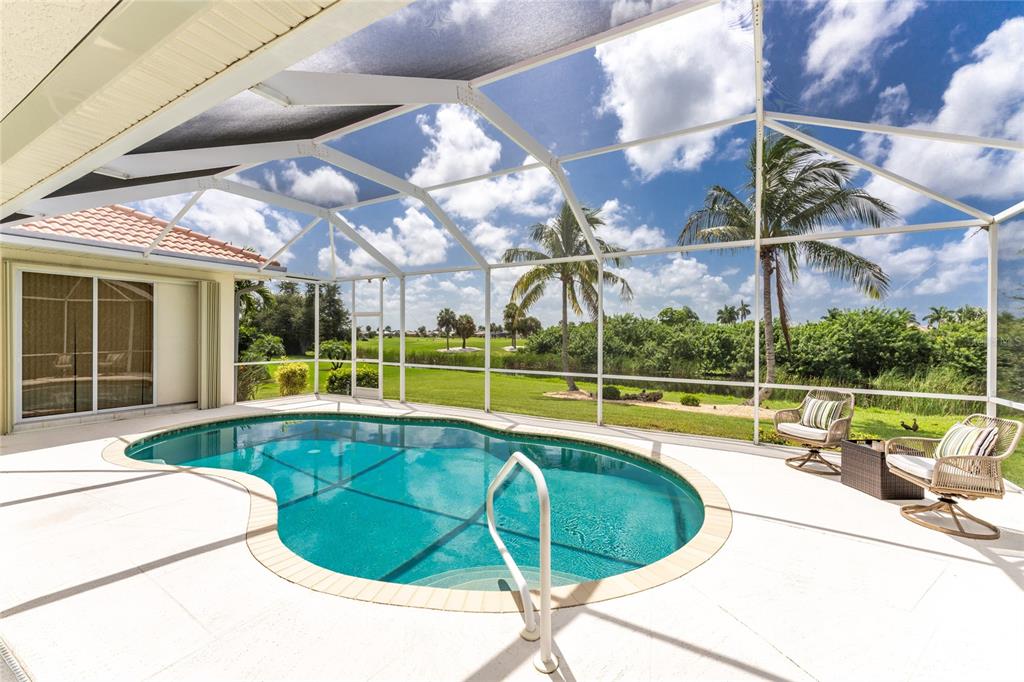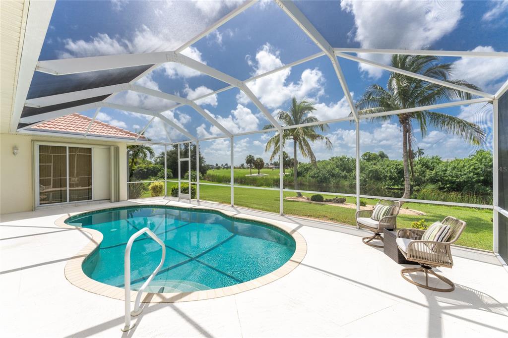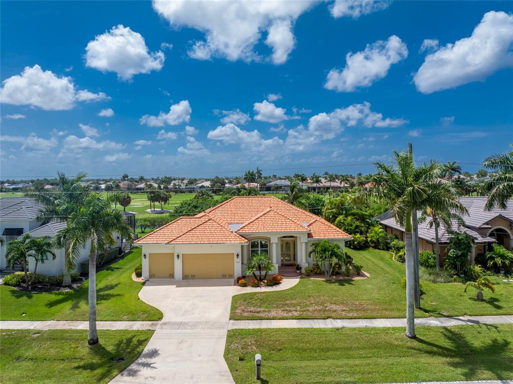 Impressive 3 bedroom, 2.5 bathroom pool home with attached 3 car garage located on the twin isles golf course in desirable deed restricted burnt store isles. partial golf course views of the third green and large golf course pond in the rear of the house. view of the 10th fairway from the front of the house. this light and bright home offers an open and split bedroom floor plan with foyer, great room, separate dining room, well appointed kitchen, inside laundry room. the spacious great room features tile flooring, high tray ceiling, pocket sliding glass doors to the lanai. the dining room has a high tray ceiling, tile flooring and large window with plantation shutters. the kitchen features staggered height wood cabinets with crown molding, granite counters, breakfast bar, closet pantry, instant hot water faucet,good counter and cabinet space. the appliances are stainless: built in microwave, built in oven, cooktop with hood, french door refrigerator. the dining area overlooks the pool through aquarium glass and has a door to the lanai. there is an inside laundry room with washer, dryer, laundry tub and cabinets. the spacious master bedroom suite features a tray ceiling, sliding glass doors to the lanai, two walk in closets and private bathroom with dual sinks, white cabinets, granite counters, jetted tub and walk in shower. there are two additional generous sized guest bedrooms. one bedroom has double built in closet, french doors to the lanai and half bath which is also a pool bath. the other guest bedroom has a double built in closet and is currently used as a den. the guest bathroom has white cabinetry, solid surface counters and a walk in shower. your living space extends to the screened lanai with heated saltwater inground pool, covered area and plenty of deck for sunbathing. trees offer lots of privacy. other features include: transom window over the front door, plantation shutters, tile flooring in the living areas, carpet in the bedrooms, high ceilings, hurricane shutters including an electric shutter for the front door, impact windows on the front of the house, new pool pump. ***new tile roof 2021*** new a/c 2020*** some furniture is negotiable - owners will provide list. hoa is optional. utilities are city sewer and water. ***no flooding or damage from hurricanes*** this home is one block from the entrance to twin isles country club and 5 minutes to historic downtown punta gorda shopping, dining, medical care, waterfront parks, boat ramps, fishing piers, walking and biking paths, art galleries, weekend farmers markets, charlotte harbor event center, fishermen's village, events and more! this beautiful home is perfect for entertaining and is your florida dream home. don't miss this exceptional home in a fantastic community.325 MADRID, PUNTA GORDA, FL 33950