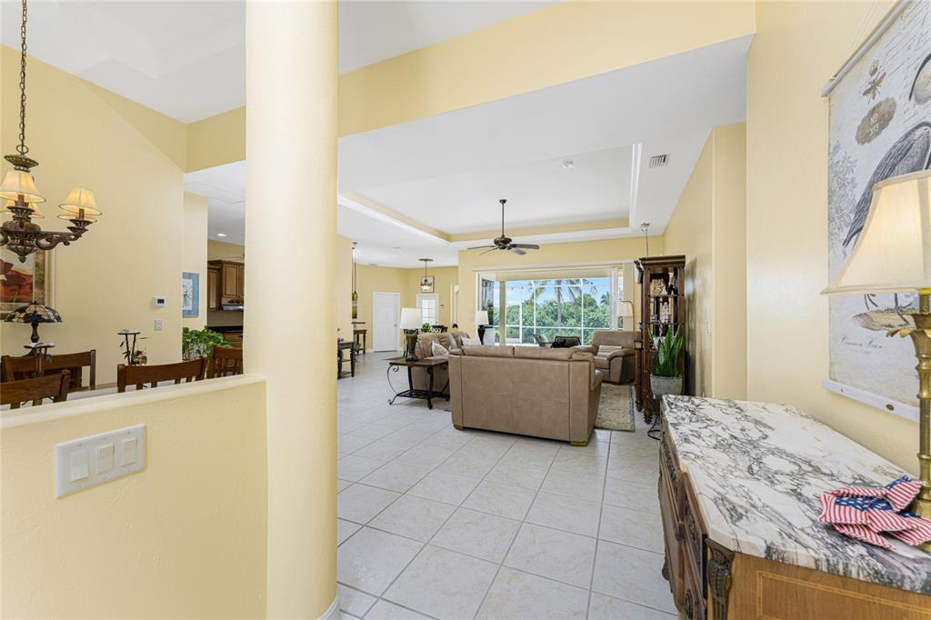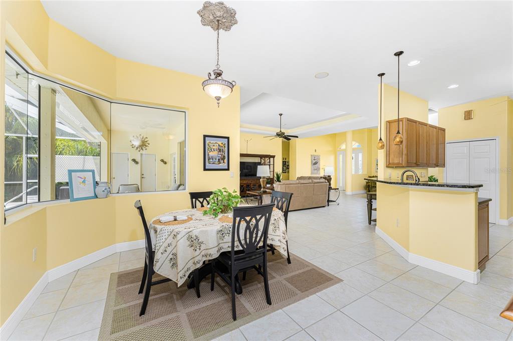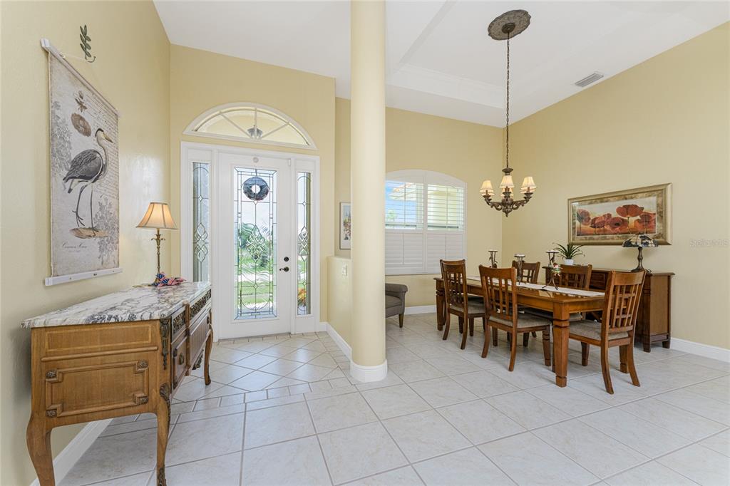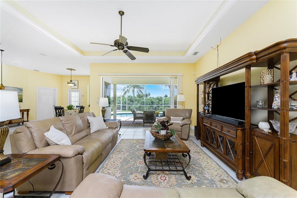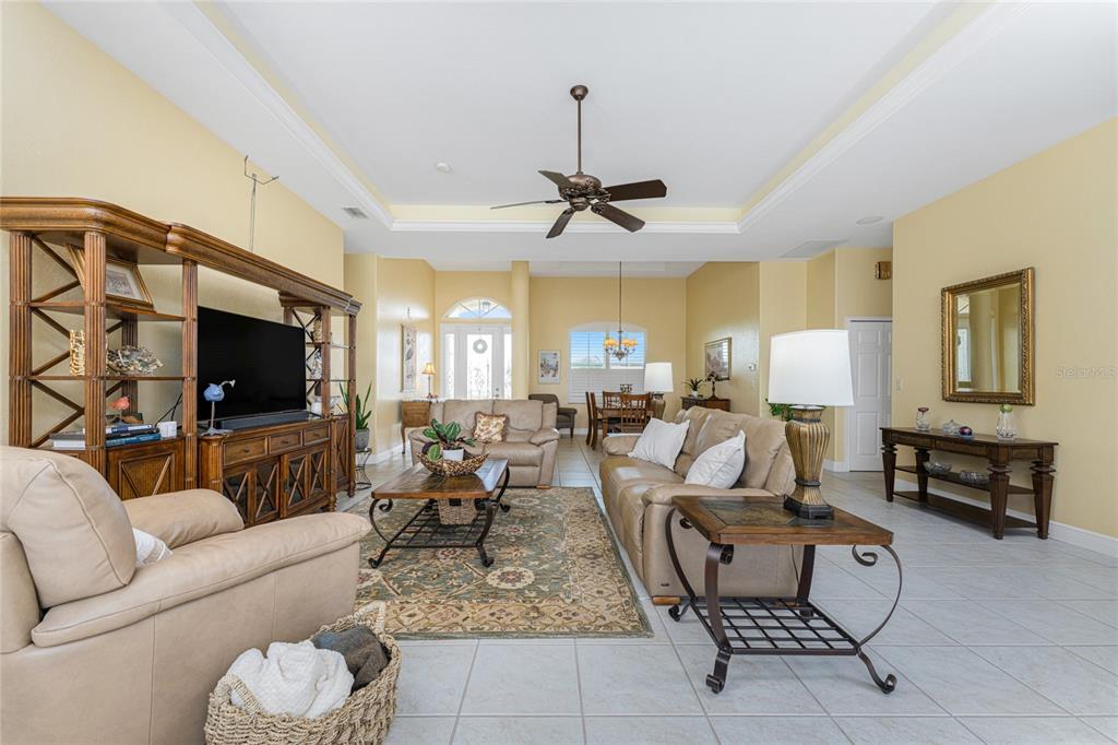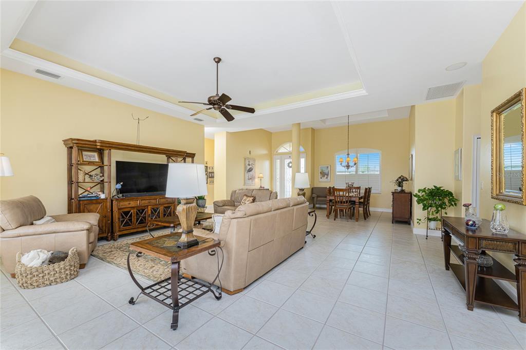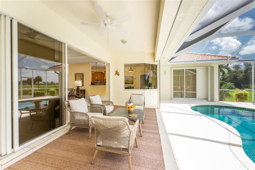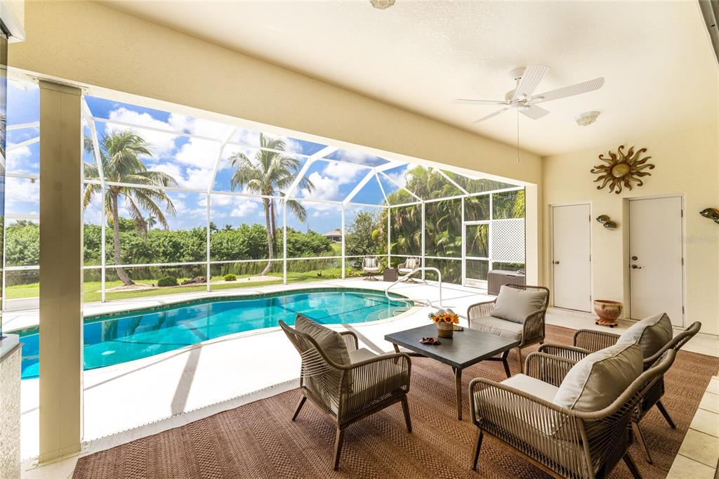 Impressive 3 bedroom, 2.5 bathroom pool home with attached 3 car garage located on the twin isles golf course in desirable deed restricted burnt store isles. partial golf course views of the third green and large golf course pond in the rear of the house. view of the 10th fairway from the front of the house. this light and bright home offers an open and split bedroom floor plan with foyer, great room, separate dining room, well appointed kitchen, inside laundry room. the spacious great room features tile flooring, high tray ceiling, pocket sliding glass doors to the lanai. the dining room has a high tray ceiling, tile flooring and large window with plantation shutters. the kitchen features staggered height wood cabinets with crown molding, granite counters, breakfast bar, closet pantry, instant hot water faucet,good counter and cabinet space. the appliances are stainless: built in microwave, built in oven, cooktop with hood, french door refrigerator. the dining area overlooks the pool through aquarium glass and has a door to the lanai. there is an inside laundry room with washer, dryer, laundry tub and cabinets. the spacious master bedroom suite features a tray ceiling, sliding glass doors to the lanai, two walk in closets and private bathroom with dual sinks, white cabinets, granite counters, jetted tub and walk in shower. there are two additional generous sized guest bedrooms. one bedroom has double built in closet, french doors to the lanai and half bath which is also a pool bath. the other guest bedroom has a double built in closet and is currently used as a den. the guest bathroom has white cabinetry, solid surface counters and a walk in shower. your living space extends to the screened lanai with heated saltwater inground pool, covered area and plenty of deck for sunbathing. trees offer lots of privacy. other features include: transom window over the front door, plantation shutters, tile flooring in the living areas, carpet in the bedrooms, high ceilings, hurricane shutters including an electric shutter for the front door, impact windows on the front of the house, new pool pump. ***new tile roof 2021*** new a/c 2020*** some furniture is negotiable - owners will provide list. hoa is optional. utilities are city sewer and water. ***no flooding or damage from hurricanes*** this home is one block from the entrance to twin isles country club and 5 minutes to historic downtown punta gorda shopping, dining, medical care, waterfront parks, boat ramps, fishing piers, walking and biking paths, art galleries, weekend farmers markets, charlotte harbor event center, fishermen's village, events and more! this beautiful home is perfect for entertaining and is your florida dream home. don't miss this exceptional home in a fantastic community.325 MADRID, PUNTA GORDA, FL 33950