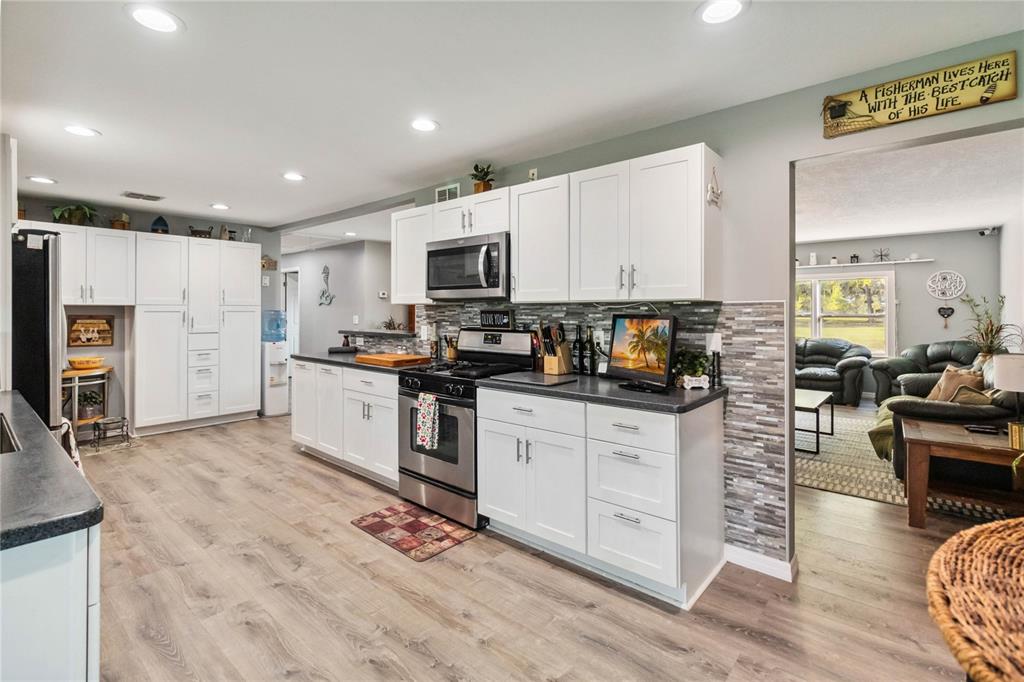 Come see this one in person… discover the perfect 4 bedroom 3 bath retreat with this exclusive property featuring a very private driveway leading up to your dream home, set on 3 acres of sprawling cleared property. the expansive land includes 2 convenient metal buildings with 2,700sq ft of storage and space, more than enough to store that rv and boat, making your outdoor adventures effortless. imagine your backyard filled with an abundance of fruit trees, including white & strawberry guava trees, mango, lemon, and cherry trees, with plenty of room to plant even more! your screened-in back porch is huge, comes equipped with the tiki bar, and has ample room to add even more seating for large gatherings. inside, the home boasts modern laminate flooring throughout, showcasing stylish new kitchen cabinets and beautifully remodeled bathrooms that elevate your living experience. for those who love to cook, imagine yourself in a kitchen equipped for culinary creativity with gas cooking facilities! now is your opportunity to have that gas stove in your very own kitchen! don't miss the chance to make this incredible property your own!3260 OSCEOLA, ST CLOUD, FL 34772