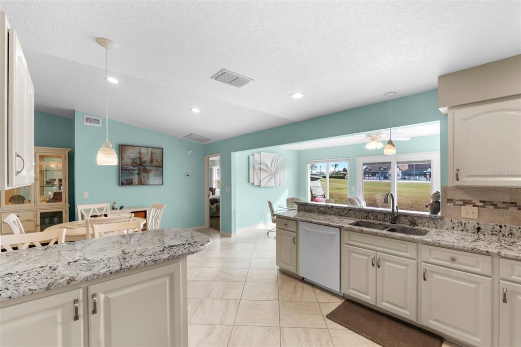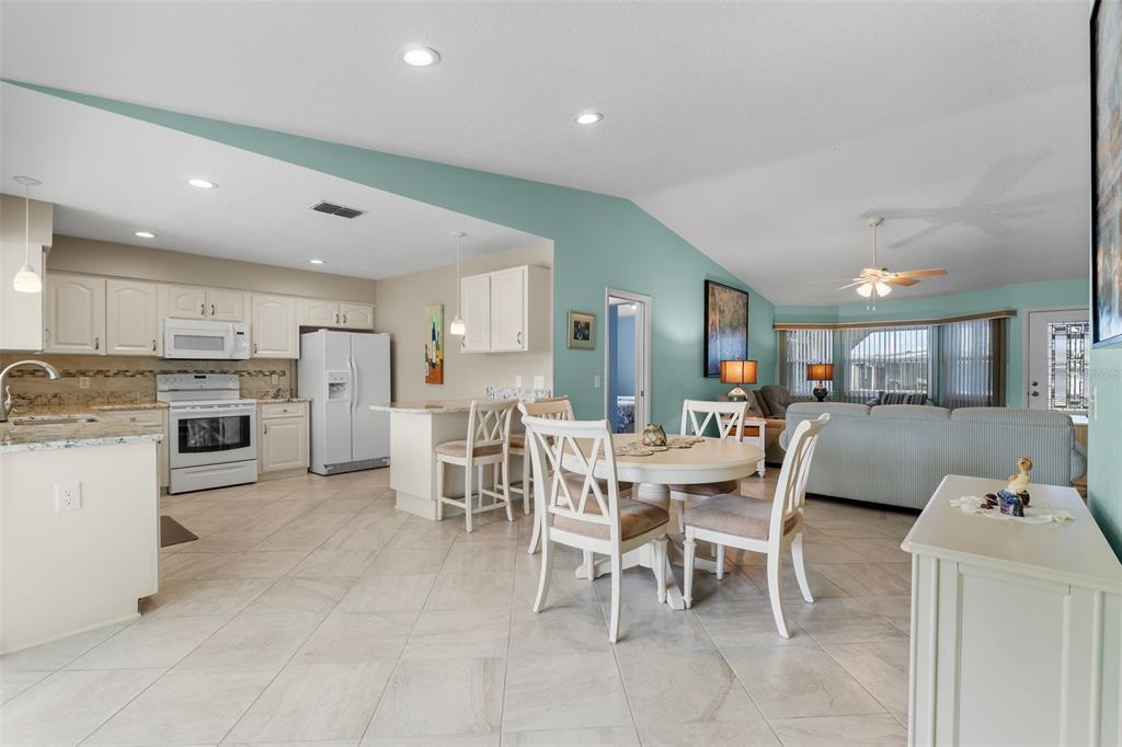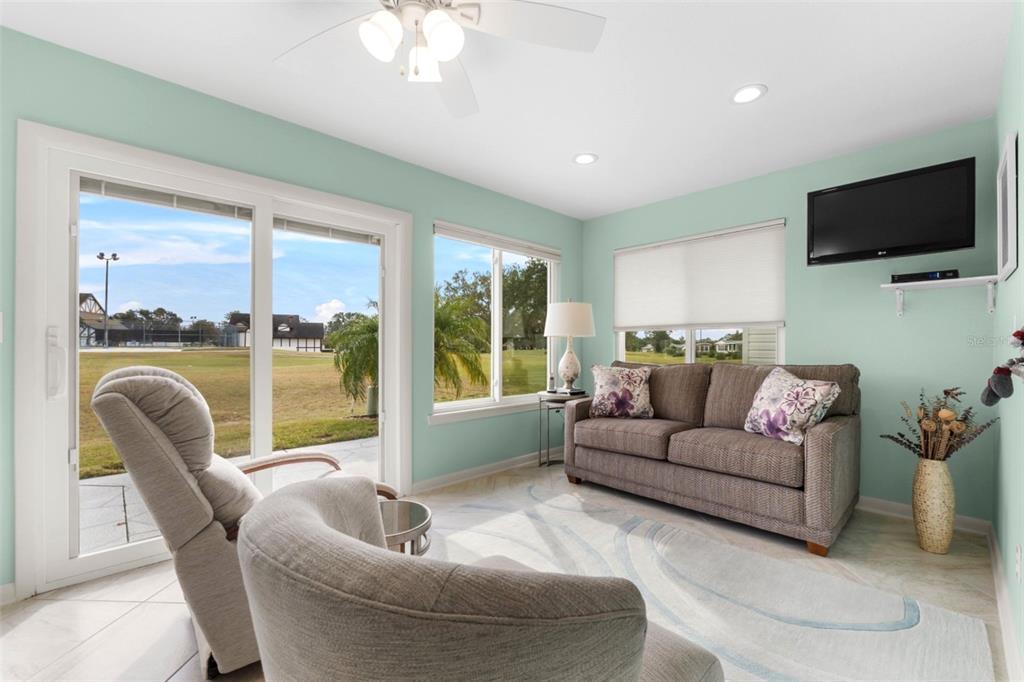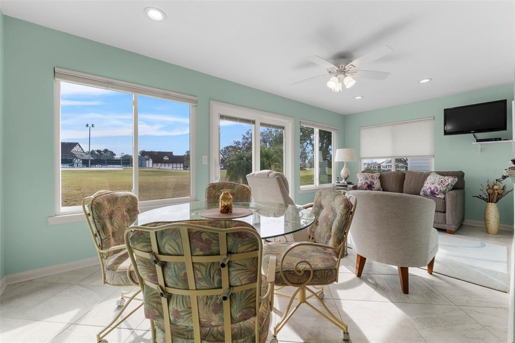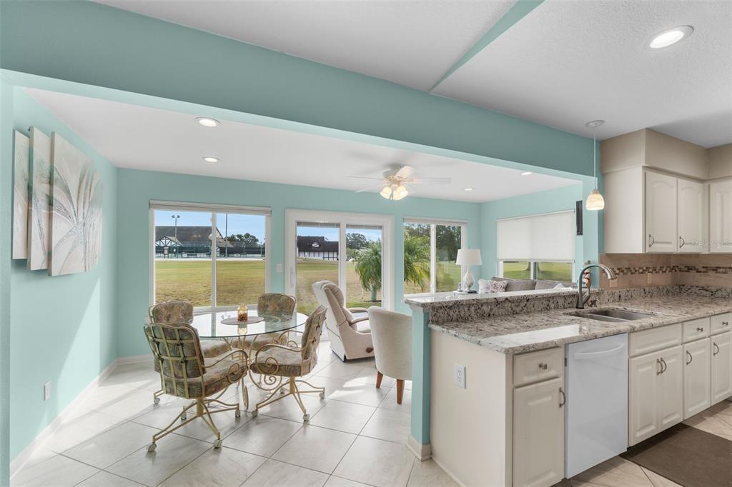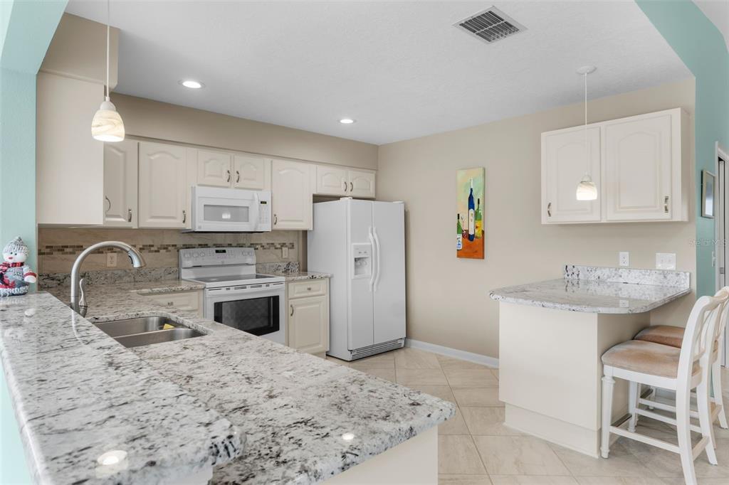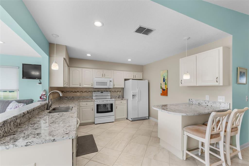 Discover this beautifully updated 2-bedroom, 2-bath home located on the 18th hole of the highland fairways golf course. with incredible views of the clubhouse and amenities, this home offers a serene lifestyle in a prime location. the updated modern ceramic tile flooring enhances the main living areas with a clean and polished look throughout. you’ll enjoy cooking in the remodeled kitchen designed with neutral tones and gleaming granite counters, tiled backsplash and updated appliances. there’s even a quaint breakfast bar for meals on the fly! the elegant master bath offers a spa-like experience with an over-sized custom step-in shower with glass doors, his and her sinks and granite countertops. the guest bath also features a granite counter and an updated step-in shower. the guest bedroom is highlighted by a bay window with loads of charm. the florida room located at the rear of the home is open to the kitchen and dining, creating a perfect entertaining or relaxing area with full views of the golf course and clubhouse. this home combines modern style and functionality, with furniture available for purchase for added convenience. the low monthly hoa fee covers spectrum cable tv, internet, wifi, use of all the amenities and lawn service. start living the florida dream today!3273 PEBBLE BND, LAKELAND, FL 33810