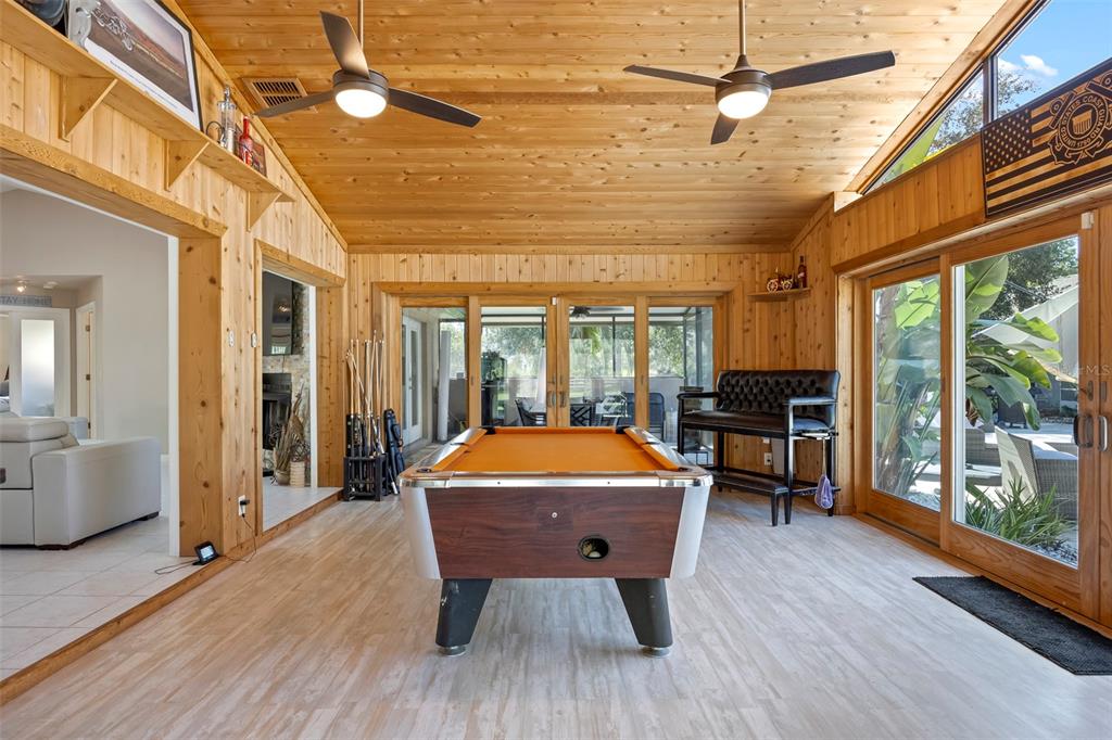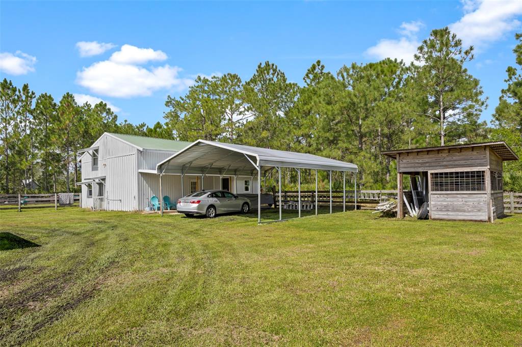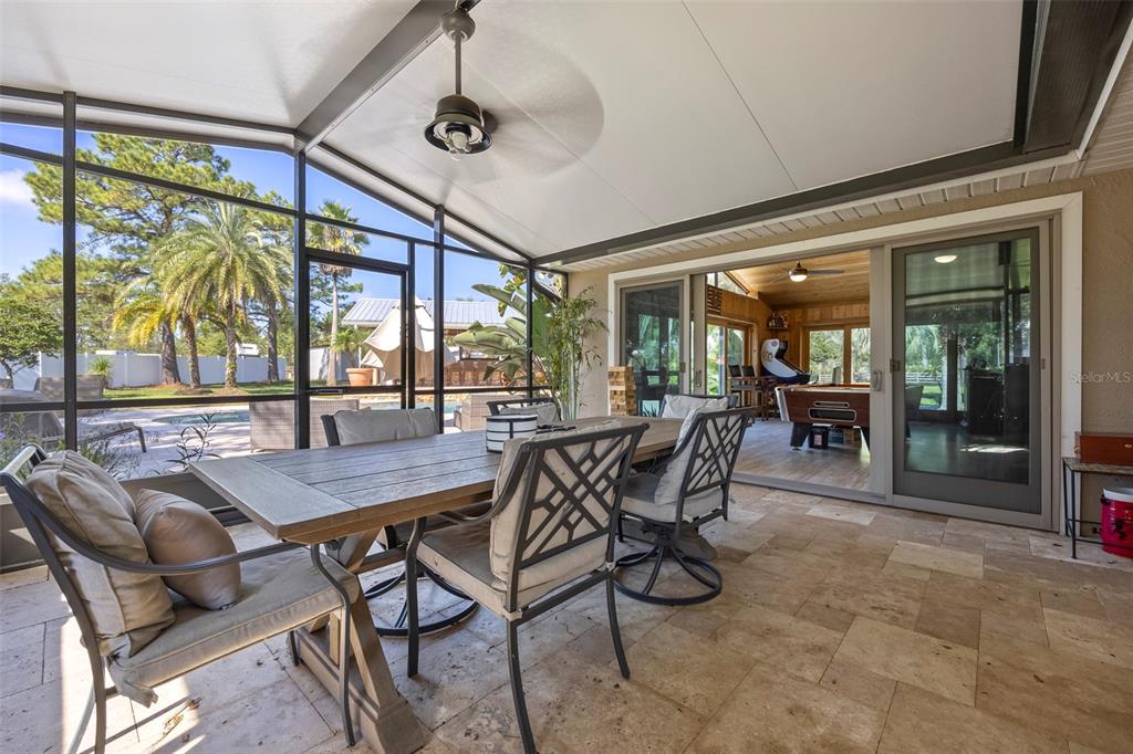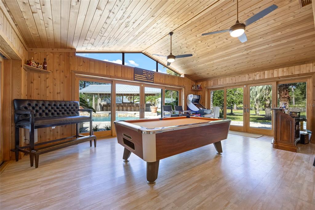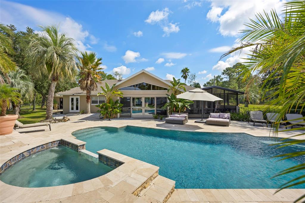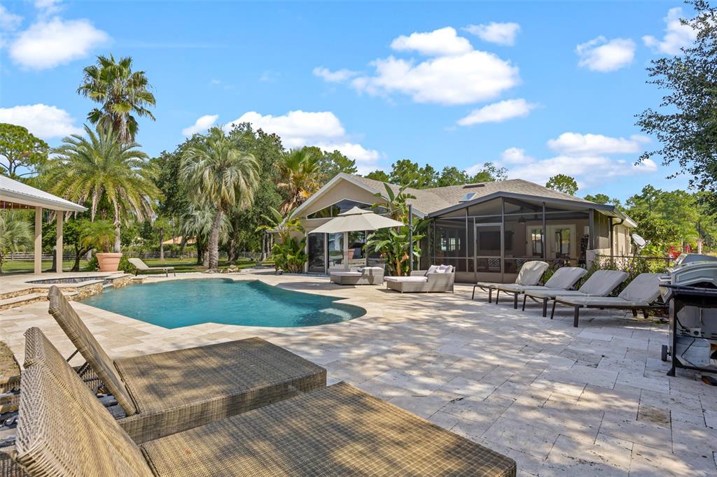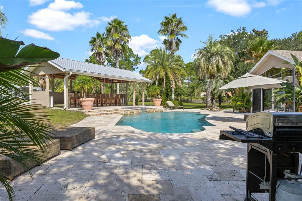 Take a look at this retired equestrian property that has been transformed into a family compound or investment opportunity. there are three homes situated on over 5 acres of land, providing plenty of space for all your equipment and toys. the main home is a 3-bedroom, 2-bathroom property with a newly remodeled kitchen, updated bathrooms, and french doors in every room. additionally, there is a detached mother-in-law suite that features 1 bedroom and 1.5 bathrooms, along with its own 2-car carport. the third home is a two-story apartment-style property with 3 bedrooms and 1 bathroom, and it comes with a 4-car carport. each home has its own living room, kitchen, and washer and dryer appliances. you can take a leisurely stroll around the lake, which is adorned with mature palm trees and updated landscape lighting. the main home also includes a 6-car garage with a drive-thru bay. in the heart of the 5-acre property, there is a captivating saltwater pool and spa outdoor oasis with beautiful travertine flooring. the pool area is equipped with a 10-seat fully operational bar, commercial 3-bay sink, speed bar, full liquor display, and ice chest. the electrical and plumbing are already set up. additionally, the property is conveniently located just two miles from the st. john river.32840 PONDEROSA, DELAND, FL 32720