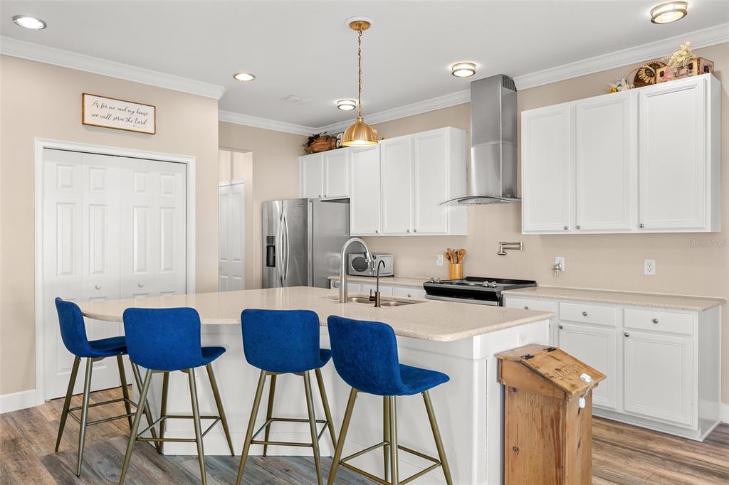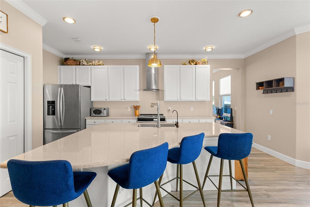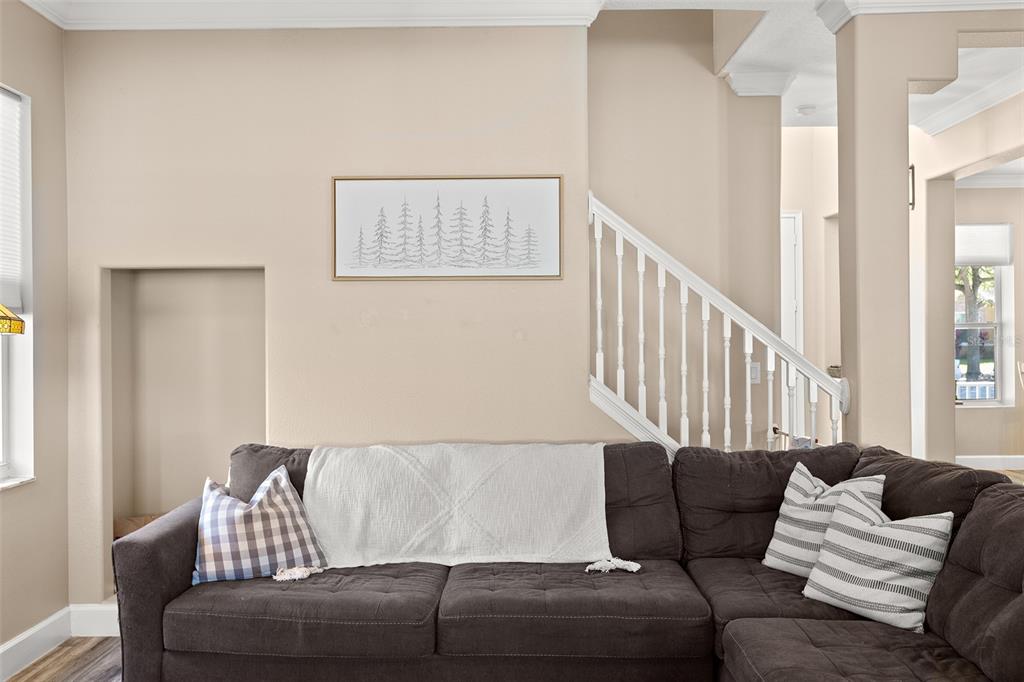 Walk-In Closet(s) Eating Space In Kitchen High Ceilings Stone Counters Window Treatments Solid Surface Counters Solid Wood CabinetsCrown Molding Kitchen/Family Room Combo PrimaryBedroom UpstairsExterior Features: