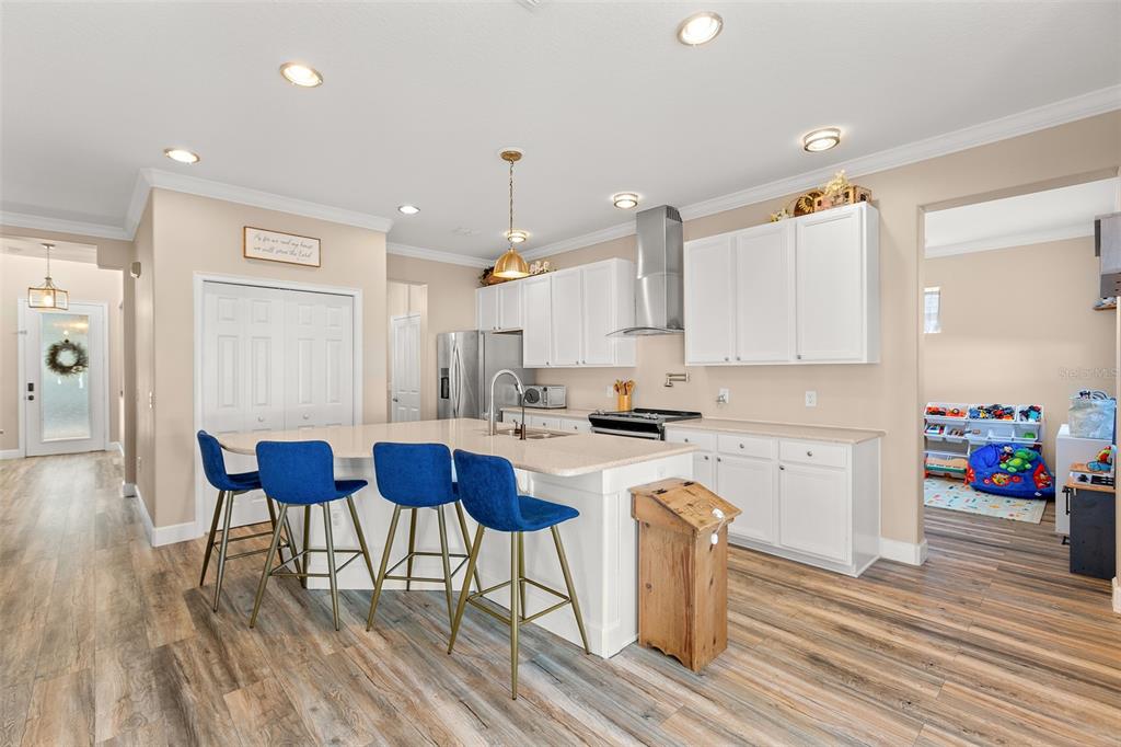 Wow look no more! this gorgeous 4 bedroom 2.5 bath 2 car garage home located in harmony on cat brier trail is a must see! you will fall in love with your oversized covered front porch with 3 newer fans and porch light installed. this home sits on a large lot with plenty of yard space in the back and on both sides of the breezeway for playing and outdoor fun! the home has luxury vinyl flooring installed throughout both the ground floor as well as the second floor. the bathrooms are tiled. all bedrooms are located upstairs. your first floor has a formal dining room, living room, family room, half bathroom, a large flex space off the kitchen that can be used as a bonus room/ play room, eating area and spacious kitchen. there is even an oversized downstairs bonus room. this home has lots of natural light and there’s plenty of room for everyone to enjoy one another and enjoy some privacy. your spacious kitchen has quartz countertops, and is equipped with an island plus lots of cabinets with pulls and stainless steel appliances. walking up the stairs there is a scenic landing with a window seat that is idyllic. the owner’s suite has updated vanity with pulls, granite countertops, newer sinks and faucets, jacuzzi tub and shower with a separate private commode. both your tub and shower have been retiled and shower has a new dual rain shower head and handle (2023). your upstairs hall bath has dual sinks with pulls, updated vanity lights, updated shower and floor tiles and a new shower head. the laundry closet is quite spacious and upstairs for convenience. the 2 car garage has alley access with a breezeway to the house with a new garage door (march 2022). new roof (2024). fenced in backyard (privacy fence 2023) with 3 gates. new irrigation system/sprinklers and setup (2024). the upstairs hvac unit is newer (october 2020 and handler 2021), downstairs hvac updated (april 2014 and handler july 2014). hvac and all vents, return, ducts, handlers cleaned (2023). screened-in back lanai and fan (2023) with freshly painted lanai floor (2024). newer hot water heater (march 2022). hook up location on the side of the house with concrete slab for a water softener and filtration system (2023). venetian window treatments (2023). new gutters with downspouts and leaf guards (2023). new exterior and interior lighting installed (2023). security cameras installed (2023). keyless lock pads on front, back, and door to garage (2023). fresh paint on the breezeway walkway (2024). this home is in close proximity to the lake amenities, sports fields, splash pad, and playgrounds! when you live in harmony, there are many amenities for you to enjoy including buck lake, community- owned boats, fishing pier, rocking chairs, bench swing, walking trails, dog parks, playgrounds, sand volleyball court, basketball courts, ping pong table, 2 community pools and a beautiful harmony preserve golf course. top rated schools- harmony community k-5, harmony middle school and harmony high.3308 CAT BRIER, HARMONY, FL 34773