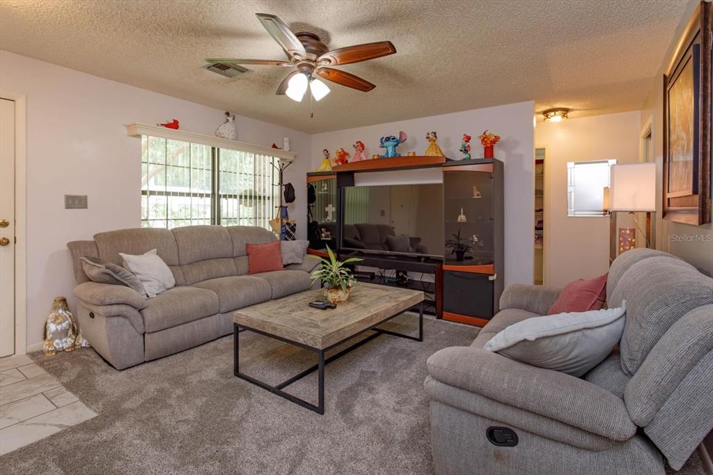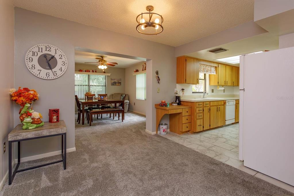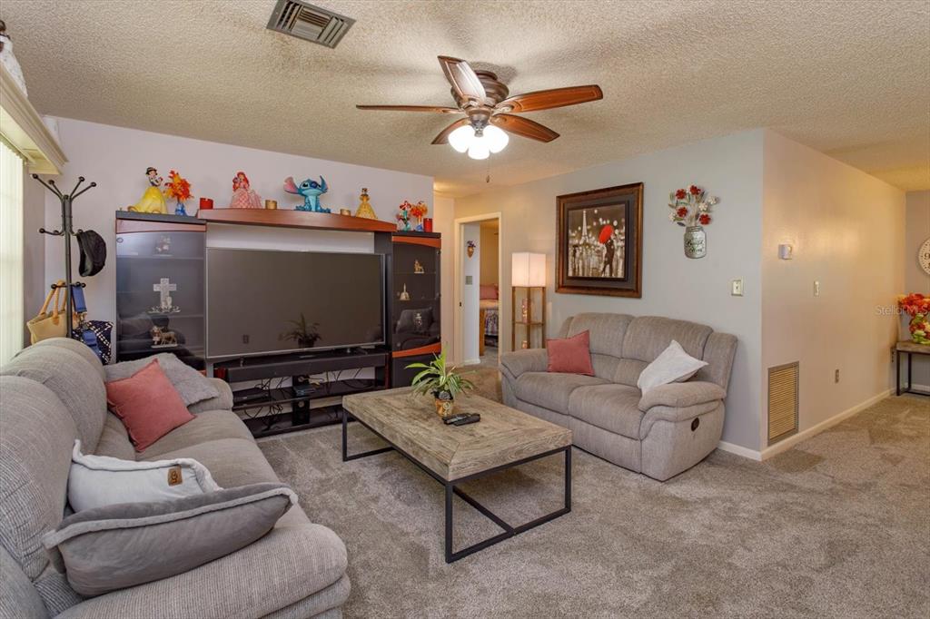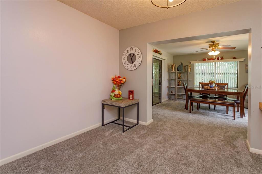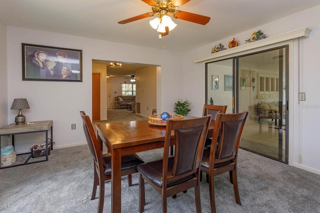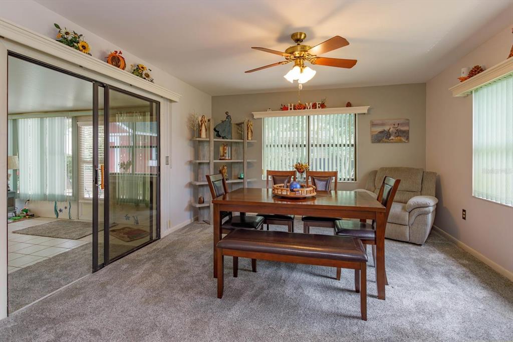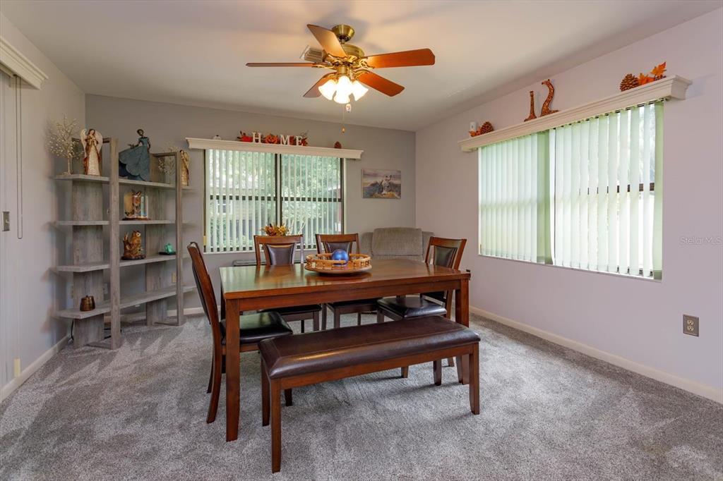 ** optional third bedroom**beautiful 2-bedroom, 2 bathroom move-in ready home located in a friendly established neighborhood. spacious living space including living room, eat in kitchen and bonus area that can be used as a dining room, office, or can easily be made into a third bedroom. freshly painted interior with brand new carpet includes upgraded padding throughout home. custom window valences with vertical blinds. updated modern ceiling lights (foyer, hallway, kitchen nook area) and ceiling fans throughout. the master bedroom features a spacious walk-in closet and a private en-suite with dual sinks and a tub/shower combo. the second bedroom is oversized with a large closet. relax in the cozy enclosed florida room and enjoy the spectacular views of the fenced in back yard that features well maintained landscaping and a large barn for storage with power. the two-car garage boasts epoxy flooring and double-sided screen doors to let in fresh breezes. gas stove. ring doorbell. washer and dryer included convenient to shopping, chain of lakes, parks, and shopping331 DOUGLAS, EUSTIS, FL 32726