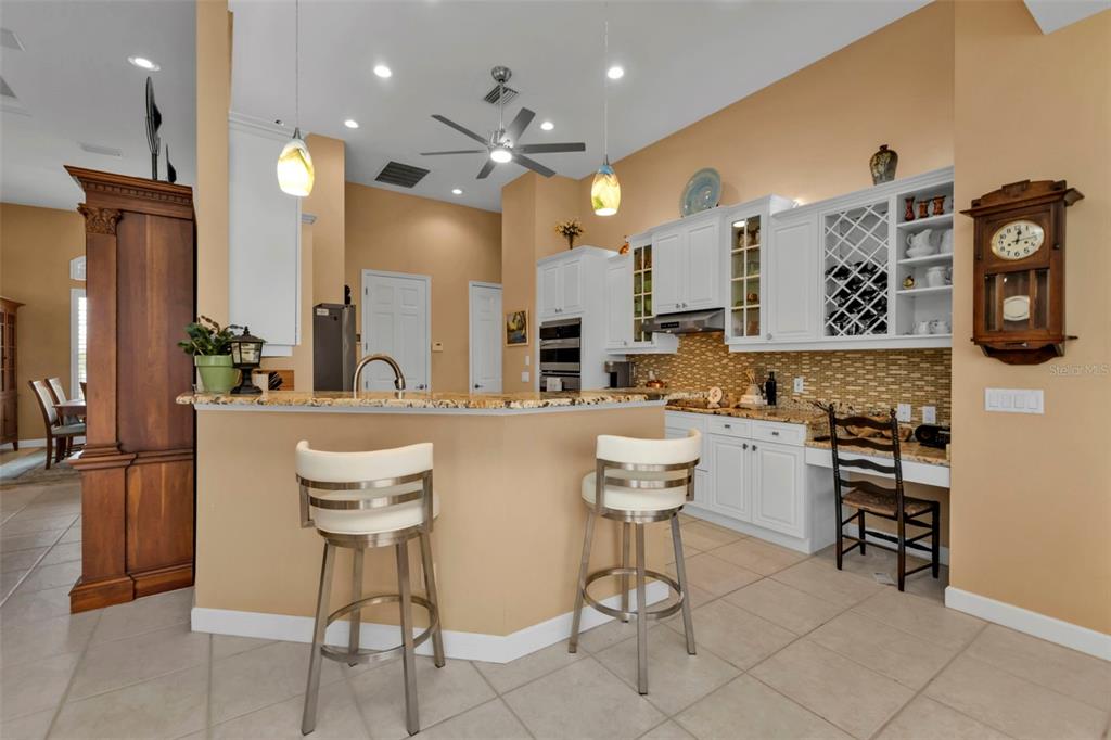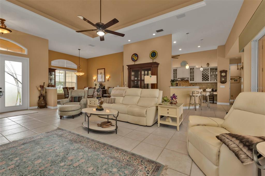 Split Bedroom Walk-In Closet(s)Ceiling Fan(s) Eating Space In Kitchen High Ceilings Stone Counters Thermostat Open Floorplan Window Treatments Solid Wood CabinetsCrown Molding Coffered Ceiling(s)Exterior Features:
