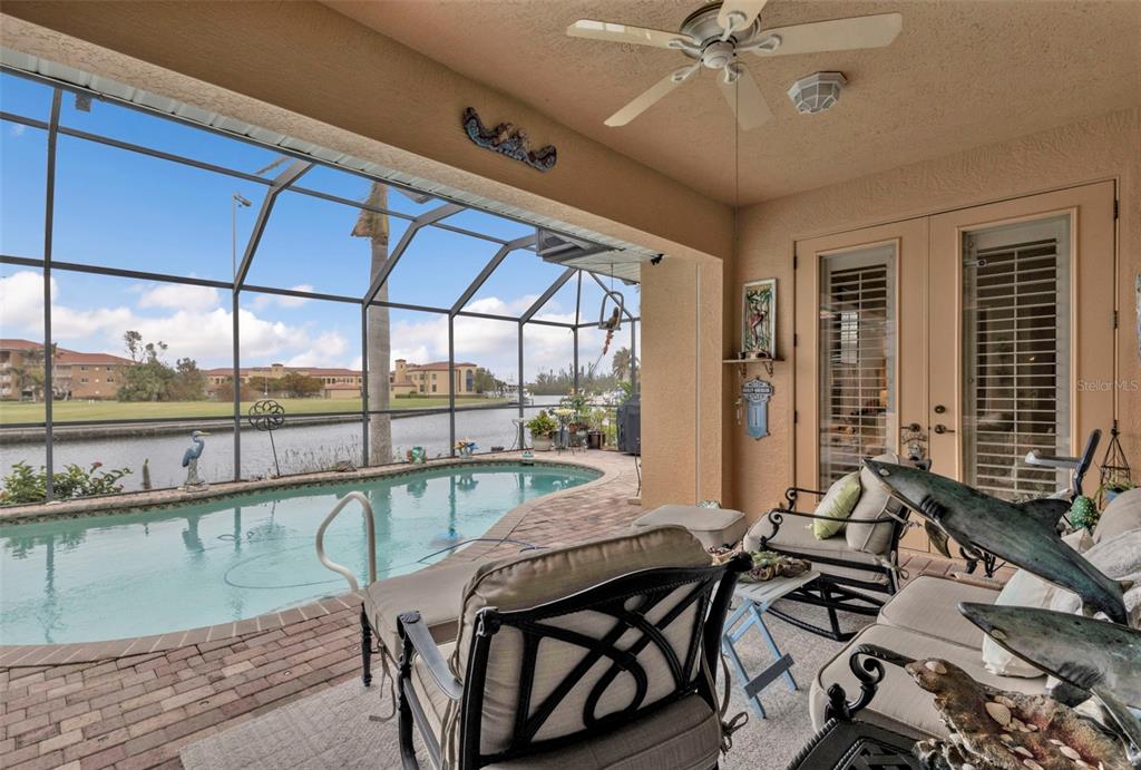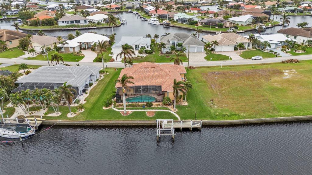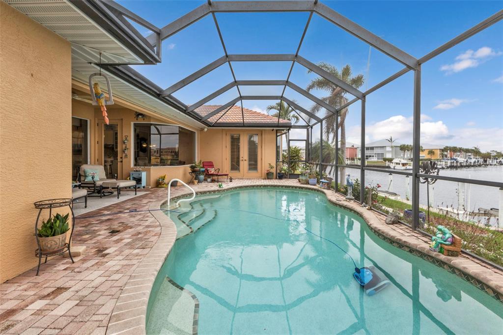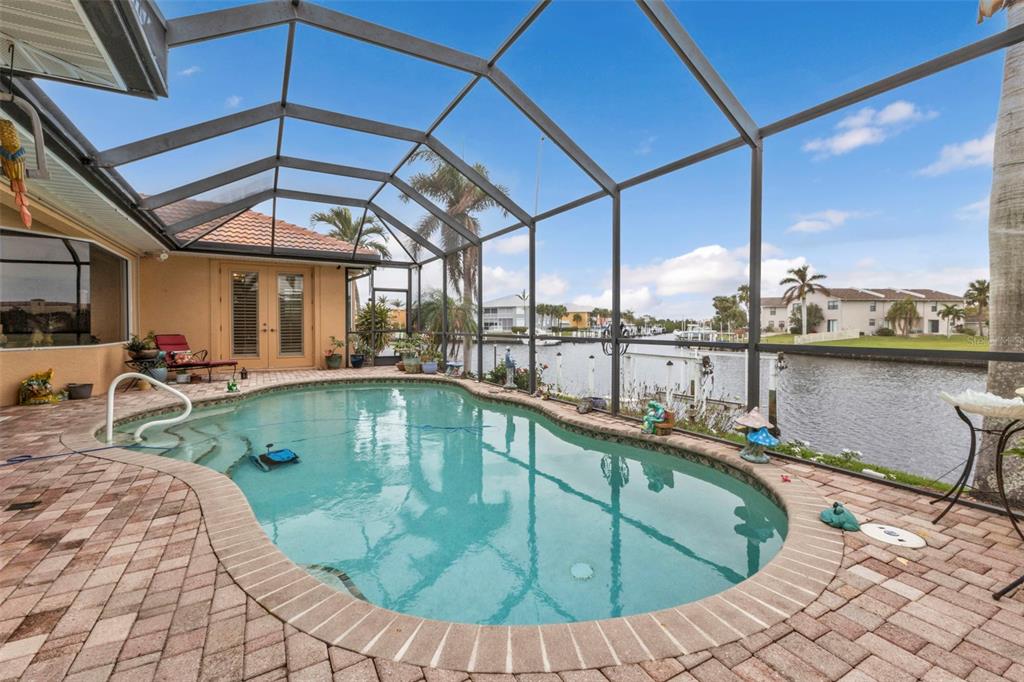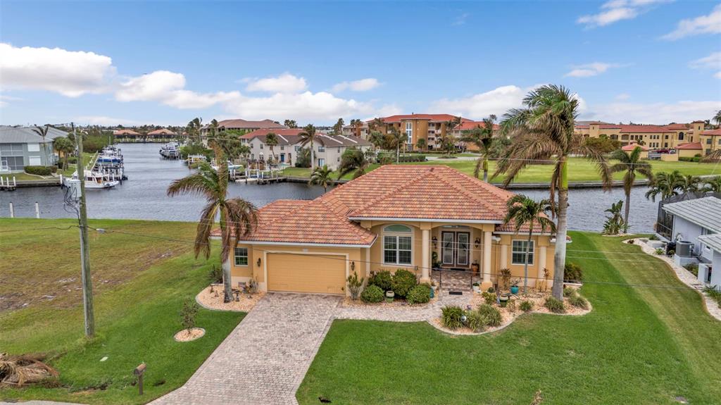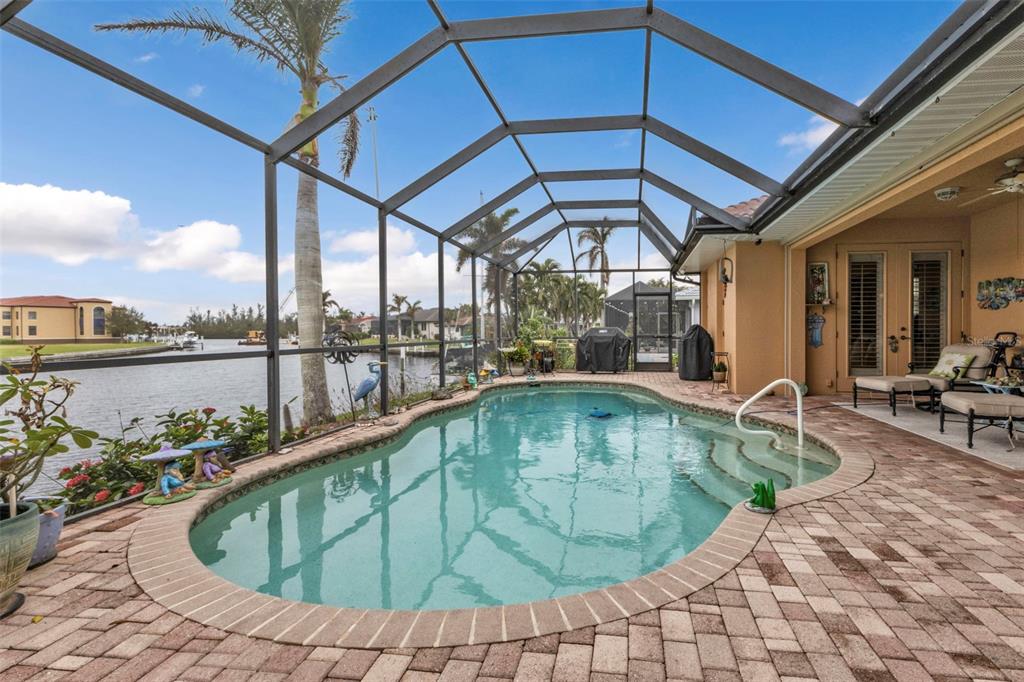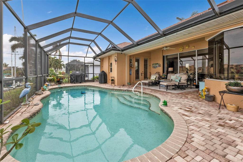 Nestled in the heart of the exclusive waterfront community of punta gorda isles, this exquisite residence captures the essence of luxurious coastal living. built in 2003 by the esteemed west coast builders, this home greets you with a meticulously designed paver driveway and a welcoming front walk. step inside through the stunning new double glass doors, and let the airy ambiance embrace you. the open floor plan with soaring 13-foot ceilings and an expansive stone fireplace wall, complete with large flat-screen tv, sets the stage for both relaxation and entertainment. the kitchen is a chef’s dream, boasting sleek granite countertops, premium stainless steel appliances from lg and kenmore elite, and a layout that makes cooking a joy. every door in the home is crafted from solid core wood, standing at an impressive 8 feet tall, lending an air of quality and sophistication. plus, the home’s man-a-block plumbing system and generator-wired electrical panel provide peace of mind, offering both functionality and resilience. the air-conditioned garage, with its epoxy-coated floor, workshop space, and overhead storage, is perfect for hobbyists and organizers alike. designed for the ultimate florida lifestyle, the outdoor amenities are unmatched: a sparkling pool with new variable-speed pump, heat pump, and saltwater system are complemented by updated double-pane low-e windows, kevlar hurricane panels, and a full suite of security alarm and cameras for worry-free living. at the water’s edge, a 30’ concrete dock with a 10,000-lb boat lift and direct canal access invites you to explore the open waters of charlotte harbor and the gulf of mexico. be to open water in approximately 20 minutes by way of buckley's pass! with its new landscaping, soffits, lighting, and roof, every corner of this home has been thoughtfully refreshed and upgraded. per owner - this house has never flooded since being built. - don’t miss this rare opportunity to experience a lifestyle where elegance meets the water’s edge.3322 SANDPIPER, PUNTA GORDA, FL 33950
