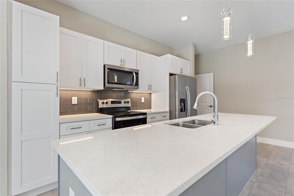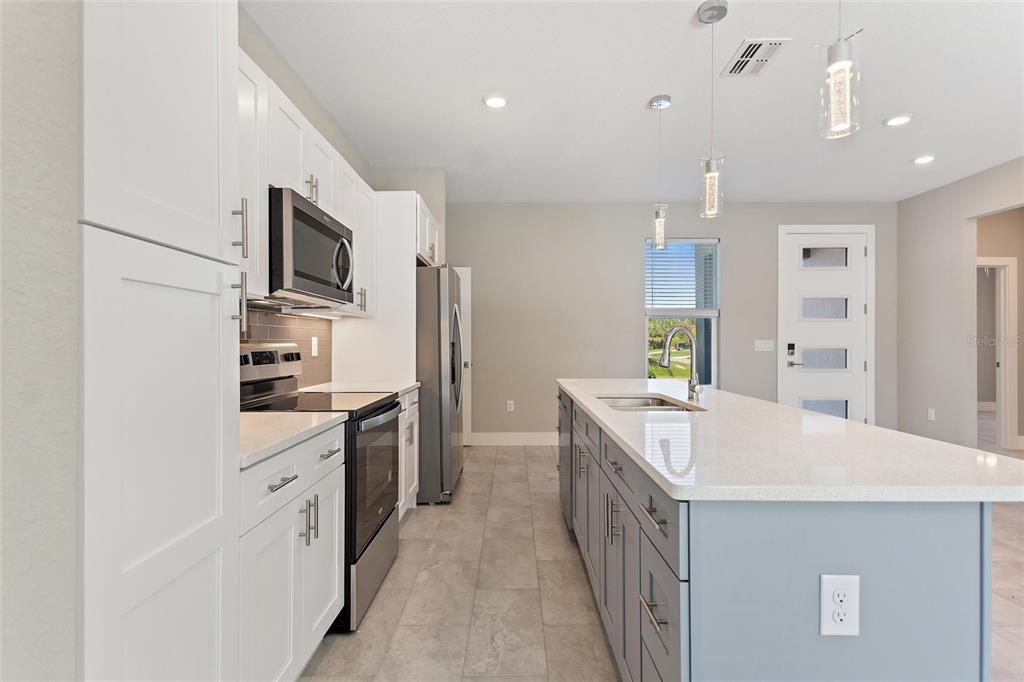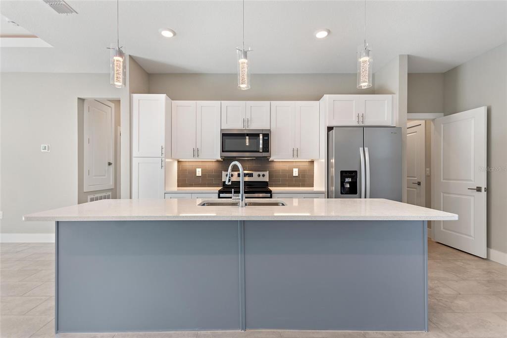 Under construction. welcome to the epitome of modern living in our stunning 1717 model! we invite you to experience unparalleled sophistication from the moment you step through the impressive 8 ft front door. revel in the seamless flow of this open-concept, split bedroom floor plan. indulge your culinary senses in the kitchen, where quartz countertops with topped with a flawless glass backsplash cover the solid wood cabinets with soft-close doors and drawers. the expansive, two-toned gray island steals the spotlight, complemented by designer led pendant lights and under cabinet lighting that add an extra layer of sophistication. a full stainless steel appliance package and ample counter space make this kitchen a haven for culinary enthusiasts. get ready to be captivated by the master suite, featuring a spacious bedroom with an inviting led-illuminated tray ceiling, a walk-in shower, and a double vanity with quartz countertops. every detail in this home exudes luxury, with all the extras already included. no need to worry about upgrades – they're all here, sparing you the hassle and cost. showings are available by appointment only, ensuring a personalized experience. contact our call center today to schedule your private tour. please note that the photos provided are for illustrative purposes, offering a glimpse into the exemplary finishes and floor plan of this remarkable home. your dream home awaits – make it yours! (photos may not be exact - only an example of finishes and floor plan)3327 TRAPPER, NORTH PORT, FL 34286
