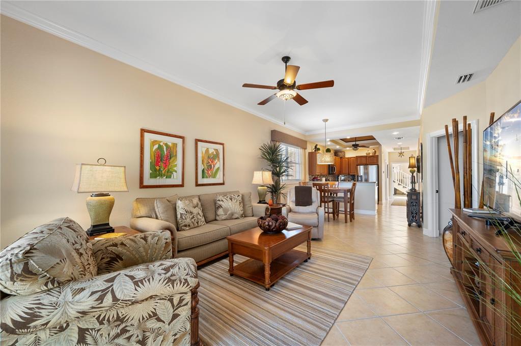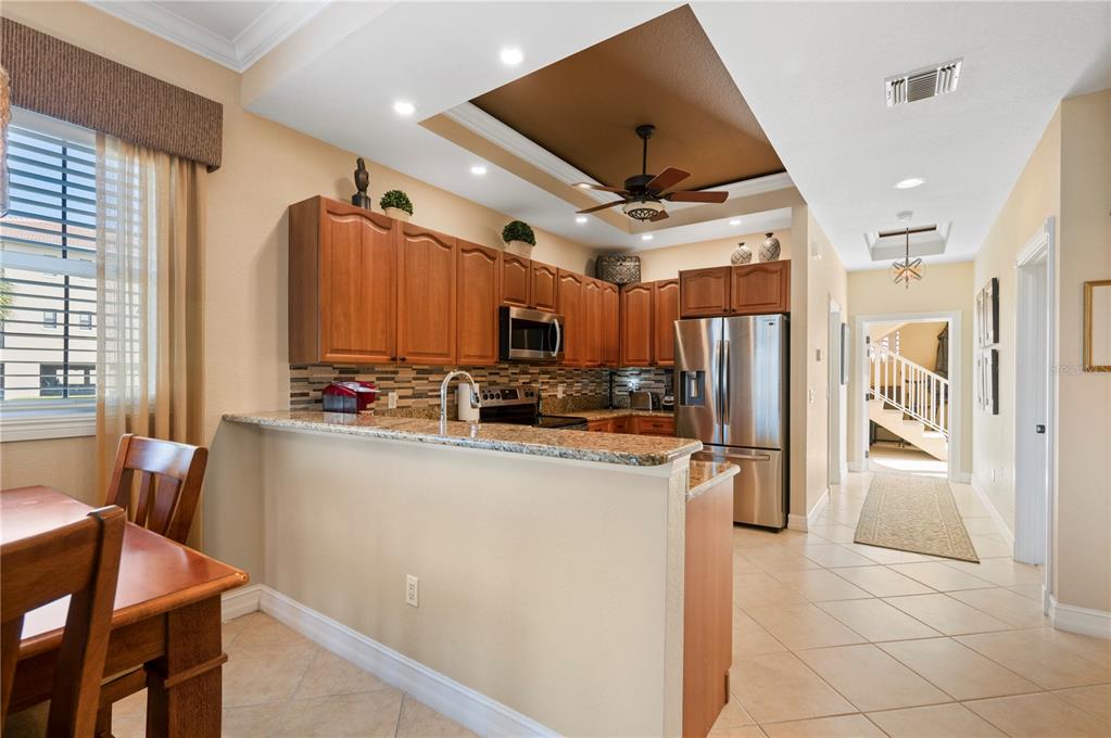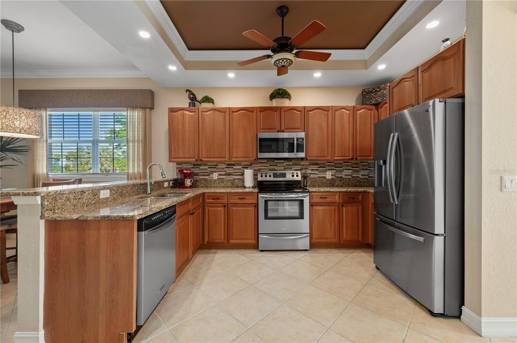 Built-in Features Walk-In Closet(s)Ceiling Fan(s) Eating Space In Kitchen High Ceilings Stone Counters Open Floorplan Window Treatments Solid Wood CabinetsCrown Molding Kitchen/Family Room Combo Tray Ceiling(s)Accessibility FeaturesExterior Features: