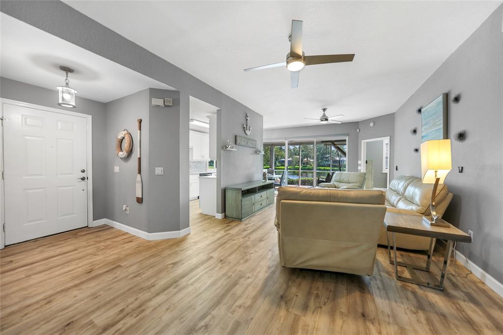 Amenities galore! welcome to the highly sought after community of grand vista at riverwood. this quaint 2-bedroom 2-bathroom end unit boasts a breath-taking sunrise lake-view right from your back porch and plenty of natural light and has an extra bonus room that could be used as a 3rd bedroom, den or office. first floor unit with a spacious 2 car garage and a master closet that will be sure to make you say wow! the property has been fully updated from top to bottom in 2020 with not a penny spared and is move in ready. the kitchen has been updated with high-quality marble countertops with a matching tile backsplash, new stainless-steel appliances and soft close cabinets. the home has been outfitted with 2020 vinyl flooring, 2020 fans, 2020 light fixtures and 2020 plantation shutters. new 2024 roof has recently been installed which was covered by the association assessment free for this unit. new 2023 garage door. the primary bedroom features plenty of space for a king size bed. the primary bathroom features an updated granite double-sink vanity, walk-in shower and tub and an absoloutly enormous closet. the property features a split floorplan with a 2nd bedroom on the other side of the home beside the bonus room/den/office that could easily be converted into a 3rd bedroom as well as an interior laundry room with extra cabinet space off of the 2 car garage. the back porch features a very cute swing to enjoy the lake view and has electric hurricane shutters installed for extra protection. total monthly fee includes maintenance of the building's exterior and repairs, insurance that includes liablity and flood coverage, lawn care & landscaping, pest control, irrigation, water, trash, sewer, gated security, community pool and more. grand vista at riverwood features a clubhouse, two community pools, tennis & pickleball courts, bocce ball, a croquet field as well as a fitness center, library, arts and crafts room and all types of scheduled events and activities. riverwood itself features 48 lakes and 71 natural preserves. ask about becoming a member of riverwood golf club & riverwood beach club. riverwood is just a short drive to boca grande & manasota key beach and is right up the road from grocery stores, shopping, medical offices, and much more. schedule a showing today to see how resort style living feels.3332 GRAND VISTA #101, PORT CHARLOTTE, FL 33953