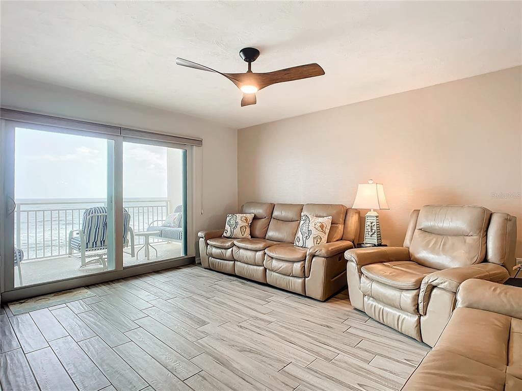 Direct ocean front 2 br 2bth offered in the sought after grand coquina. live the beach front lifestyle in this updated totally furnished condominium/home. kitchen features mermaid glass backsplash, sand and sea quartz countertops, stainless steel appliances, deep double kitchen sink, glass cooktop with stainless hood, double ovens (one convection), and breakfast bar. find comfort in the ocean front living room with leather adjustable and reclining loveseat, couch, and chair with usb ports. ocean front primary suite has a dressing area and walk-in closet with a separate locked owners' closet. luxuriating primary ensuite bath has separate double sinks with backlit mirrors, quartz countertops, free-standing large soaking tub, large corner glass-walled shower with handheld and rain shower head. genius idea - hose bib under bathroom sink fabulous for sliding glass door hose cleaning. versatile guest bedroom has adjustable queen bed and queen murphy bed. in-unit laundry with stainless front-loading washer and dryer. driftwood porcelain plank flooring. hurricane code sliding glass doors with hurricane shutters. furnishings include tvs, kitchenware, linens.... just bring your suitcase. this all-direct ocean front building has been known for years for its generous amenities including: indoor heated pool and jacuzzi, his/her steam rooms, penthouse clubhouse, 2 exercise rooms, library, 3 story parking garage, car wash area, and art room. the grand coquina is now proud to announce their approved plans for their outdoor resort-style living. coming soon are the new amenities of an outdoor kitchen with grilling stations and outdoor dining area, oceanfront fire pits, extended decking, swimming pool, spa, and trellis coverings. 2-week minimal rental. 2 pets per unit up to 30 pounds each. fully sprinklered building, has completed sirs inspections and reserve study.3333 S ATLANTIC #605, DAYTONA BEACH SHORES, FL 32118
