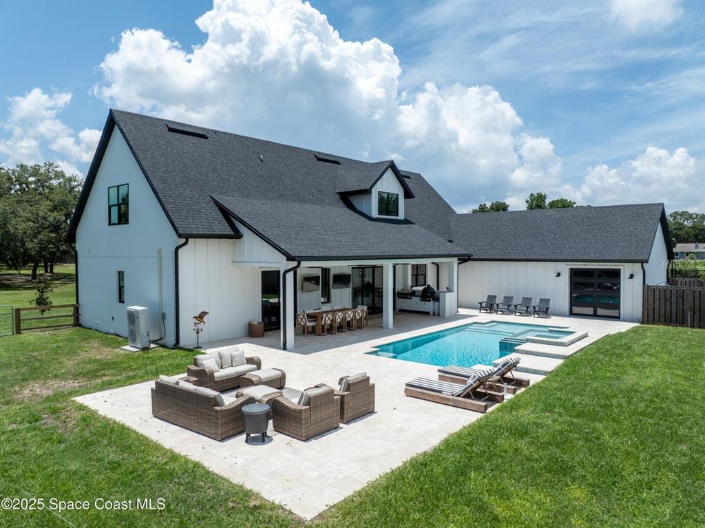 Modern farmhouse on 7 private acres with lake & pool* rare opportunity to own a custom-built modern farmhouse on nearly 7 secluded, dry acres in the heart of merritt island. this 6-bed, 3-bath home features nearly 3,800 sq ft of stylish, functional living space—including an office, gym, and chef's kitchen with quartz waterfall island, ge café appliances, and custom cabinetry. enjoy a private 1.3-acre lake, heated pool & spa, outdoor kitchen, impact windows, propane fireplace, and a ¼-mile private driveway. zoned for top-rated schools and just minutes to beaches, shopping, and the space center. room for horses, barn, or simply to relax in total serenity. truly one-of-a-kind—schedule your private tour today!3334 N TROPICAL, MERRITT ISLAND, FL 32953