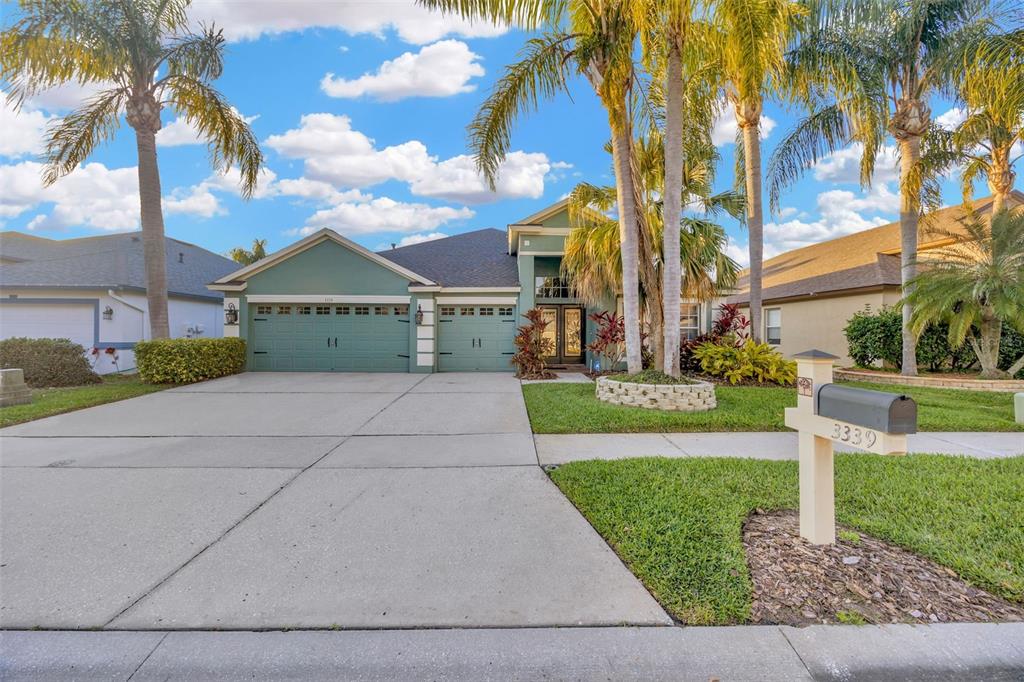 One or more photo(s) has been virtually staged. stunning oakstead residence in pristine condition meticulously maintained by the original owners. four bedrooms, 3 full baths, 3 car garage and bonus room. enjoy the ease and comfort of single-story living with almost 2,700 square feet. ideally situated on a premium lot bordering the pond and conservation area with no backyard neighbors. beautiful architectural details with a welcoming double-door entry, volume ceilings, high end finishes throughout, decorative lighting and ceiling fans plus an open concept split bedroom layout bathed in natural sunlight. the gourmet kitchen has recently been tastefully renovated with upscale designer touches. glass backsplash, quartz countertops, stainless-steel appliances, breakfast bar and two large pantries. the spacious living room and separate dining room are perfect for hosting family and friends with glass sliders that access the screened lanai. the sizable primary bedroom features a huge walk-in closet with built-in cabinetry, spa inspired ensuite bathroom with dual quartz vanities, garden soaking bathtub, gorgeous glass enclosed shower and very large linen closet. all three of the additional guest bedrooms are generously sized and share two full hallway bathrooms. baths have recently been upgraded with deluxe materials! the laundry room offers additional storage cabinets and full-size washer and dryer. oakstead is an exclusive gated community rich in amenities including a sparkling swimming pool, 3 tennis courts, volleyball courts, covered playground, ball field, basketball courts, and a state-of-the-art fitness center. very low annual hoa fee of only $75 per year! located in the heart of land o’ lakes convenient to major highways, easy access to the suncoast expressway, tampa premium outlets, advent hospital, usf, moffitt, upscale dining and shopping. a+ rated schools with elementary schools located in the neighborhood and high schools within a mile. just a 30 minute drive to tampa international airport and 45 minutes to the area’s beautiful beaches.3339 BRENFORD, LAND O LAKES, FL 34638