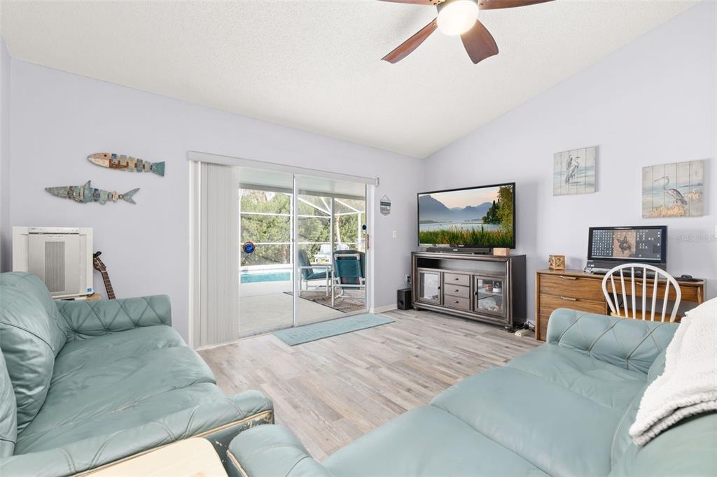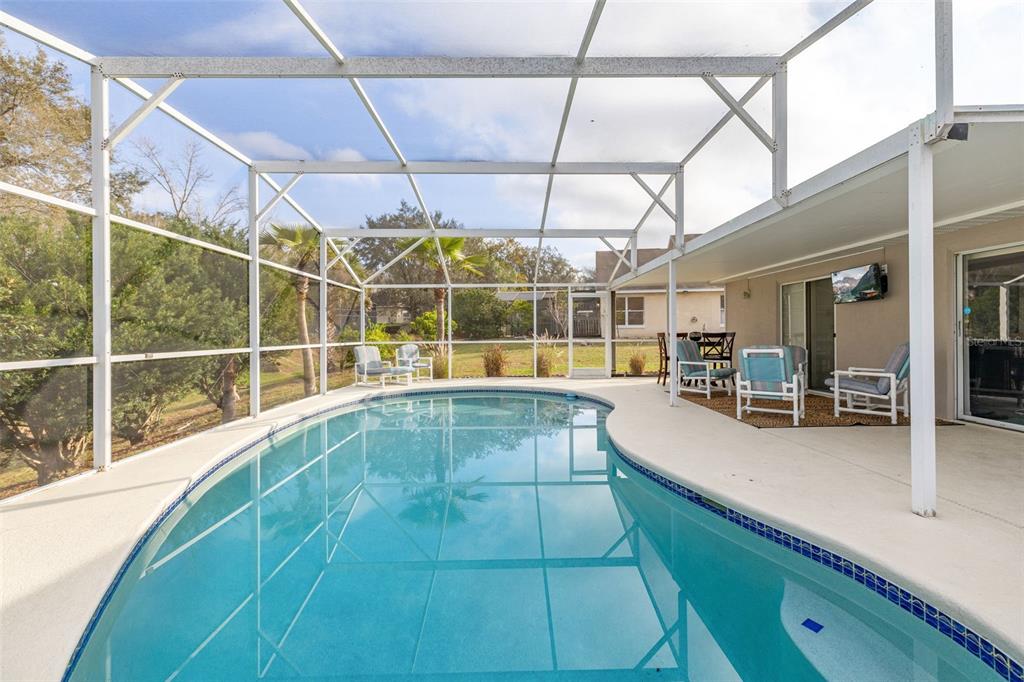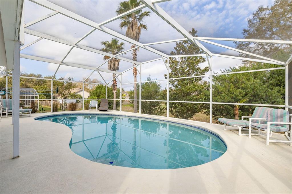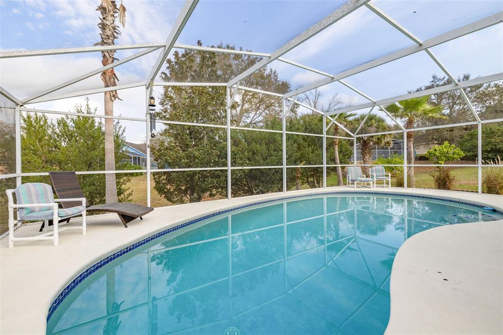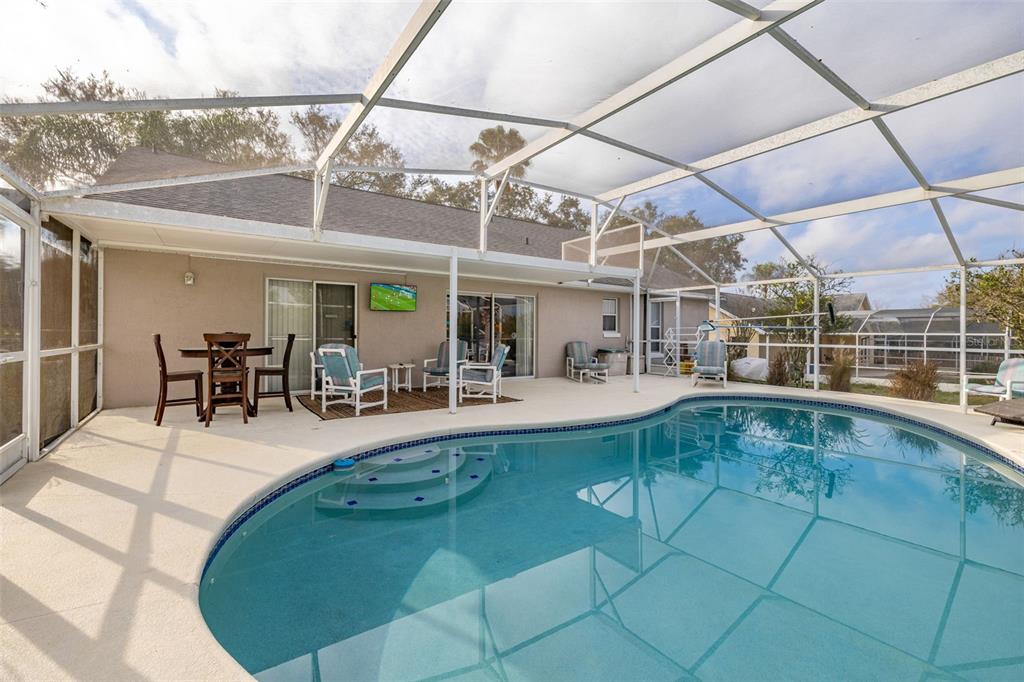 Nestled in the highly desirable westridge community of davenport, florida, this beautifully maintained 3-bedroom, 2-bathroom pool home offers a thoughtful blend of style, comfort, and functionality. the open floor plan is highlighted by vaulted ceilings, luxury vinyl plank flooring throughout the common living areas, and recessed lighting that creates a bright, airy ambiance. a bonus flex room provides endless possibilities, whether used as an office, guest room, craft room, or play area. recent updates include a new ac unit installed in 2023, a new roof in 2019 and water heater in 2020, and an insulated garage door for enhanced energy efficiency. the addition of attic insulation foil further helps reduce energy costs, and the bedrooms feature thicker carpet padding for added comfort. the secondary bathroom has been refreshed with a new vanity and updated fixtures for a modern touch. step outside and enjoy a serene outdoor oasis with a covered, screened-in pool deck and porch, perfect for relaxation or entertaining. the 2020 rescreened lanai overlooks a peaceful, mostly dry retention area, providing both privacy and scenic views. thoughtful details such as updated ceiling fans throughout enhance the home’s comfort and convenience. many homeowners reside here fulltime, but the community also allows long term or short term rentals. move-in ready and packed with modern amenities, this home is waiting to welcome its next owners to the vibrant and convenient lifestyle westridge has to offer!336 CALIFORNIA, DAVENPORT, FL 33897