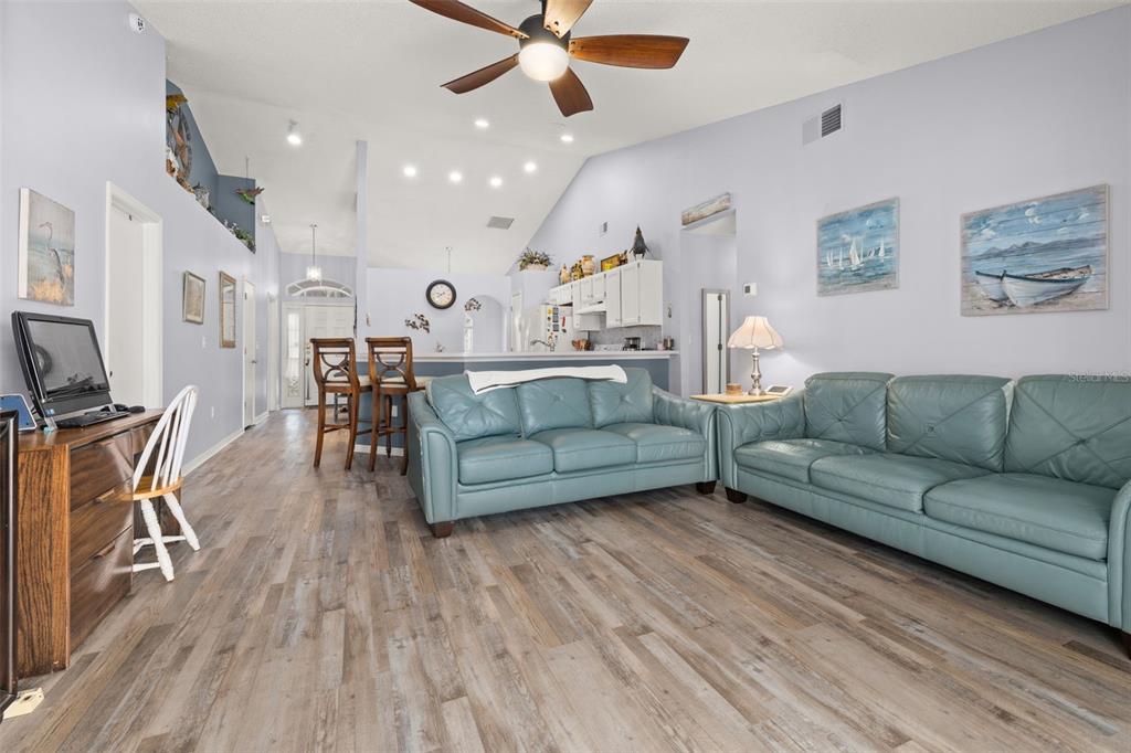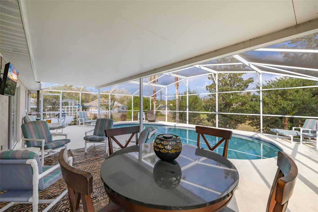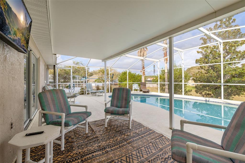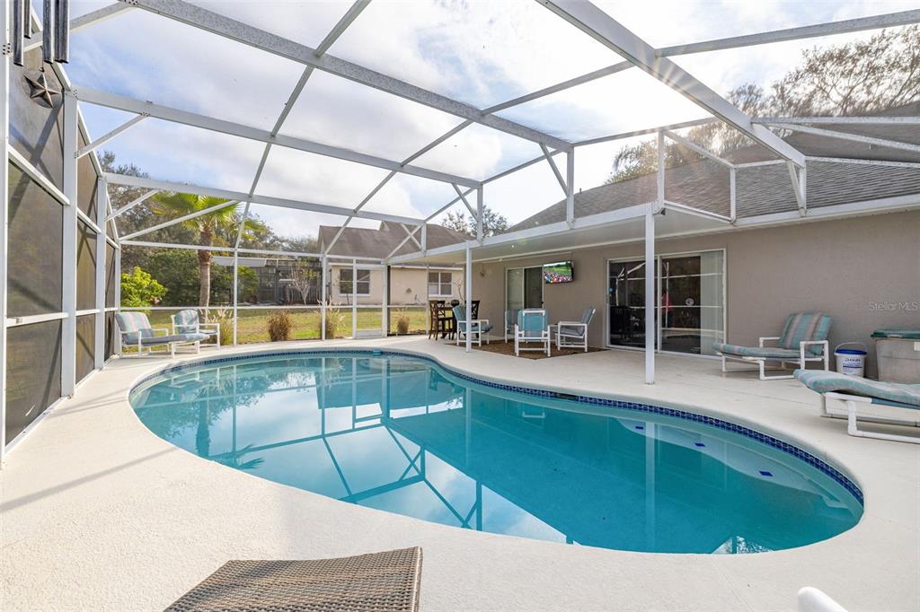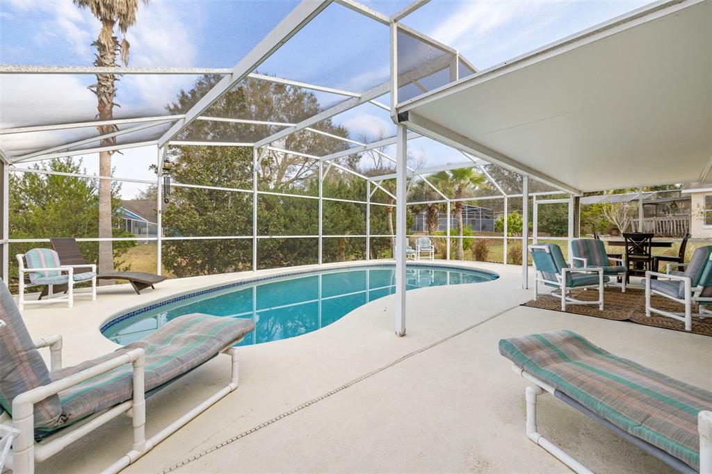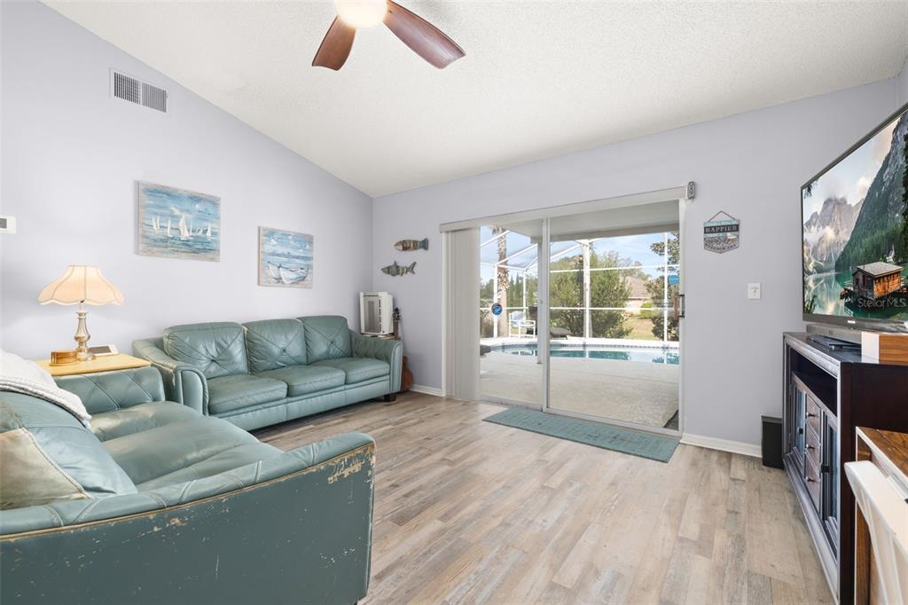 Nestled in the highly desirable westridge community of davenport, florida, this beautifully maintained 3-bedroom, 2-bathroom pool home offers a thoughtful blend of style, comfort, and functionality. the open floor plan is highlighted by vaulted ceilings, luxury vinyl plank flooring throughout the common living areas, and recessed lighting that creates a bright, airy ambiance. a bonus flex room provides endless possibilities, whether used as an office, guest room, craft room, or play area. recent updates include a new ac unit installed in 2023, a new roof in 2019 and water heater in 2020, and an insulated garage door for enhanced energy efficiency. the addition of attic insulation foil further helps reduce energy costs, and the bedrooms feature thicker carpet padding for added comfort. the secondary bathroom has been refreshed with a new vanity and updated fixtures for a modern touch. step outside and enjoy a serene outdoor oasis with a covered, screened-in pool deck and porch, perfect for relaxation or entertaining. the 2020 rescreened lanai overlooks a peaceful, mostly dry retention area, providing both privacy and scenic views. thoughtful details such as updated ceiling fans throughout enhance the home’s comfort and convenience. many homeowners reside here fulltime, but the community also allows long term or short term rentals. move-in ready and packed with modern amenities, this home is waiting to welcome its next owners to the vibrant and convenient lifestyle westridge has to offer!336 CALIFORNIA, DAVENPORT, FL 33897