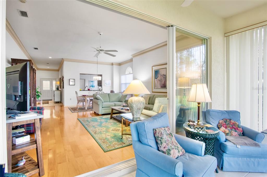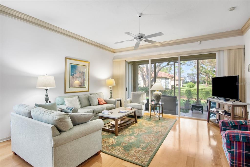 This beautiful villa in much sought after chelmsford close sits in very a private location and can be yours-turn-key furnished! when you enter chelmsford close you immediately realize this is not the average community. chelmsford close is one of the most recently constructed communities in the meadows (no popcorn ceilings, no cast iron plumbing). the buildings and grounds are impeccably maintained. and for your peace of mind the villa is of concrete block construction capped with concrete barrel tile roofs and is in "flood zone x". enter your private courtyard through the iron gate. step into the villa and your eyes are drawn to the 10 foot ceiling capped with massive crown molding. your den or office is to the left and open to the kitchen through a pair of pocket doors. the kitchen features recessed lighting, solid wood cabinets with soft close hinges and beautifully polished stone countertops. step into the great room and you're on a rich solid hardwood maple floor- the kind you rarely see anymore. for relaxation, enjoy a refreshment on your very private screened lanai. a lush garden view and the 6th green of the private meadows course is in the background. the meadows is a quiet enclave in rapidly growing sarasota county- 15 minutes from downtown. you'll have access to miles of walking/biking trails, and all that the meadows country club offers. club membership is optional, and offered at different levels, but many amenities are offered to you at no cost for being a meadows resident. some of the country's most beautiful beaches are nearby, as well as world-class arts and culture, restaurants, entertainment and shopping. you are literally a 5 minute walk to benderson park and just 2 miles from the mall at university town center. you have just discovered the sarasota lifestyle!Villa 2 bedrooms - CHELMSFORD CLOSE for Sale