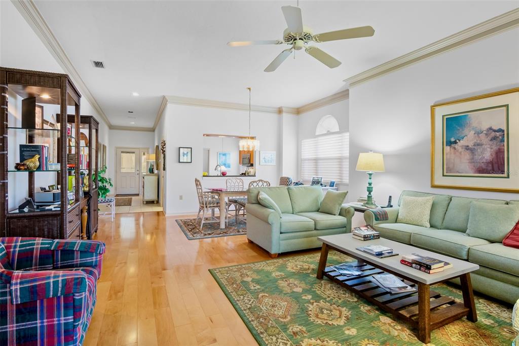 Ceiling Fan(s) High Ceilings Living Room/Dining Room Combo Window Treatments Solid Surface Counters Solid Wood CabinetsCrown MoldingExterior Features:
