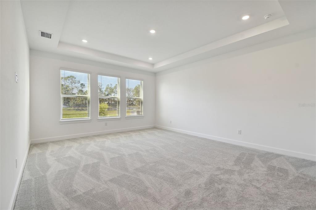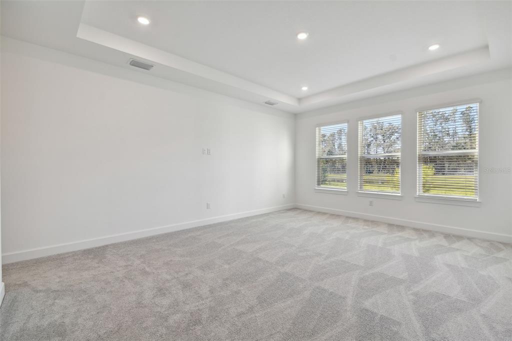 The acadia offers a perfect mix of style and practicality to suit every household. step into the grand foyer, with a formal dining room on one side and a private study on the other. a spacious laundry room is tucked conveniently behind the main staircase. the open-concept design shines in the gathering room, casual dining area, and gourmet kitchen, all overlooking a roomy lanai ideal for entertaining. the first-floor primary suite is your private retreat, complete with dual walk-in closets and an attached bathroom featuring a dual-sink vanity, oversized shower, and sleek finishes. upstairs, you'll find three secondary bedrooms, a spacious game room, and a cozy media room perfect for relaxing evenings or lively gatherings. structural options added include: media room added upstairs, and shower added to bathroom 2 in place of a bathtub. mls#tb8337261. the resort-style community of rivers edge is conveniently located near i75 and the shoppes at wiregrass. enjoy the amenities at the clubhouse, playground, tennis courts, soccer field, dog park, walking trails, and resort-style pool.33764 OCEAN SPRAY, WESLEY CHAPEL, FL 33543