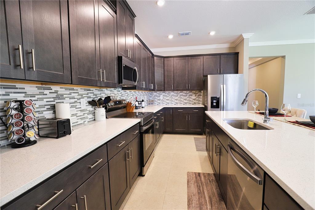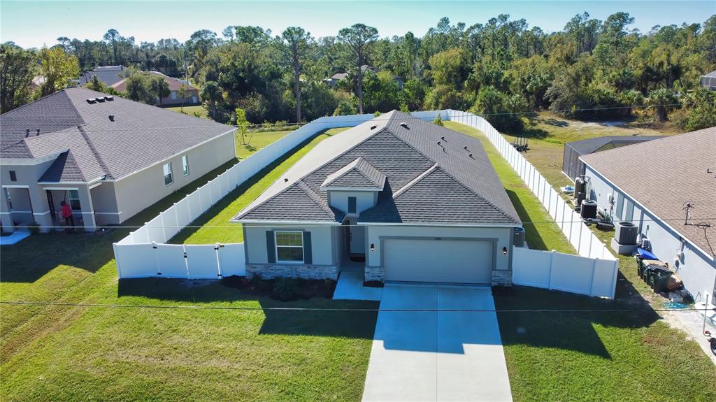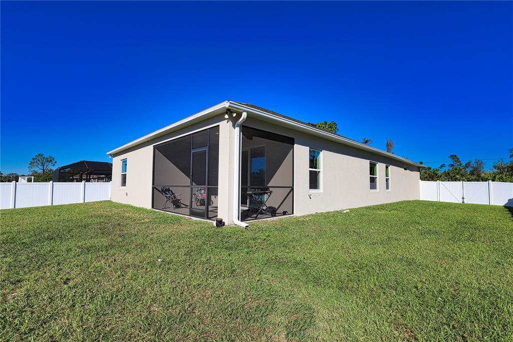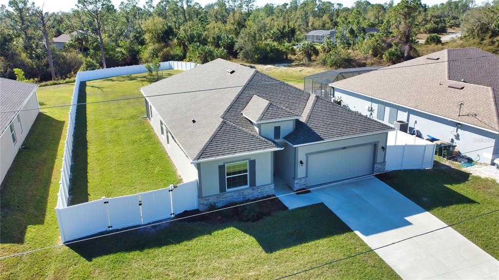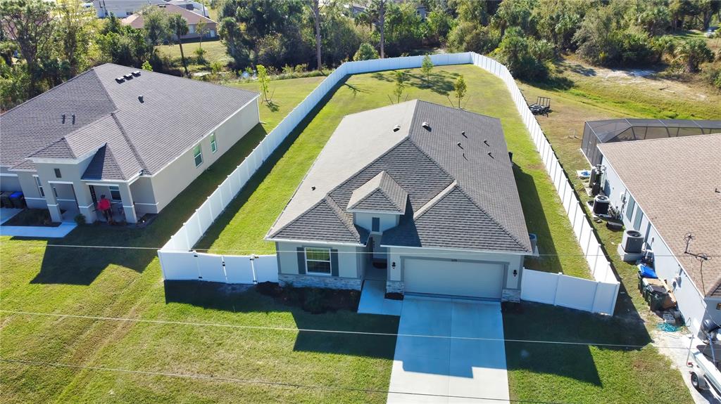 Better than new! no hoa! this 2024 built home is move-in ready and offers direct access to the new castle waterway canal. nature lovers and bird watchers will enjoy this special gem. as you enter, the extra wide entry welcomes you with a feeling of spaciousness and luxury. nestled in the charming community of north port, this inviting home combines modern luxury with comfort and the convenience of being located just moments away from every store, shop or services one could ask for. welcome to this quality-built home. you will see signs of quality everywhere; such as neutral ceramic tile flooring throughout, a poured epoxy floor in the garage, crown moldings and quality finish carpentry throughout the entire home, real wood soft close cabinets in kitchen and baths, high 9'4" tray ceilings, recessed lighting, a triple slider to the lanai which opens up the main living area to the huge fully fenced in back yard and all the beautiful weather that we enjoy in florida. perfect for relaxing with your morning coffee or sipping a glass of something nice as you take in the florida sunset or stargaze at the night sky. this home has it all! you'll love cooking in the chef's kitchen which features wood cabinetry, natural stone quartz countertops, all stainless-steel appliances including washer and dryer are less than one year old. the open floor plan is perfect for easy entertaining, or for a busy family. the large island is a natural gathering spot with room to seat four comfortably. perfect for helping littles with homework while you make dinner, or for effortlessly entertaining guests without missing out on any of the fun! the four-bedroom, split floorplan boasts a luxurious master suite complete with large walk-in closet, and the spacious en suite bath offers a lovely quartz vanity top, double sinks with a vanity area, separate step-in shower, and a very inviting extra wide soaking tub, plus a double wide linen closet. the three guest rooms are equally comfortable with plenty of large windows to let the florida sunshine stream in. for your peace of mind and security, take note that this property is in "evacuation zone d" making it more safe than average during hurricane season, storm-rated windows and doors, steel hurricane shutters and the back yard is fully enclosed with a privacy fence. oversized lot is 17,500 sf and backs up to the new castle waterway canal and has a rear gate allowing direct access to the waterway! this area of your property can be mowed and outfitted with a bench for bird watching or fishing. the canal is paddle friendly and full of wonderful wildlife! there is also a double wide gate at the front left side of the property allowing plenty of room to add a driveway, or use for boat or rv storage, there is even plenty of space to add a detached garage on this property to store your boat or rv. or add a pool and patio, playground, or the garden of your dreams with unobstructed sunlight... the possibilities are endless. north port is booming, with growth due to the excellent schools and many amenities such as; the north port aquatic center that has a water park and soccer field. sunseeker resort with elegant boutique shopping, cafes and restaurants. wellen park baseball stadium and rooftop tiki bar - the winter training home of the atlanta braves! warm mineral springs offers one of many holistic health resources in the area, and the hip and cool "coco plum shopping center"! welcome home to beautiful north port, florida!3393 KACHER, NORTH PORT, FL 34288