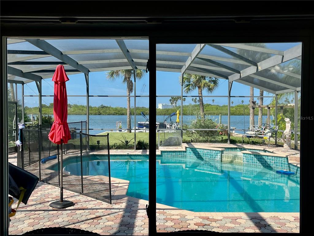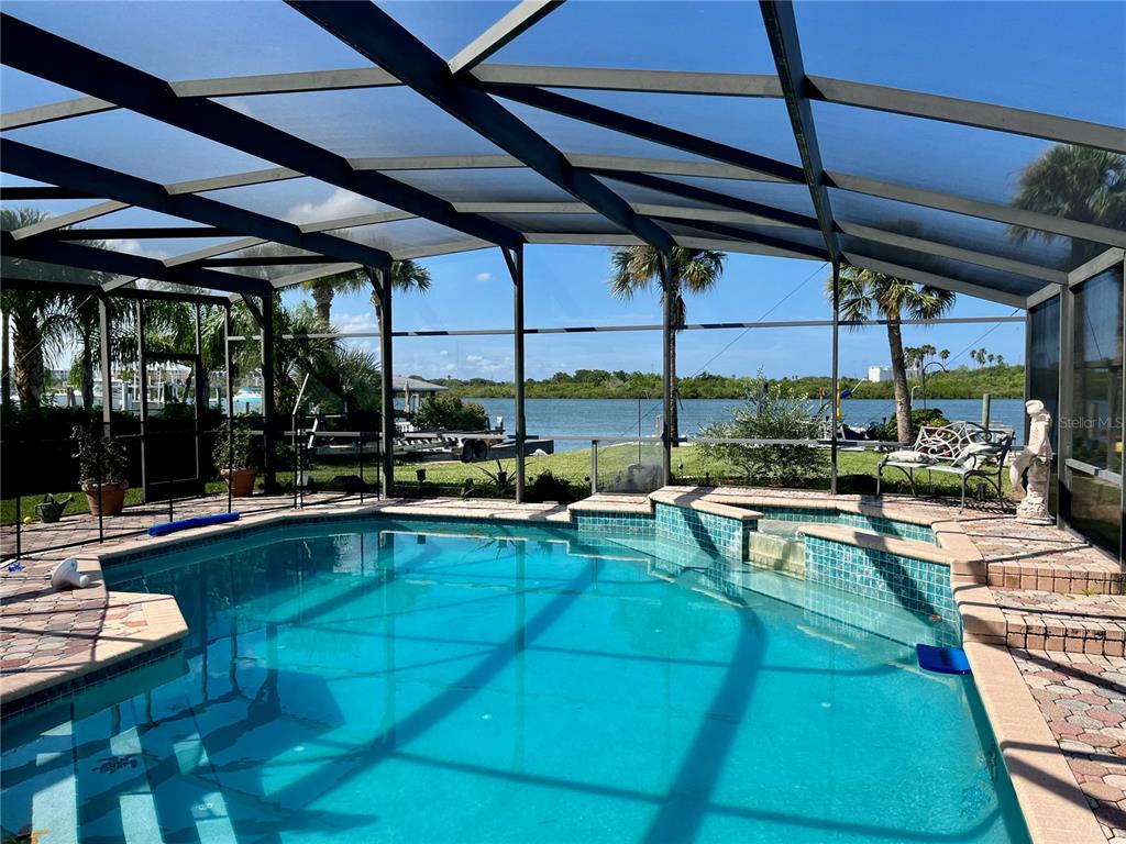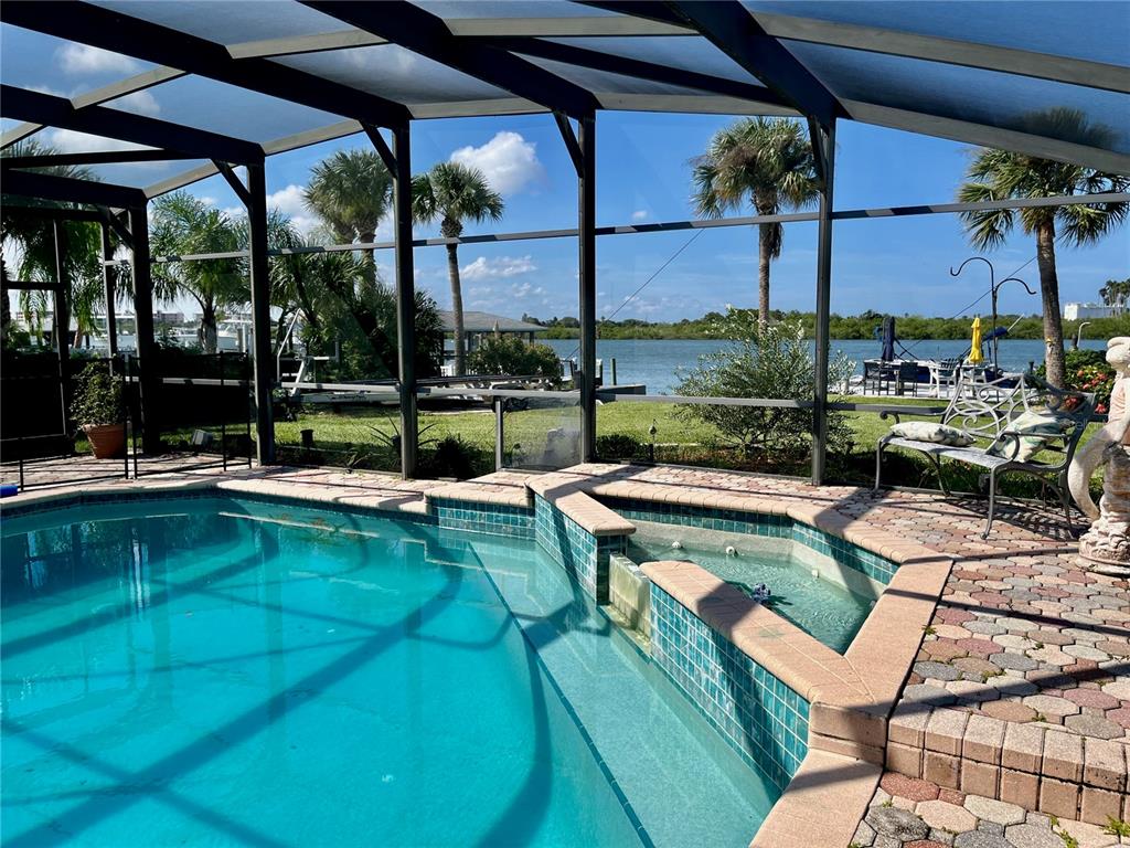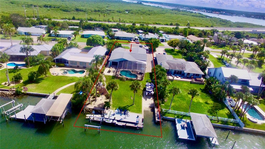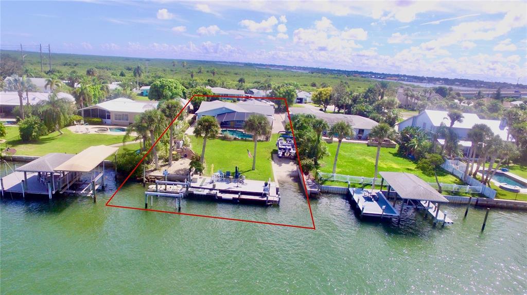 Delightful intracoastal deep water home perfect for all of your family. located on the sought after bouchelle island residential single family home street. this picture perfect home with unobstructed views of the intracoastal waterway offers you an exquisite home with updated kitchen with designer quartz counters, stainless steel appliances, tray ceiling, large eat in dining room looking out to the covered outside seating area with an outside kitchen, pool and hot tub plus a very rare to find boat launch 10 feet wide, boat dock, boat lift 13,000 lb and a jet ski ez dock. truly a boaters paradise. this large home has so much and more with beautiful hardwood cherry flooring, large living room with views of the intracoastal waterway and your very own pool. the primary bedroom with en-suite bath has an adjacent room that can be used as a dressing room or bedroom with closets, guest bedroom with en-suite bathroom, bunk bed room with closet and laundry facilities, large foyer with views of the intracoastal, wood book shelves and murphy bed, a flex room or office or boat storage room is located off of the main living room with views of the intracoastal with a garage door and large full motorized screen to enjoy the river breezes. this large lot and home has an oversized 2 car garage with plenty of parking for a motorhome and guests. make this your forever home or beach home with new roof 2022, 2 a/c units new 2022 and 2023, updated reinforced seawall, propane heated spa (spa heater 2 years old), plus a tankless water heater and two mulberry bushes and olive tree in your garden. this home has everything you need plus walk or bike to the famous flagler avenue or canal street with shopping, restaurants and night life. this could be your very own oasis in paradise.34 RICHMOND, NEW SMYRNA BEACH, FL 32169