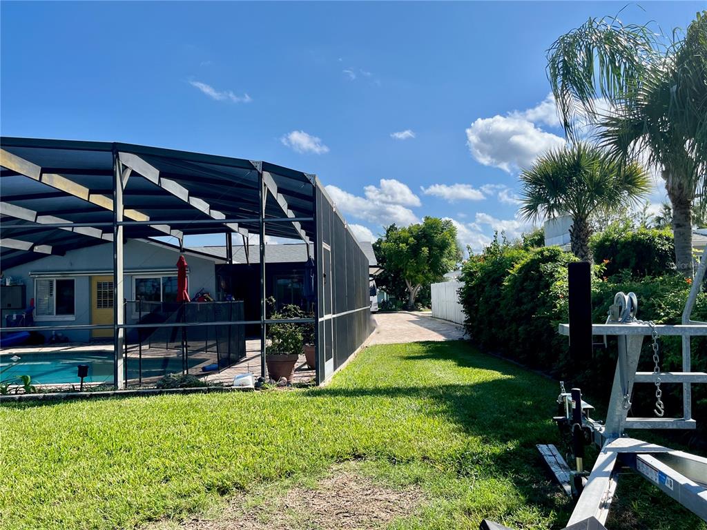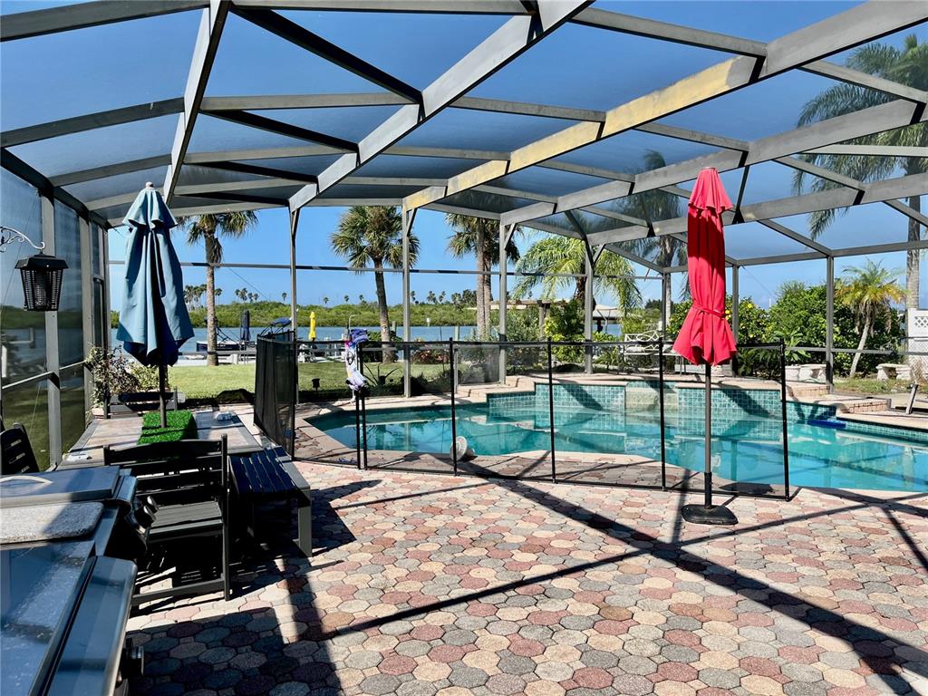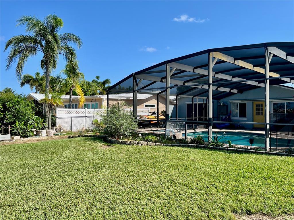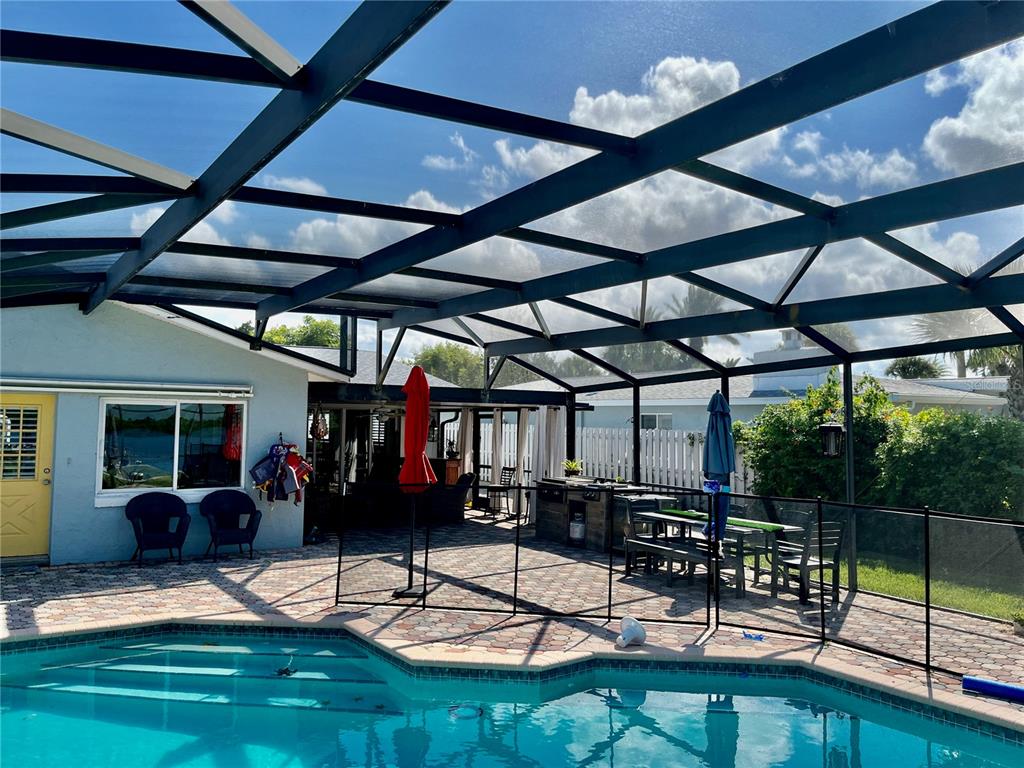 Delightful intracoastal deep water home perfect for all of your family. located on the sought after bouchelle island residential single family home street. this picture perfect home with unobstructed views of the intracoastal waterway offers you an exquisite home with updated kitchen with designer quartz counters, stainless steel appliances, tray ceiling, large eat in dining room looking out to the covered outside seating area with an outside kitchen, pool and hot tub plus a very rare to find boat launch 10 feet wide, boat dock, boat lift 13,000 lb and a jet ski ez dock. truly a boaters paradise. this large home has so much and more with beautiful hardwood cherry flooring, large living room with views of the intracoastal waterway and your very own pool. the primary bedroom with en-suite bath has an adjacent room that can be used as a dressing room or bedroom with closets, guest bedroom with en-suite bathroom, bunk bed room with closet and laundry facilities, large foyer with views of the intracoastal, wood book shelves and murphy bed, a flex room or office or boat storage room is located off of the main living room with views of the intracoastal with a garage door and large full motorized screen to enjoy the river breezes. this large lot and home has an oversized 2 car garage with plenty of parking for a motorhome and guests. make this your forever home or beach home with new roof 2022, 2 a/c units new 2022 and 2023, updated reinforced seawall, propane heated spa (spa heater 2 years old), plus a tankless water heater and two mulberry bushes and olive tree in your garden. this home has everything you need plus walk or bike to the famous flagler avenue or canal street with shopping, restaurants and night life. this could be your very own oasis in paradise.34 RICHMOND, NEW SMYRNA BEACH, FL 32169